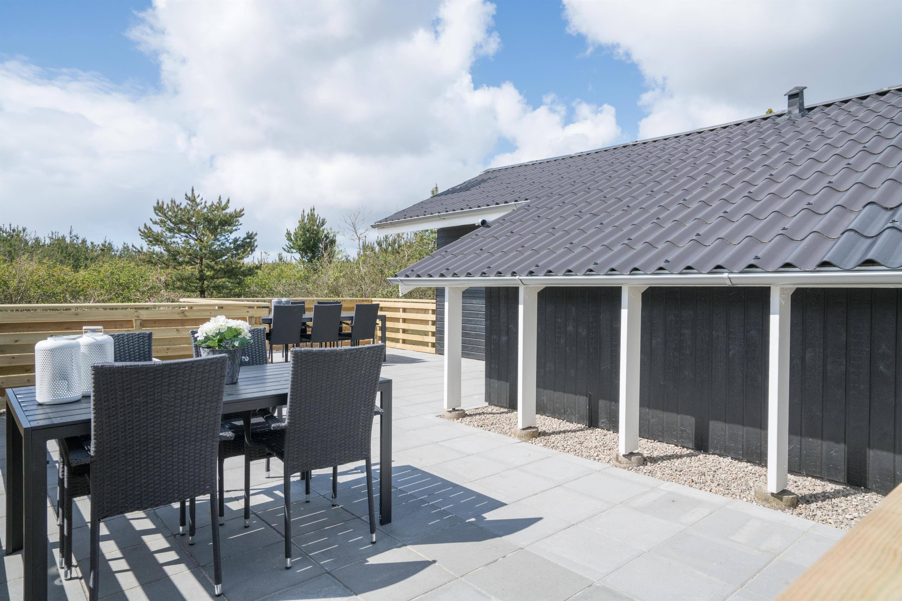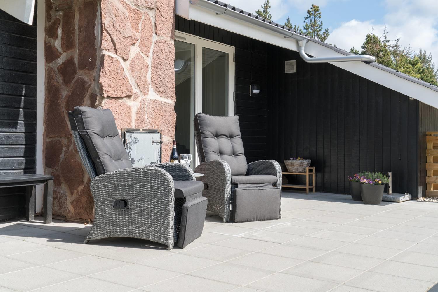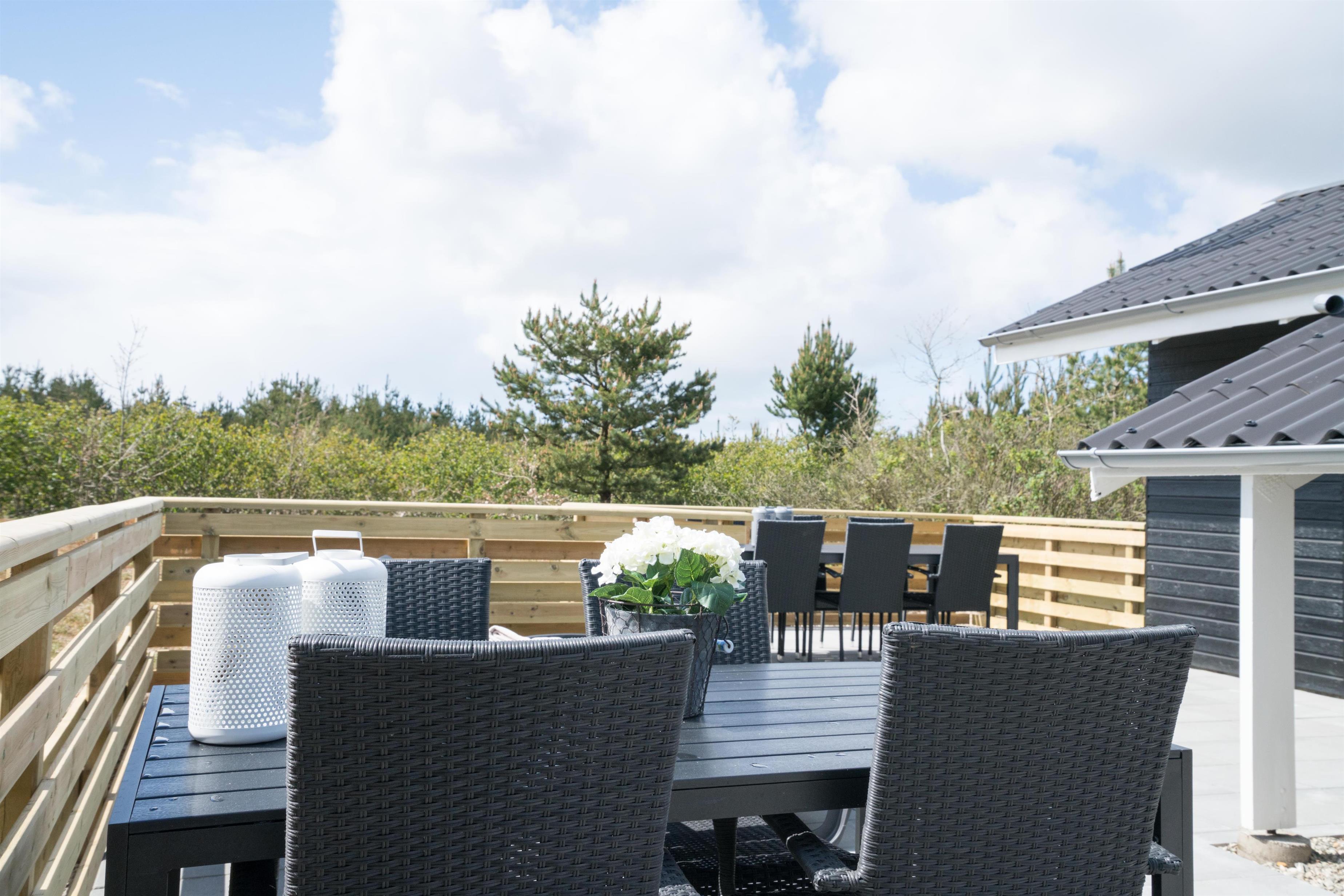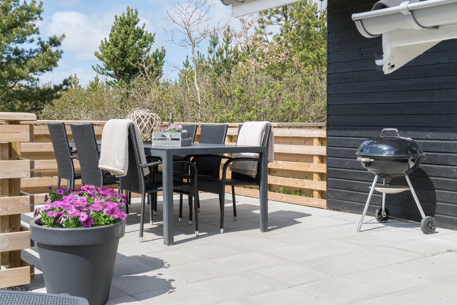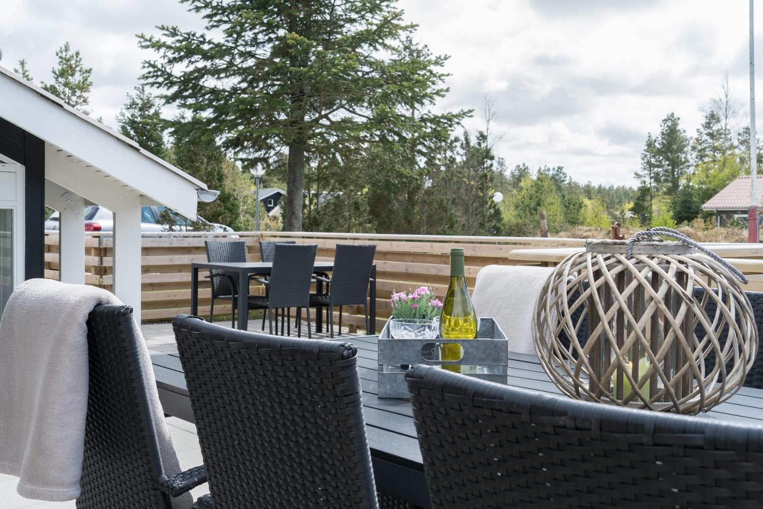 Den store, lukkede og møblerede terrasse giver altid mulighed for at nyde udelivet i læ og ro – uanset om solen skinner eller vinden blæser. Huset er et ikke-ryger-hus – og én hund er tilladt, så også familiens firbenede ven kan komme med på ferie.