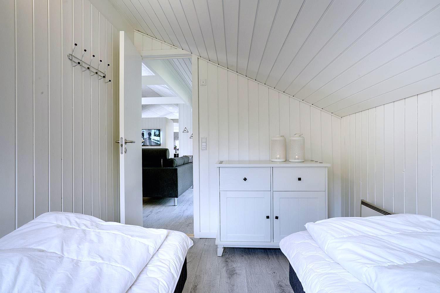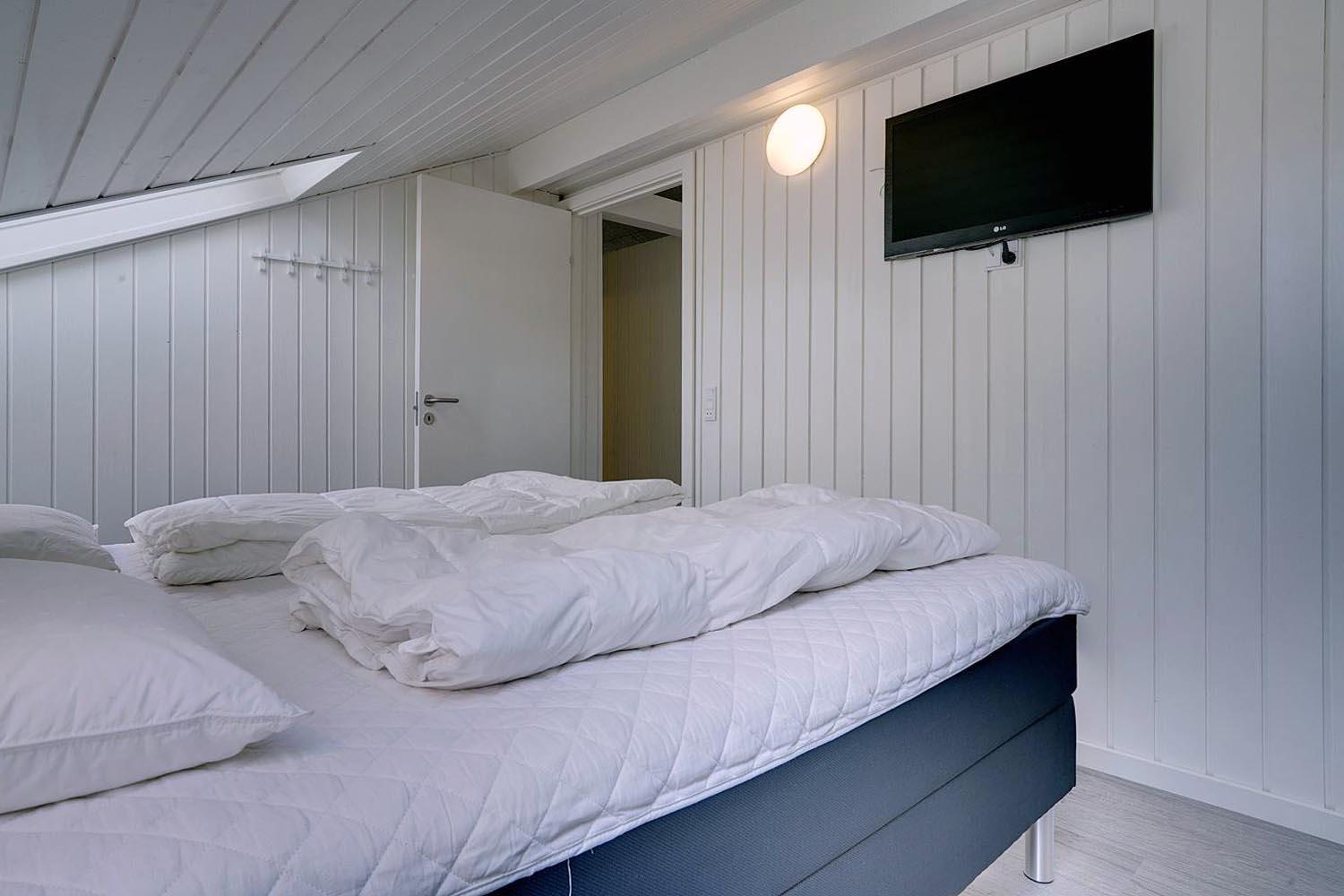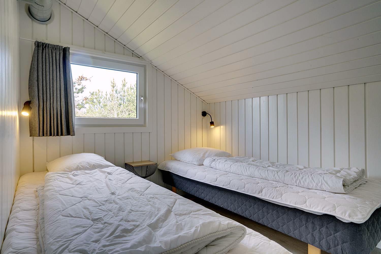 Huset har fire komfortable soveværelser – to med dobbeltsenge (det ene med eget TV), samt to værelser med enkeltsenge. De to moderne badeværelser byder på god komfort; det ene har desuden direkte adgang til husets egen sauna – ideel til afslapning efter en lang dag på stranden.