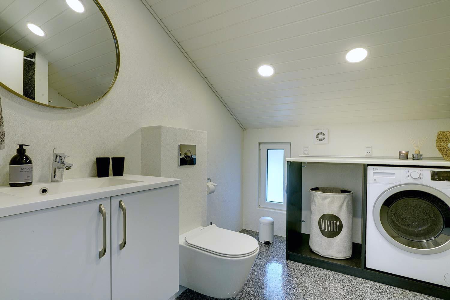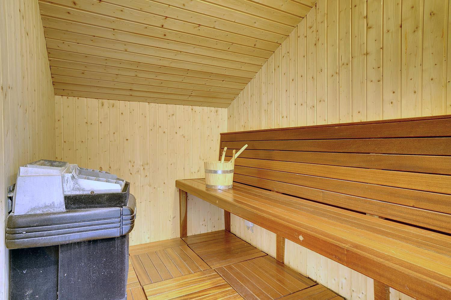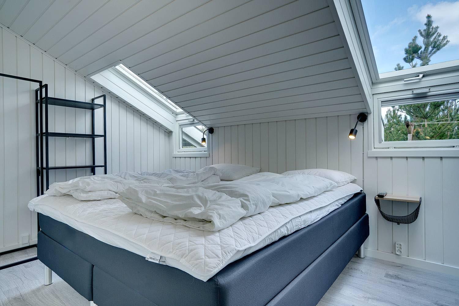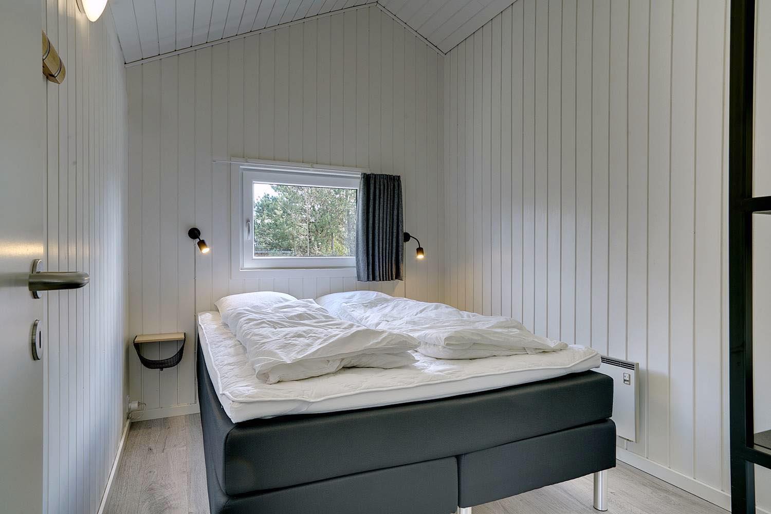Huset har fire komfortable soveværelser – to med dobbeltsenge (det ene med eget TV), samt to værelser med enkeltsenge. De to moderne badeværelser byder på god komfort; det ene har desuden direkte adgang til husets egen sauna – ideel til afslapning efter en lang dag på stranden.