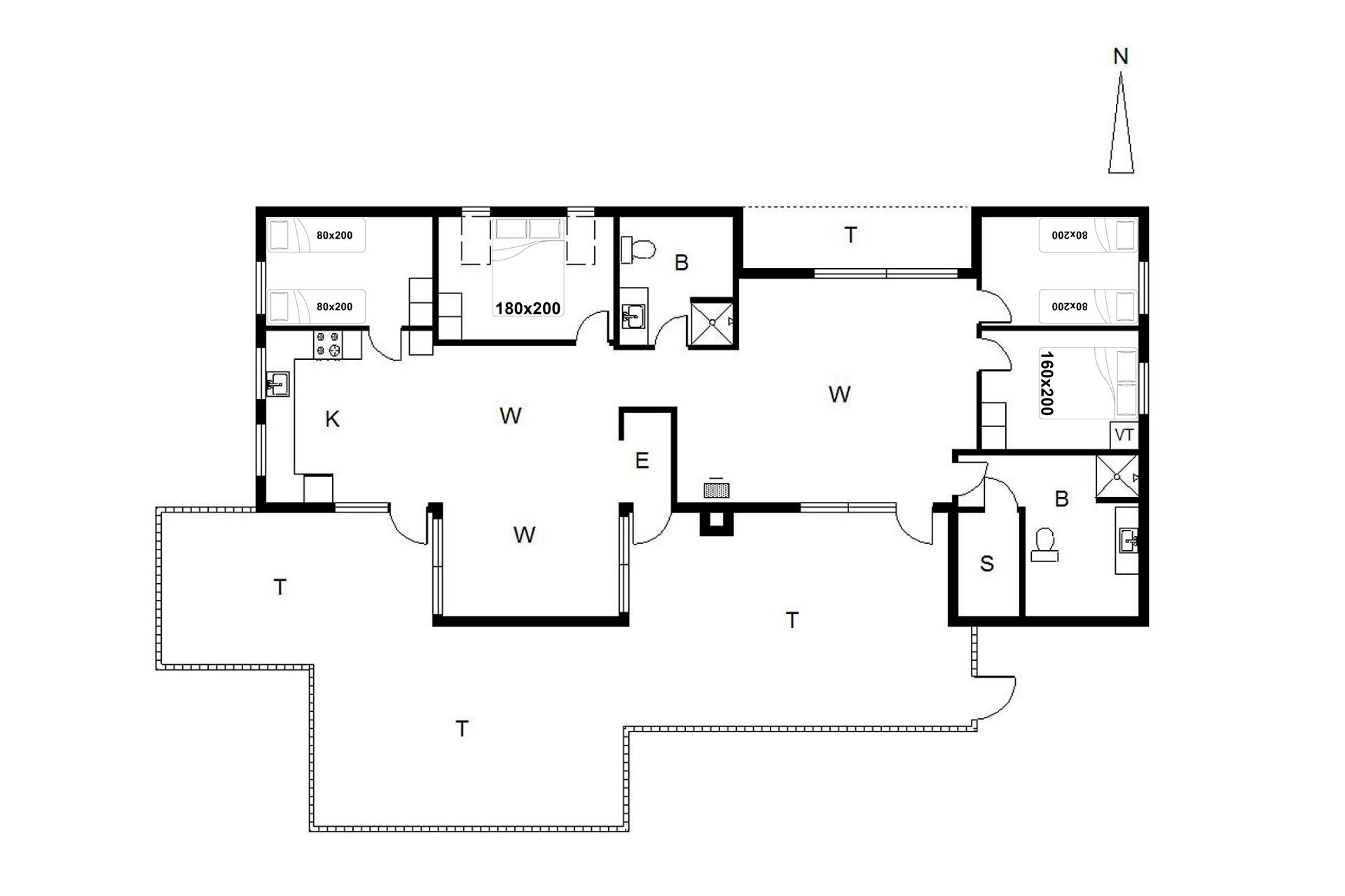 Sengestørrelse: 1 dobbeltseng 180 x 200 cm + 1 dobbeltseng 160 x 200 cm + 4 enkeltsenge 80 x 200 cm.