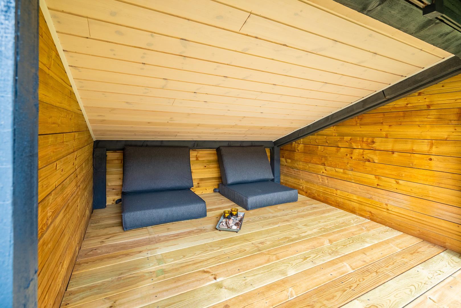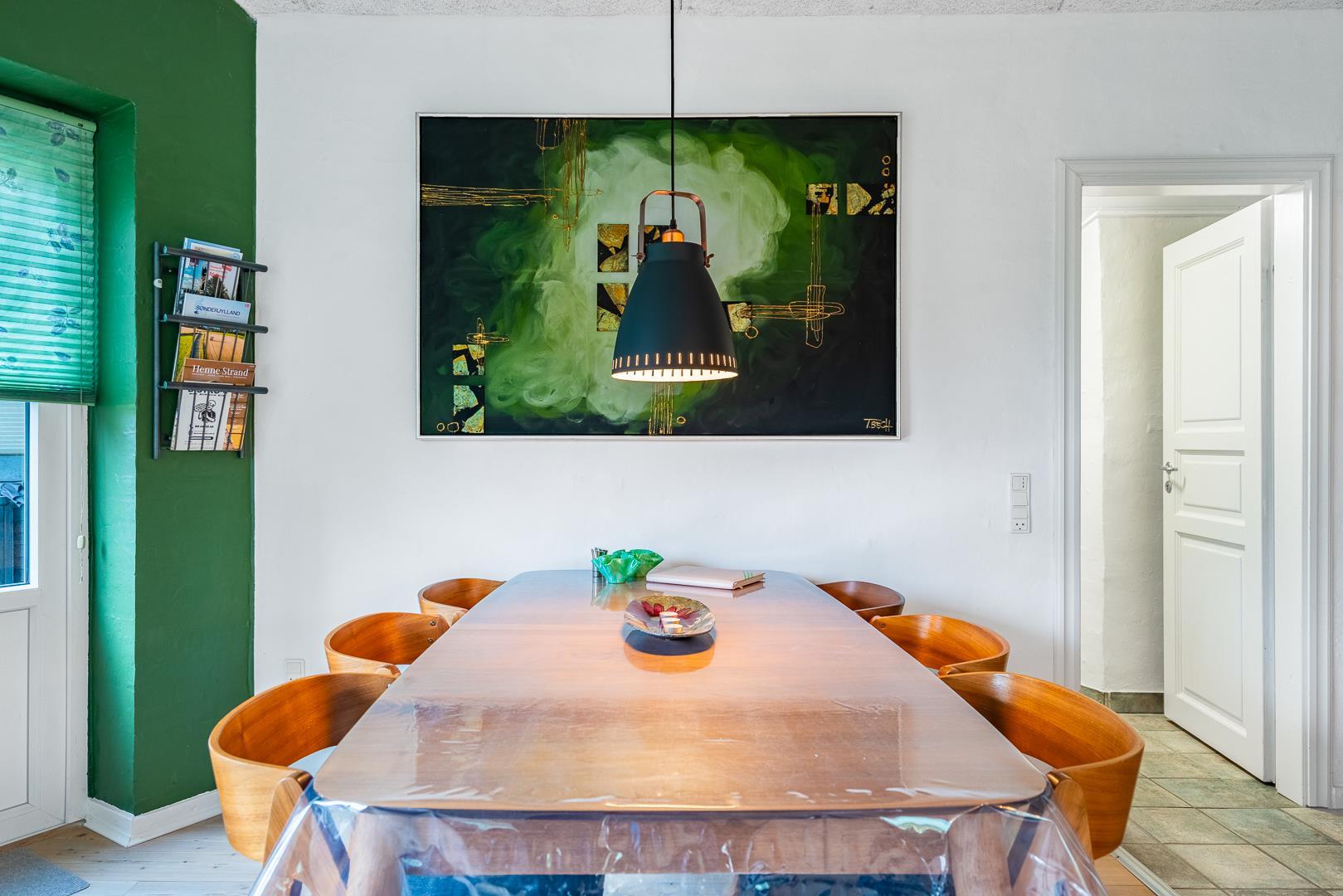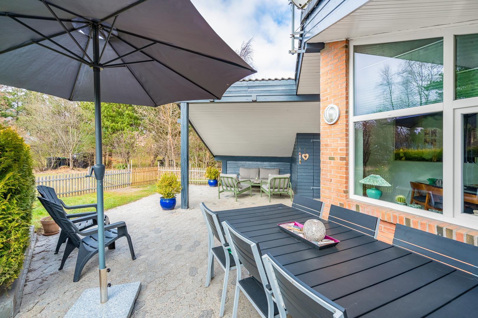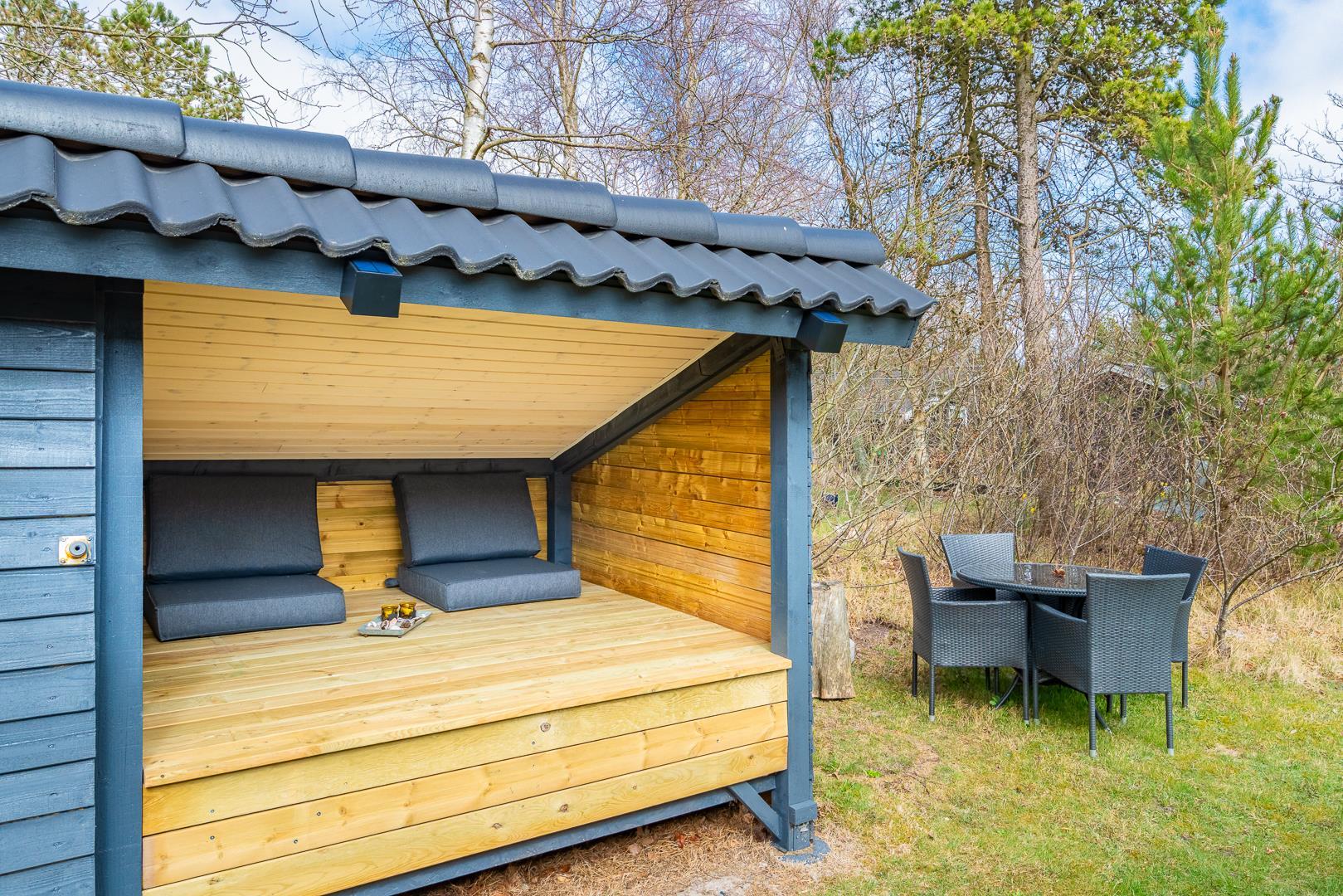 Husets hjerte er det åbne køkken/alrum, hvor brændeovnen spreder varme og skaber en hyggelig atmosfære. Her kan I nyde lange middage, spille spil eller udfordre hinanden i en omgang Wii. Fra stuen har I direkte adgang til en delvist overdækket terrasse, hvor I kan nyde morgenkaffen eller lune sommeraftener med udsigt til den store grund. Grunden giver rig mulighed for leg og boldspil, og for de eventyrlystne er her et shelter, hvor I kan prøve at sove under åben himmel.