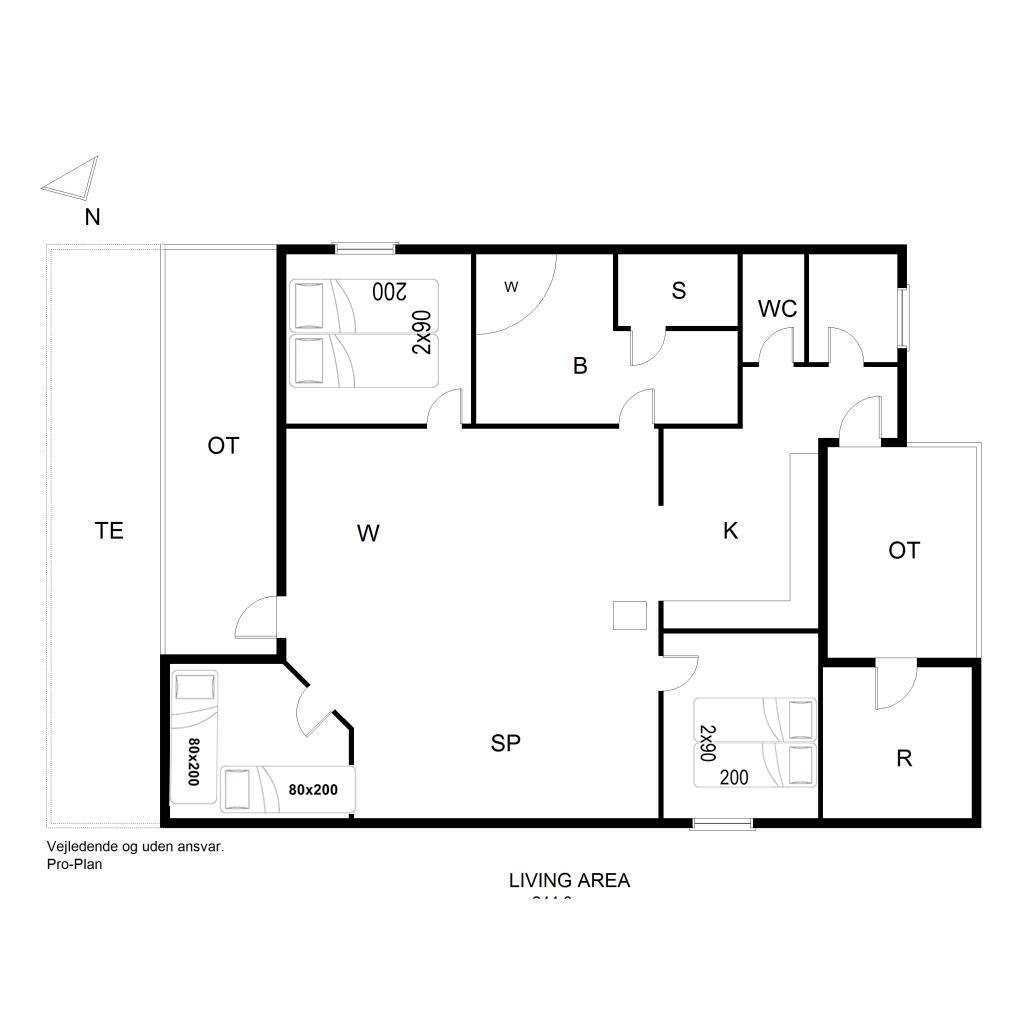 Sengestørrelse: 2 dobbeltsenge med 2 madrasser 90 x 200 cm + 2 enkeltsenge 80 x 200 cm