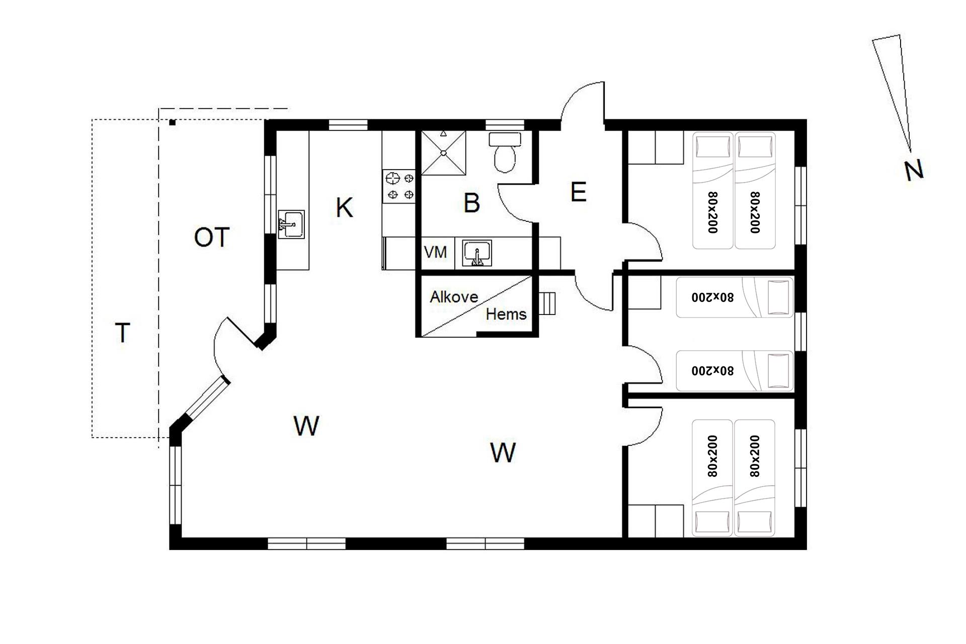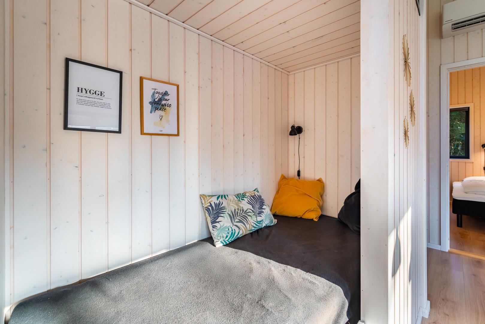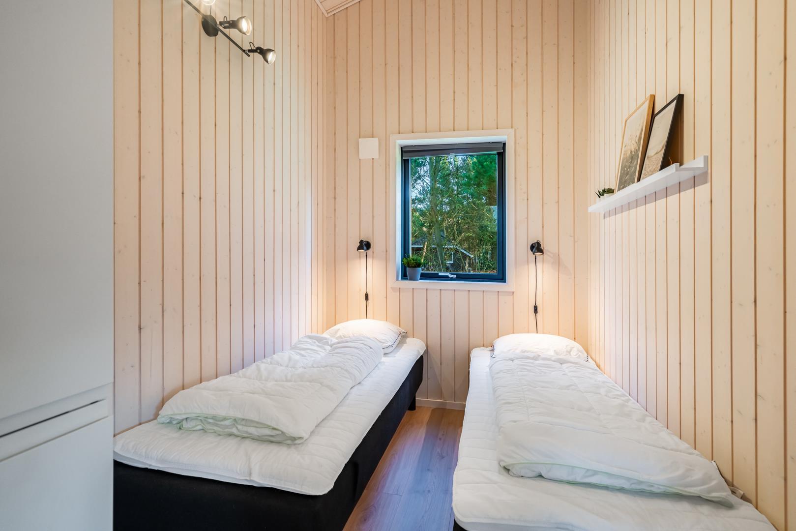 Sommerhuset har tre soveværelser samt en hyggelig alkove, som især børn holder af. Sovepladserne består af to dobbeltsenge (80 x 200 cm madrasser) og to enkeltsenge (80 x 200 cm).