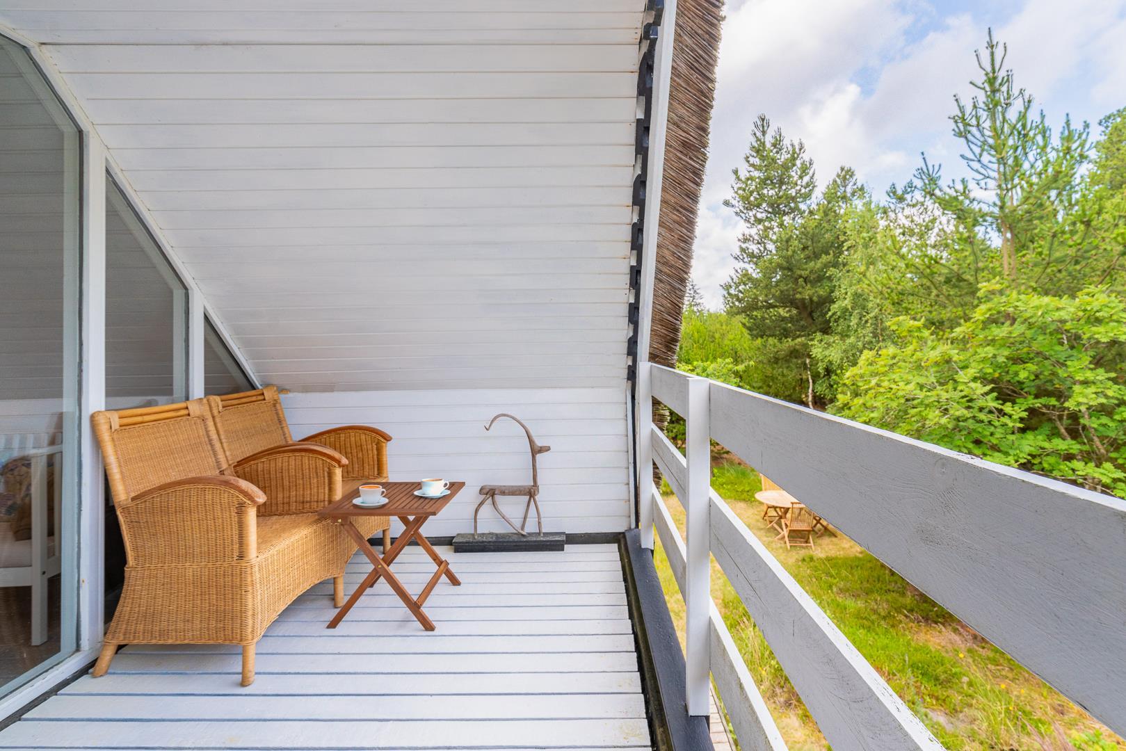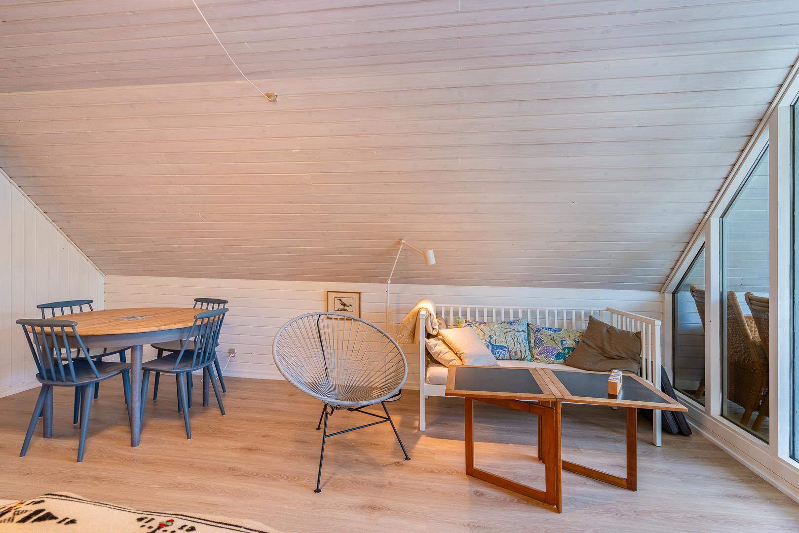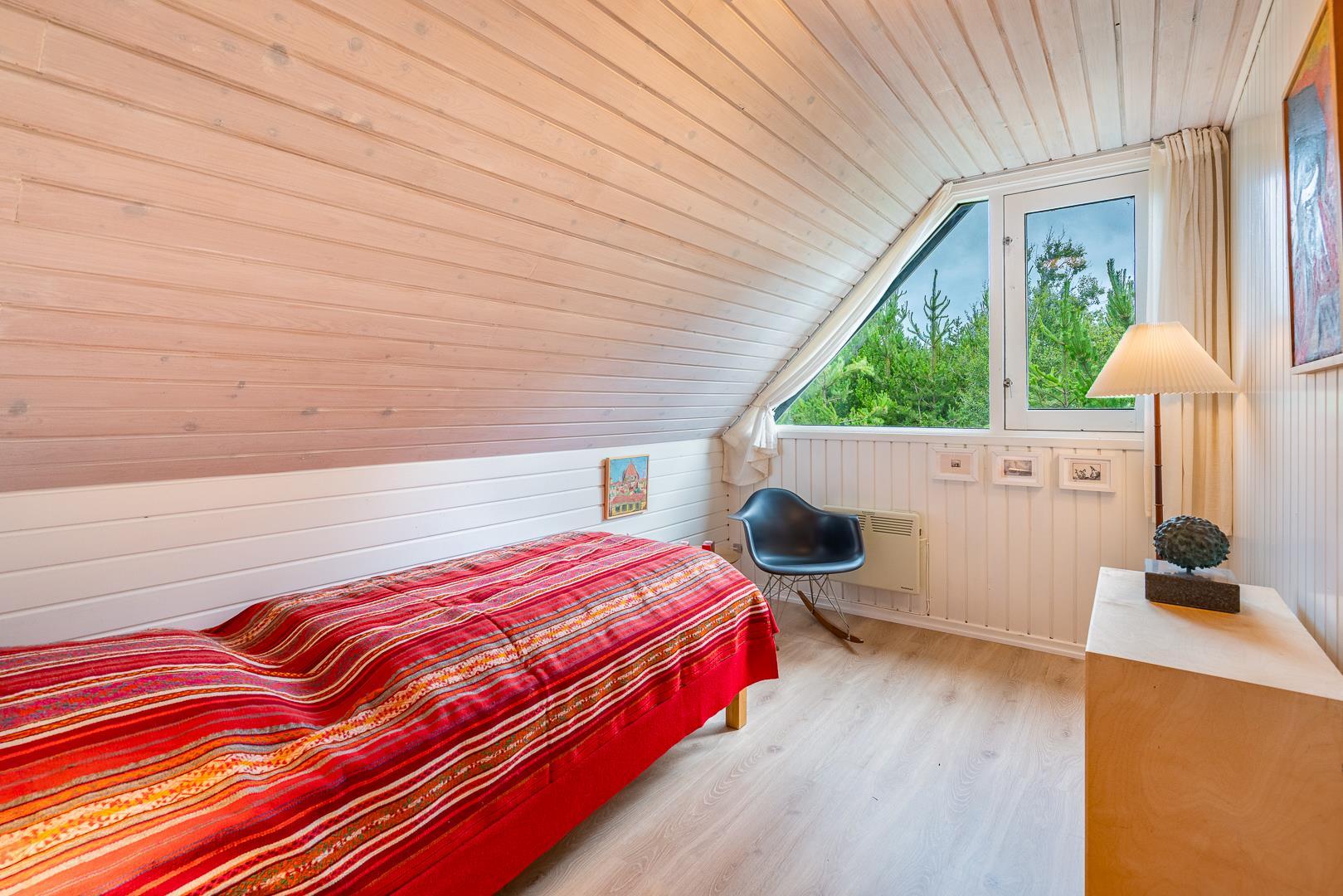 I finder 4 soverum, 2 med dobbeltsenge og 2 med enkeltsenge. På 1. salen, 3 soverum og en opholdsstue med tv. Nyd evt. en drink på balkonen fra det store master bedroom. og se solen gå ned i vest.