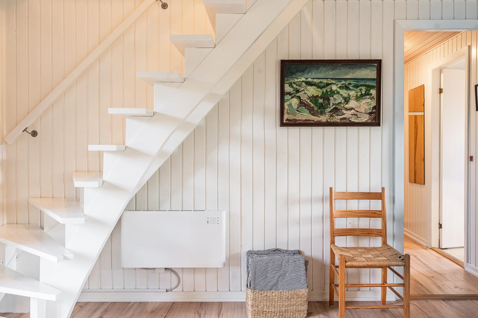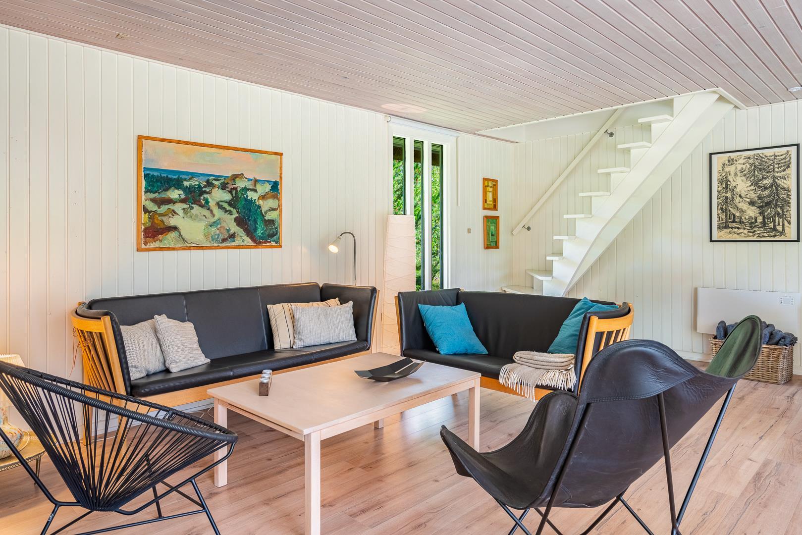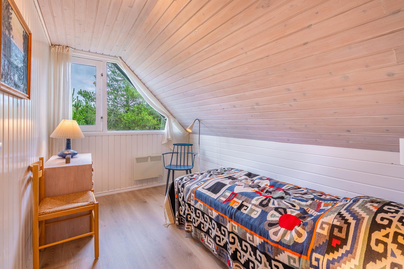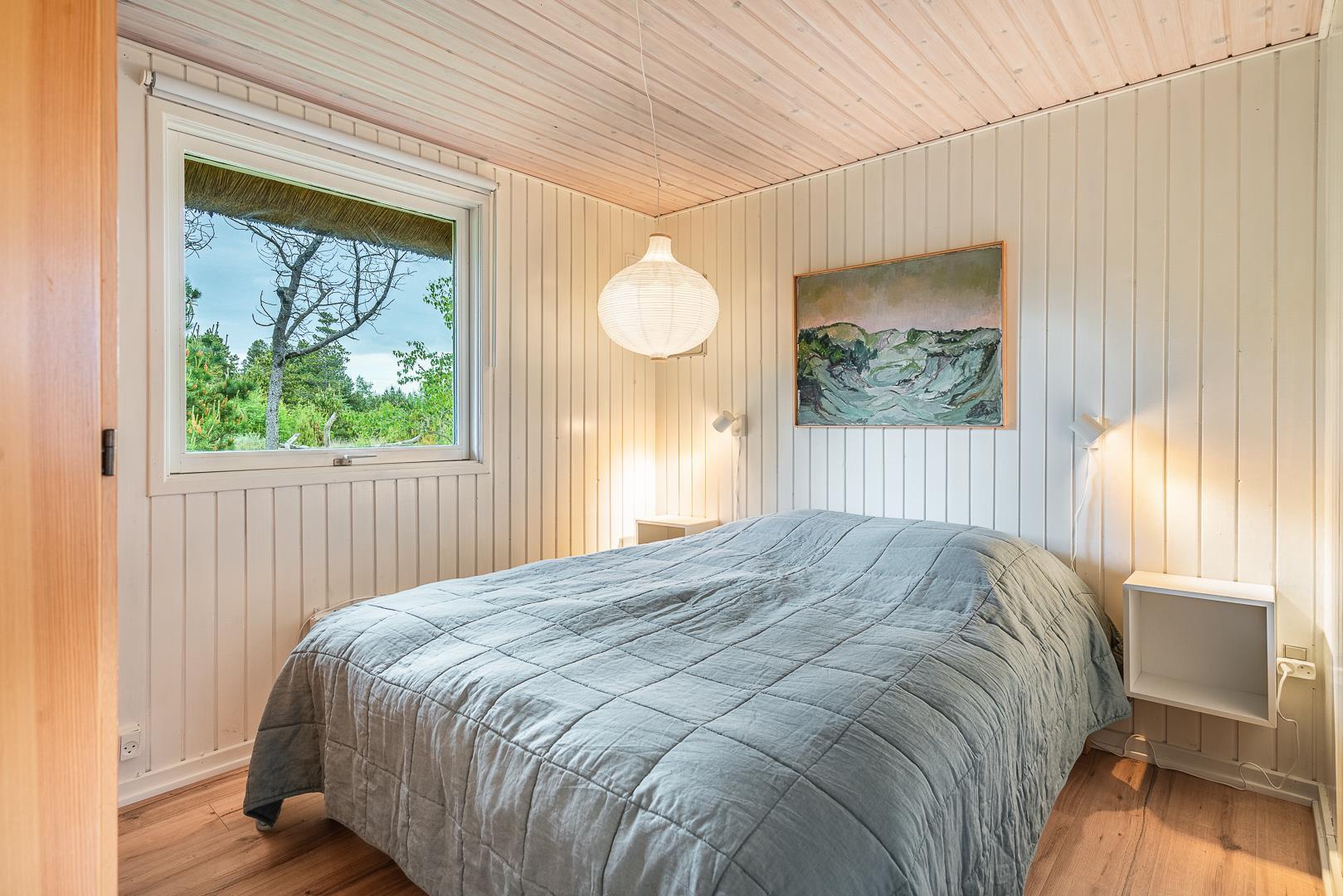 I finder 4 soverum, 2 med dobbeltsenge og 2 med enkeltsenge. På 1. salen, 3 soverum og en opholdsstue med tv. Nyd evt. en drink på balkonen fra det store master bedroom. og se solen gå ned i vest.