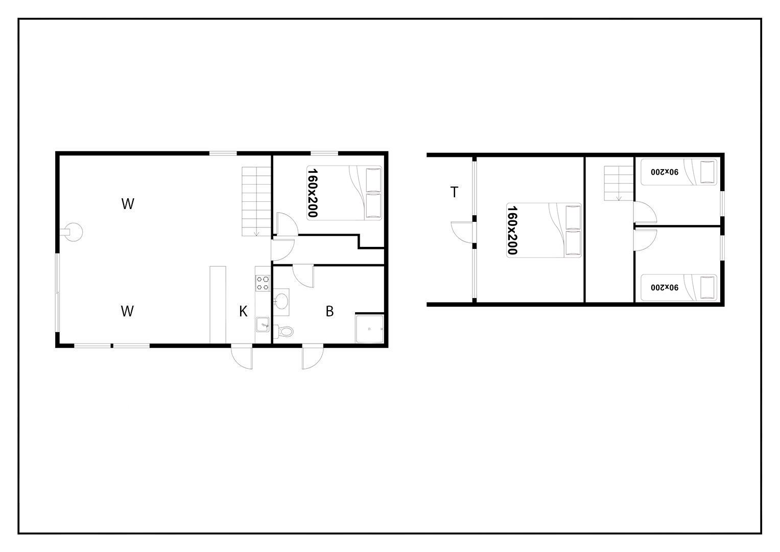 Sengestørrelse: 2 dobbeltsenge 160 x 200 cm + 2 enkeltsenge 90 x 200 cm