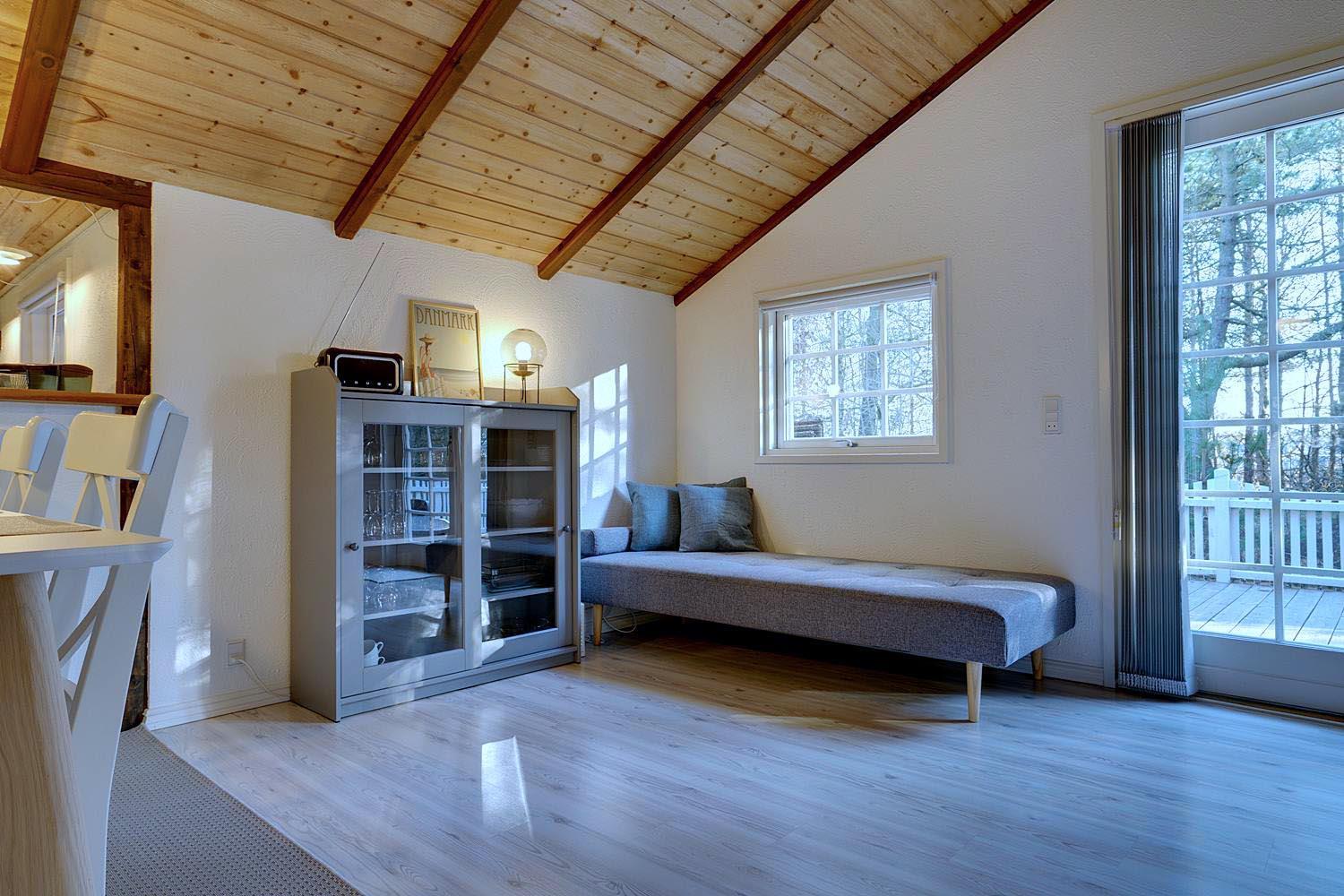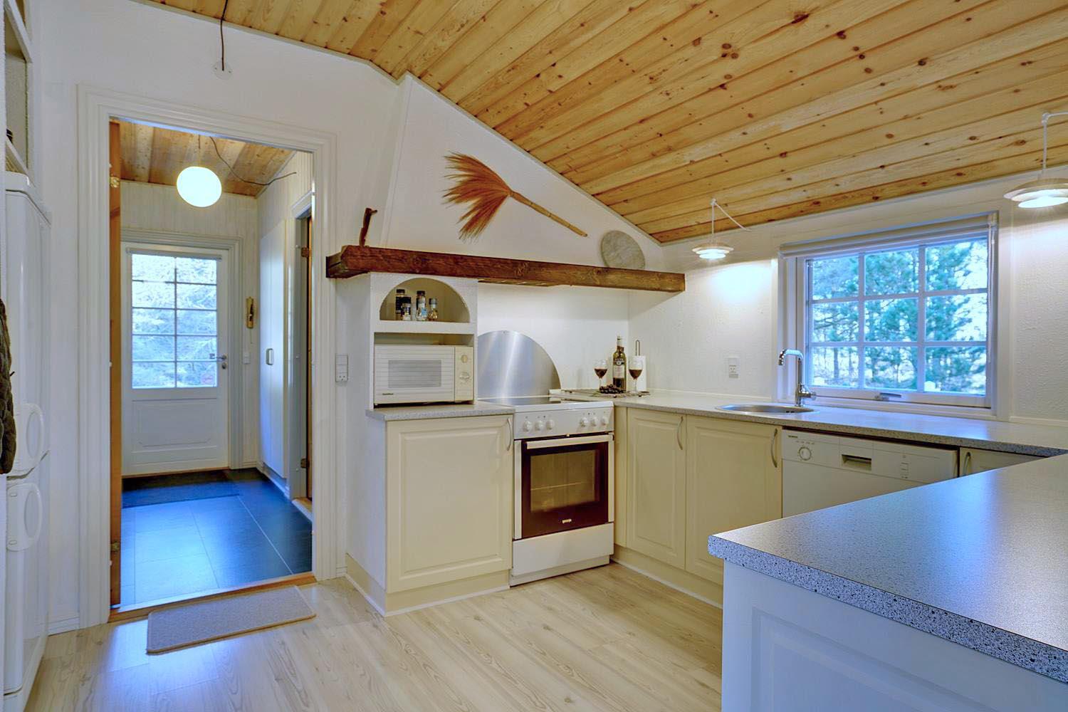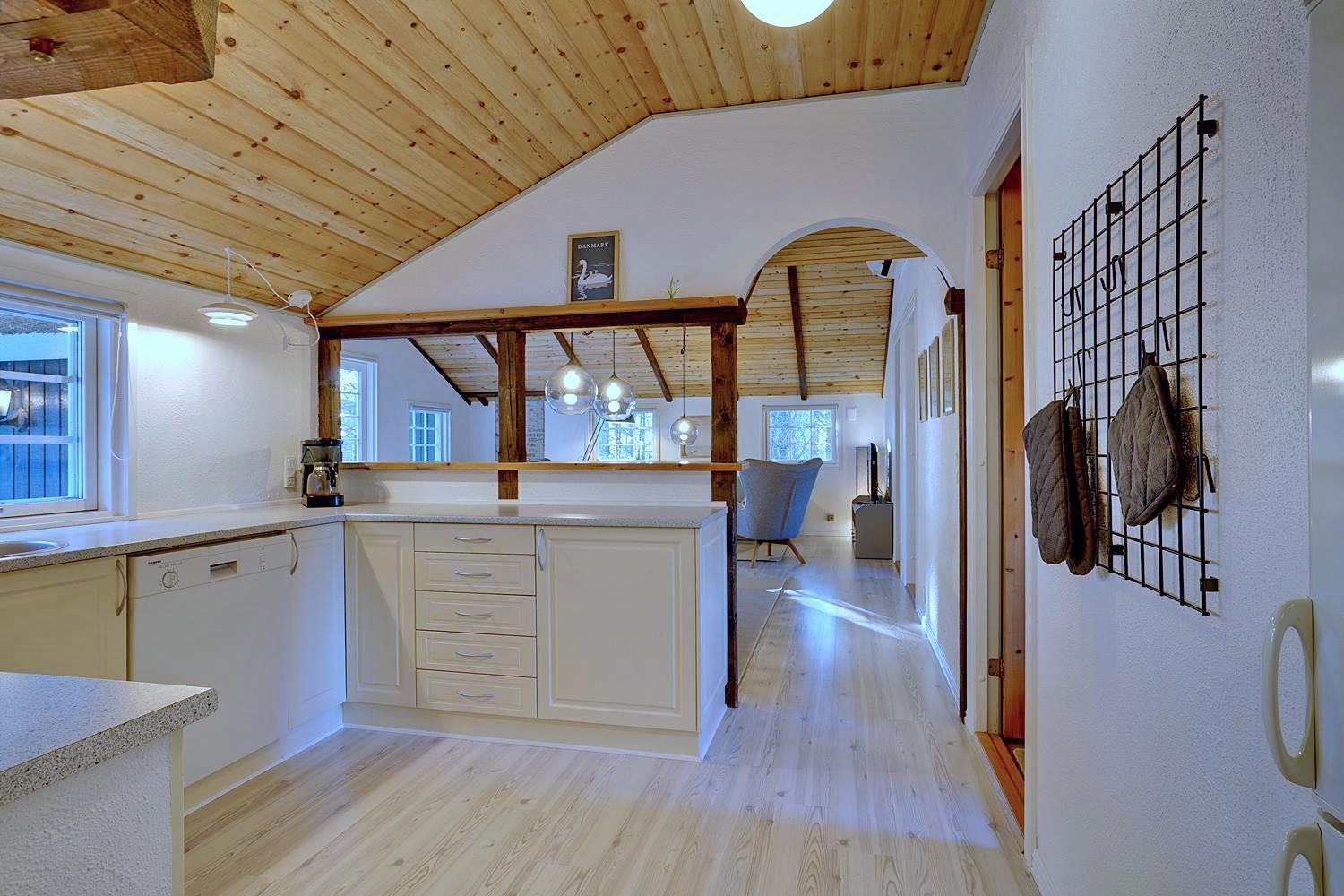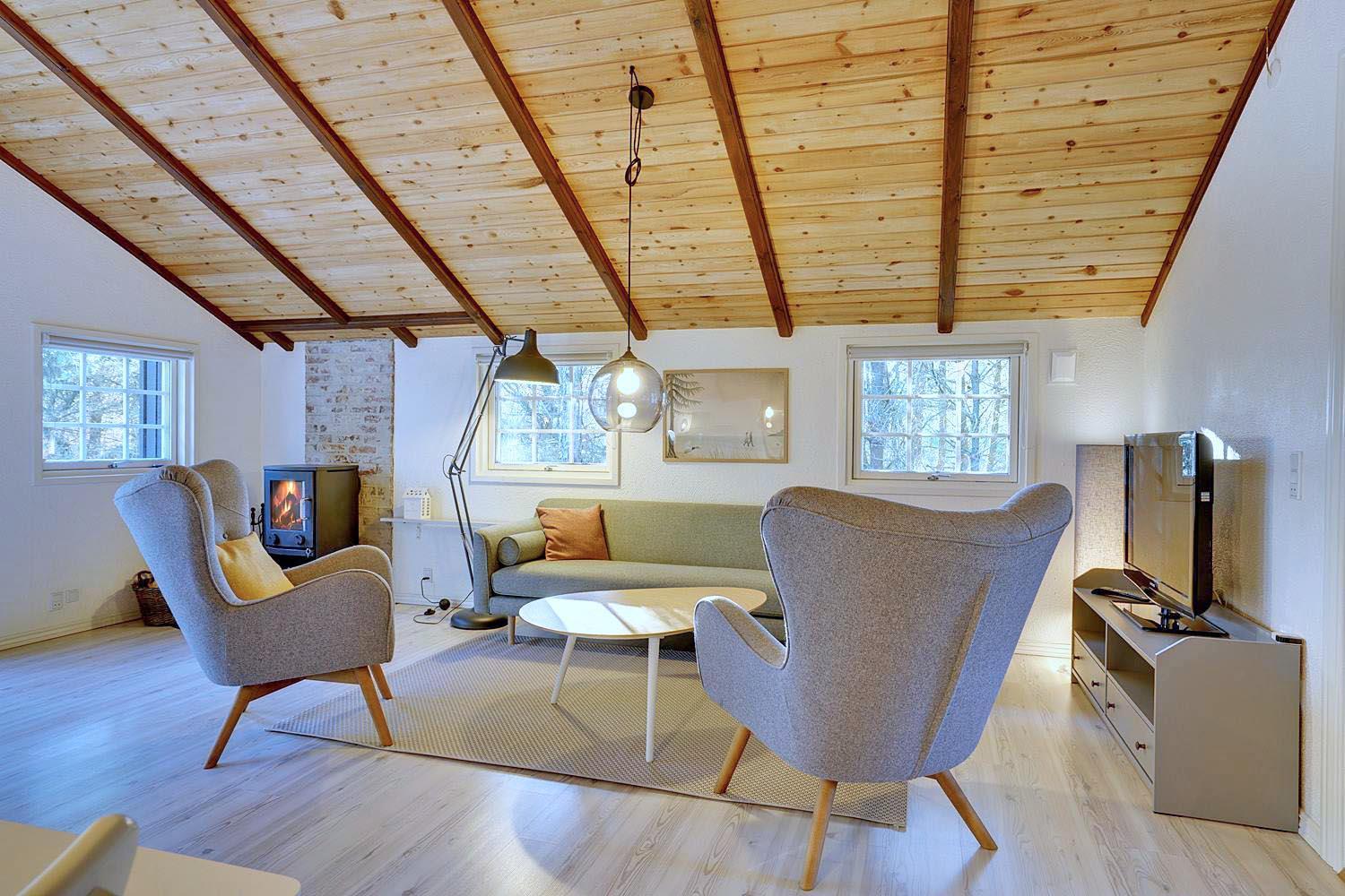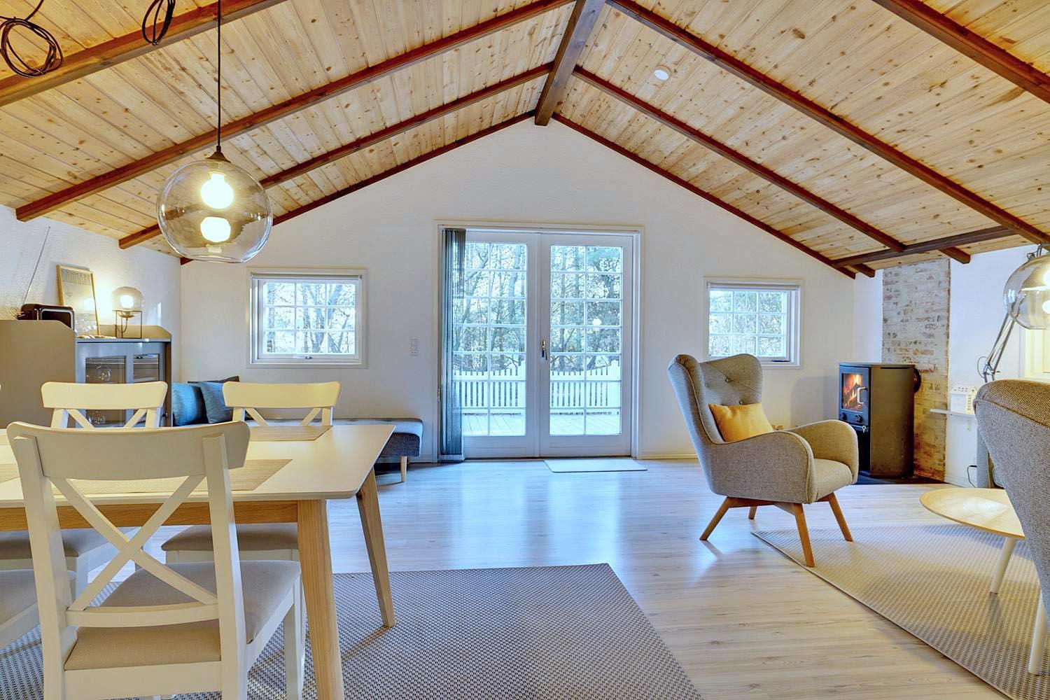Huset er i 2021 blevet opdateret og fremtræder moderne og tidssvarende hele vejen rundt. En lys stue med skøn atmosfære og behagelig møbler. Brændeovn medvirker til hyggen, varmepumpe sørger for et godt indeklima og en strømregning der ikke ryger i vejret. I det åbne køkken med opvaskemaskine, mikroovn og separat fryser på ca. 50 liter vil I kunne kokkerere samtidig med at I er sammen med familien. 3 gode soverum , hvoraf 2 er med dobbeltseng.