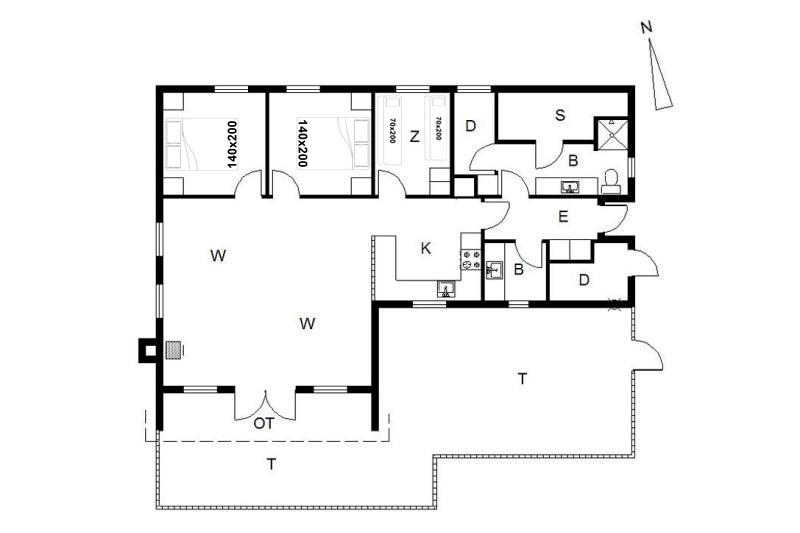 Sengestørrelse: 2 dobbeltsenge 140 x 200 cm + 2 køjesenge 70 x 200 cm
