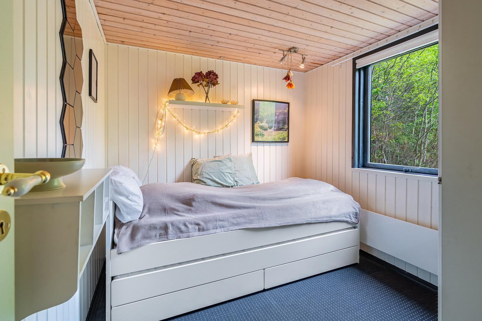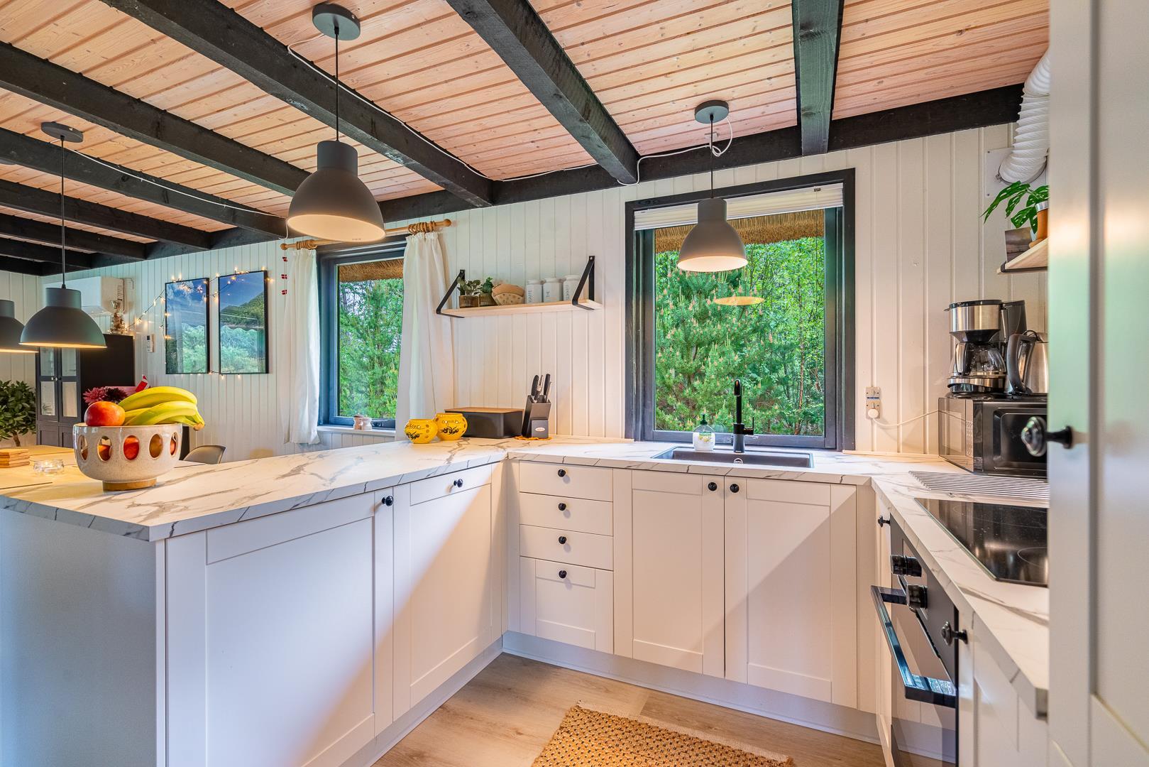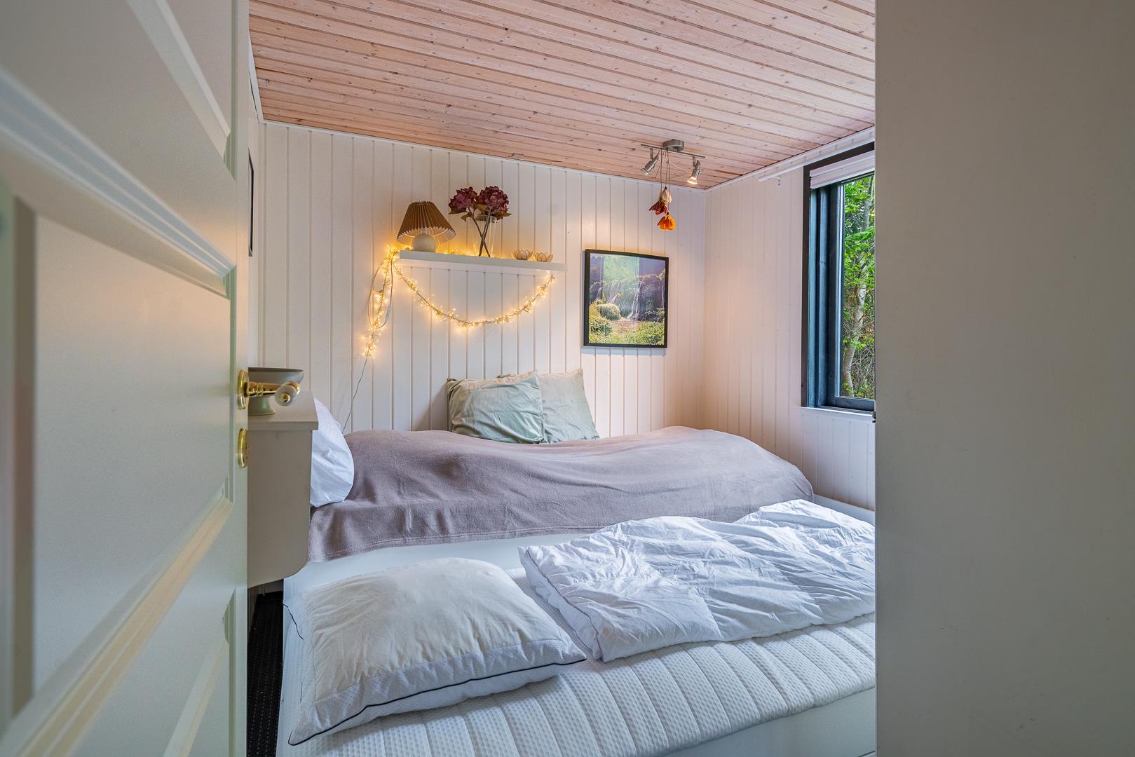 Det lyse og moderne køkken er fuldt udstyret med køleskab, separat fryser, mikrobølgeovn og opvaskemaskine, hvilket gør madlavningen let og bekvem. Huset har tre soverum: et med en dobbeltseng m/udtræk i stueetagen og 2 soverum med dobbeltseng på første sal. De rummelige soverum på første sal sikrer masser af komfort og plads til afslapning.