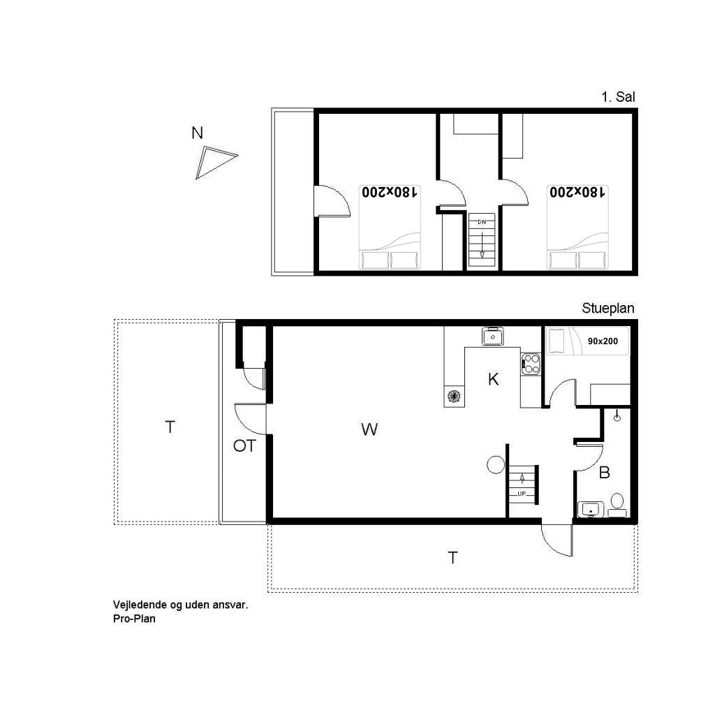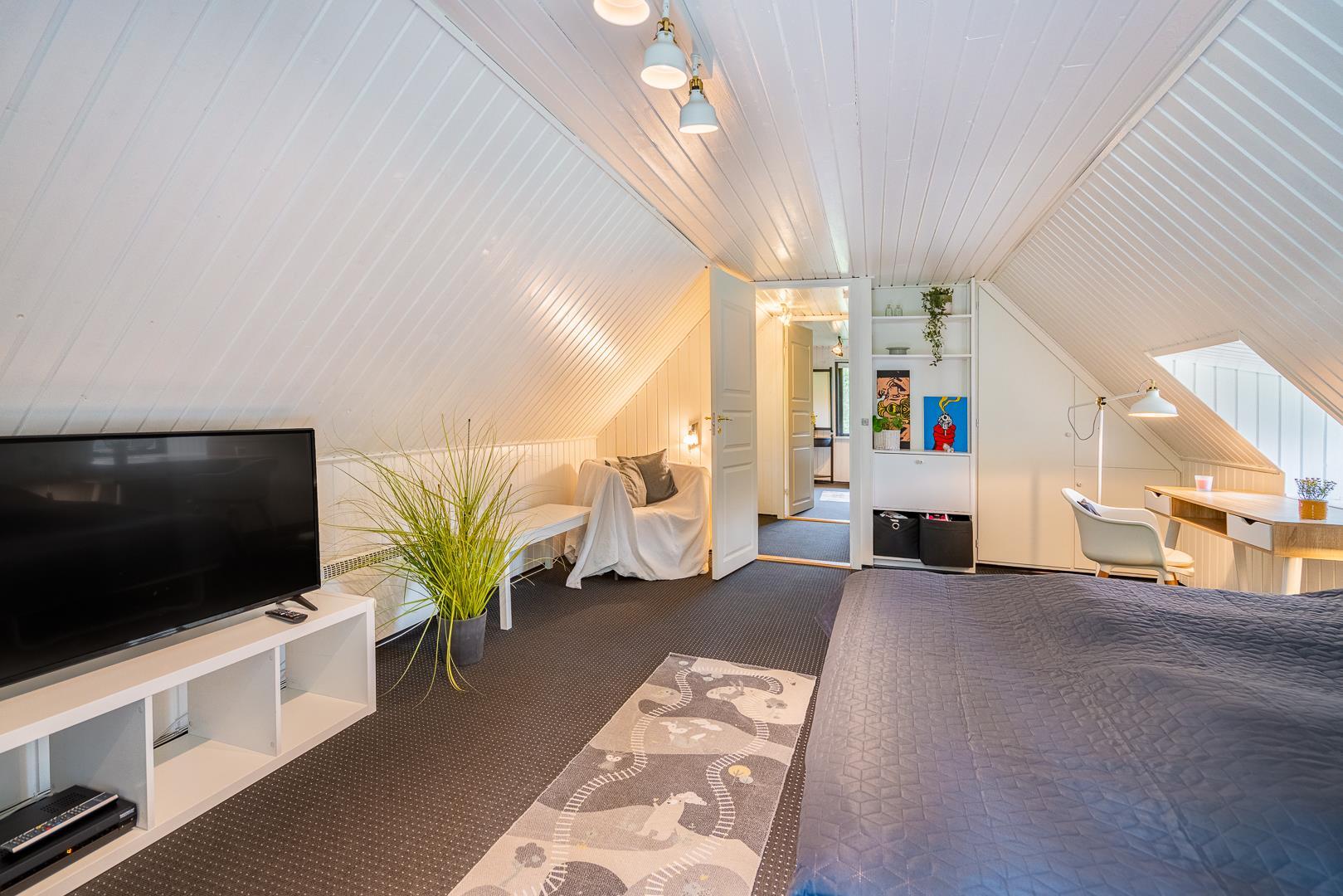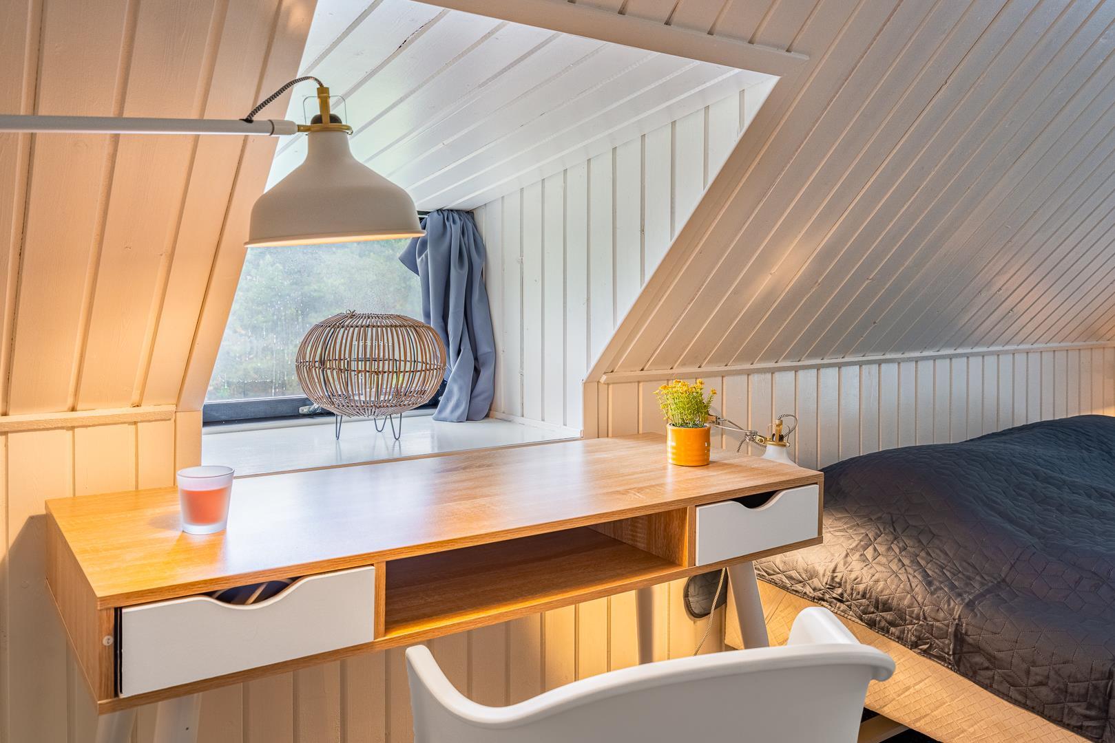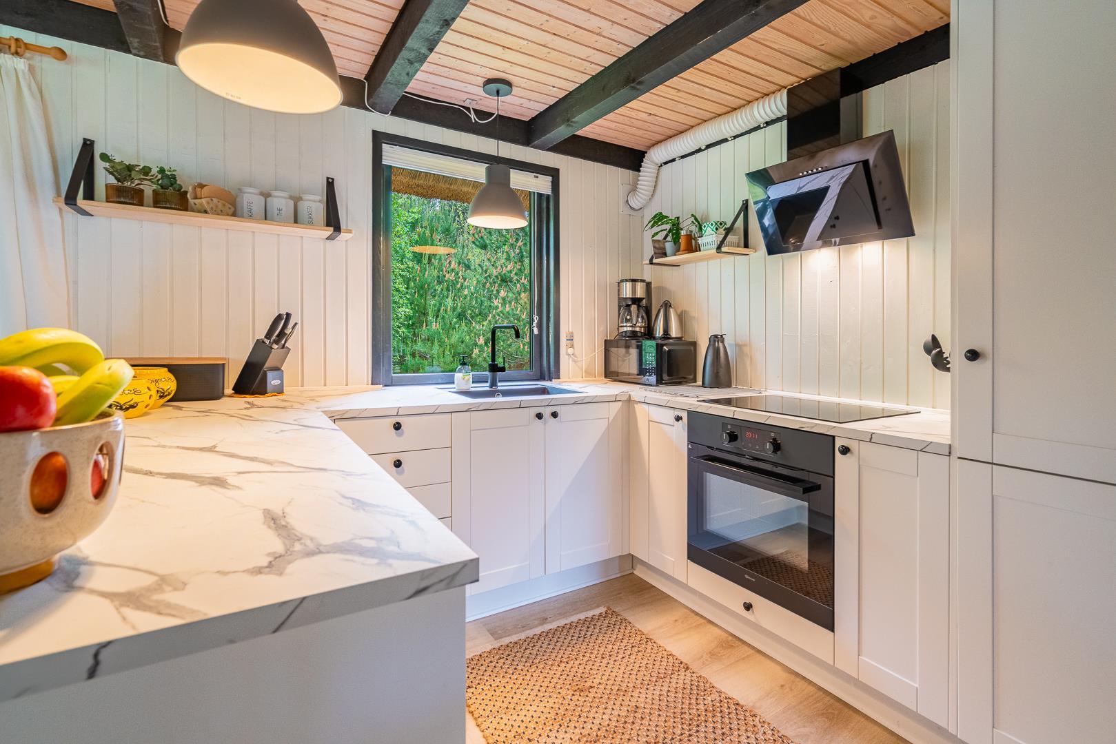 Det lyse og moderne køkken er fuldt udstyret med køleskab, separat fryser, mikrobølgeovn og opvaskemaskine, hvilket gør madlavningen let og bekvem. Huset har tre soverum: et med en dobbeltseng m/udtræk i stueetagen og 2 soverum med dobbeltseng på første sal. De rummelige soverum på første sal sikrer masser af komfort og plads til afslapning.