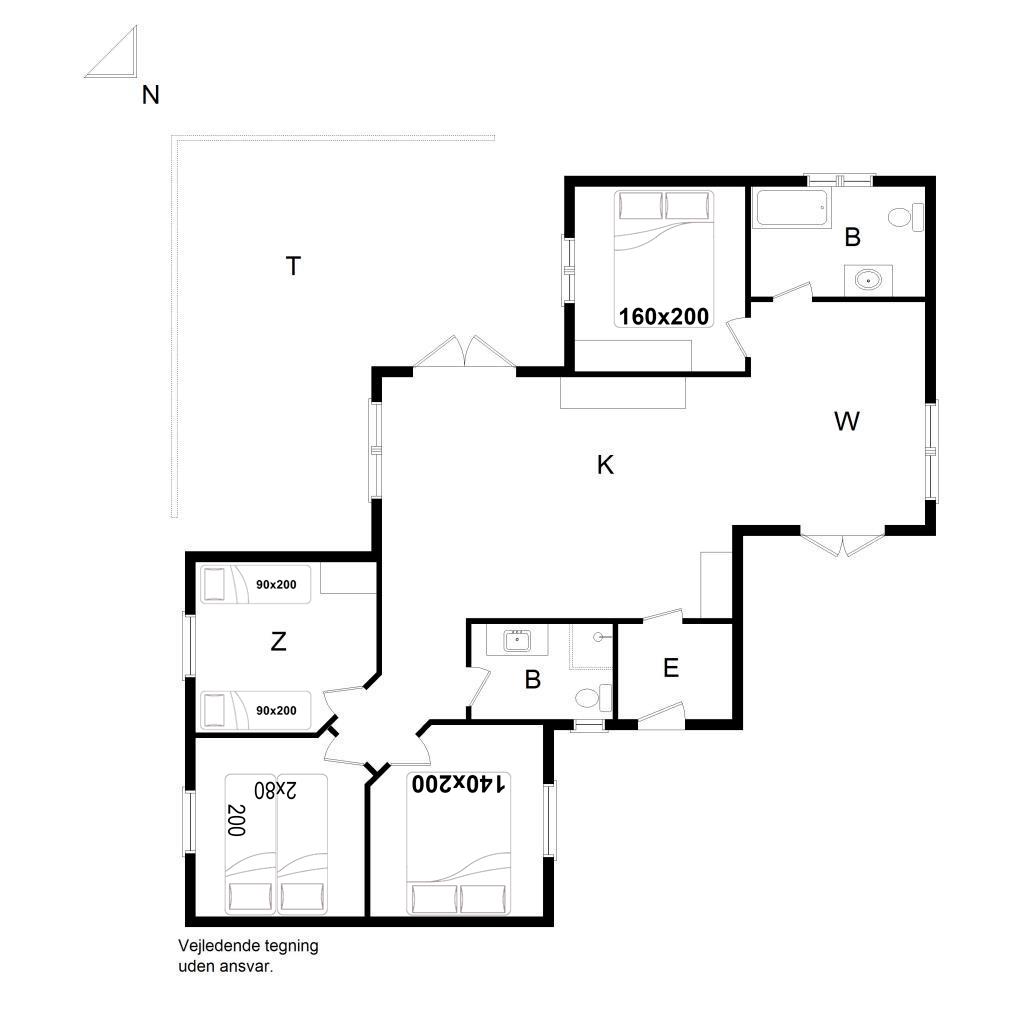 Feriehuset i Houstrup er opført i 2014 og byder på over 100m² velindrettet ferieidyl med plads til op til 8 personer. Her er 4 gode soveværelser med komfortable senge og god skabsplads – perfekt til den store familie eller flere vennepar. Huset har desuden 2 pæne badeværelser, hvoraf det ene er udstyret med et badekar – ideelt til lange, afslappende bade efter en aktiv dag i naturen.