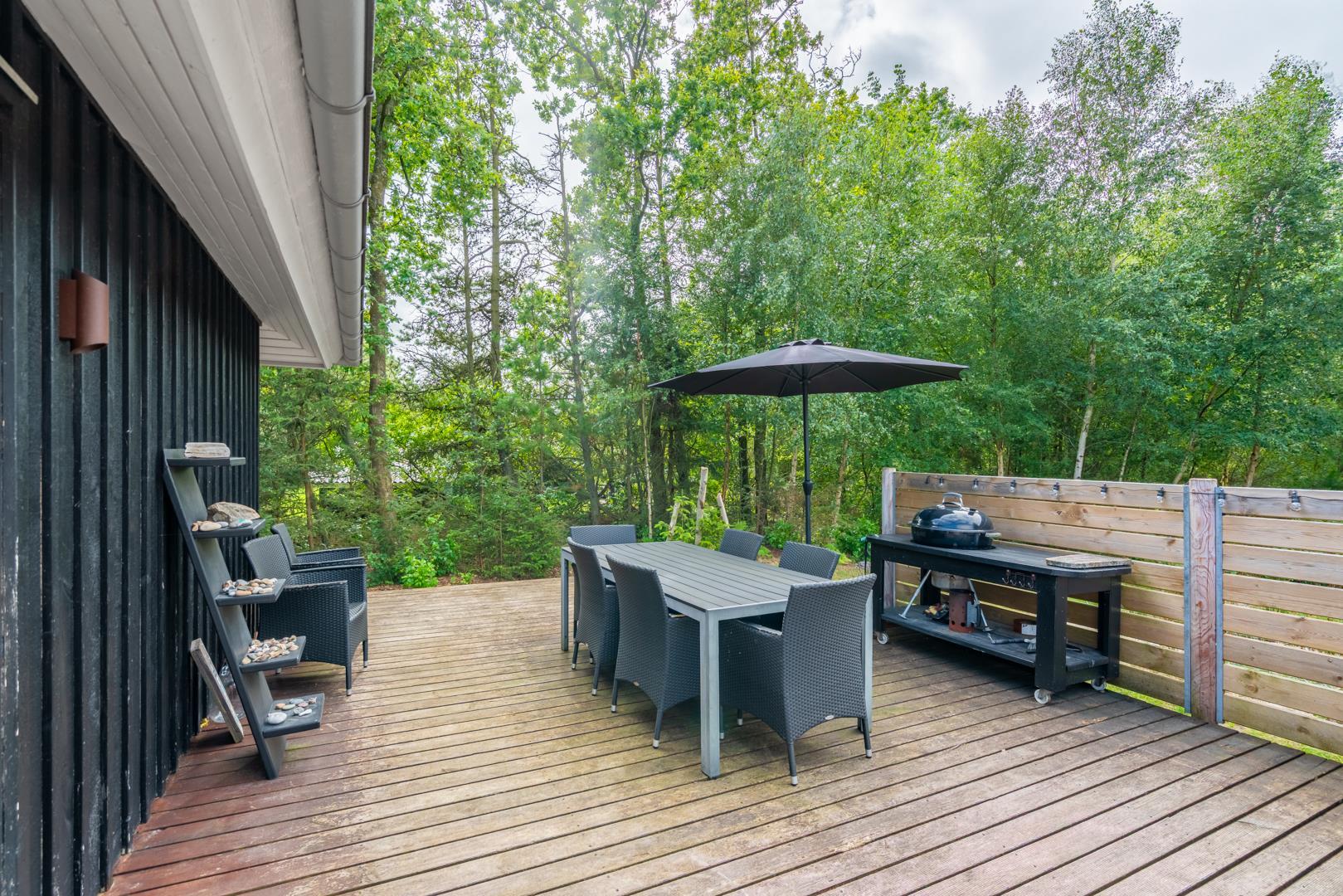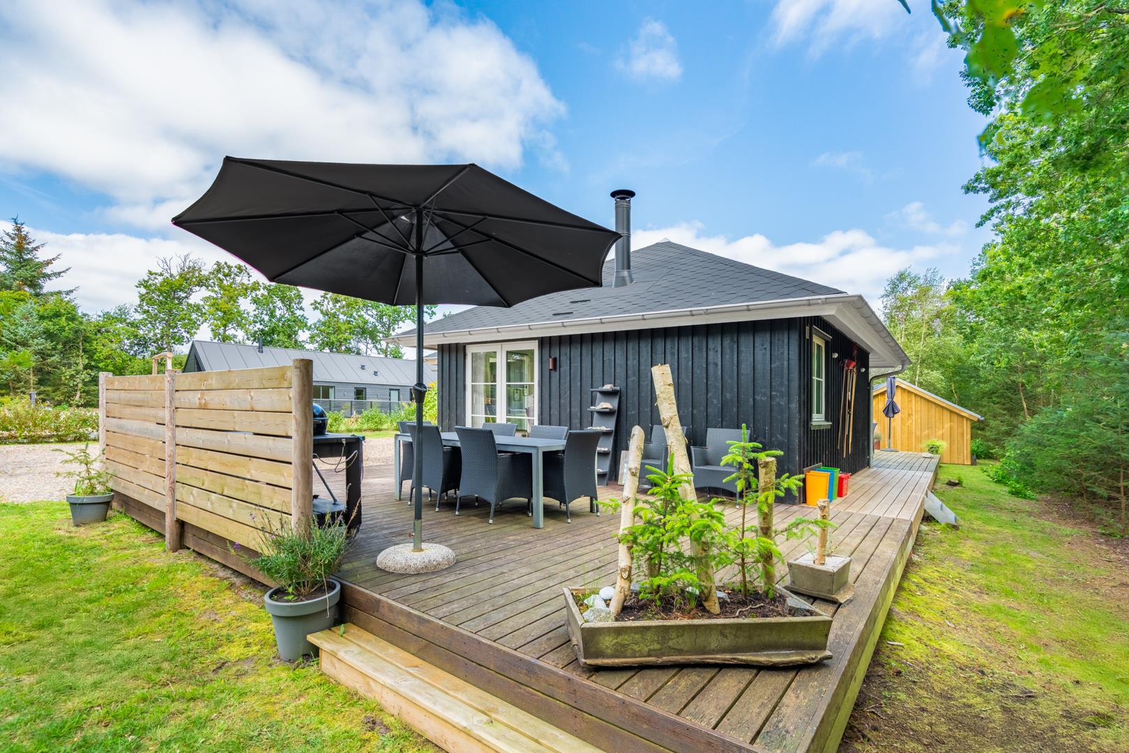 Udendørs er to store træterrasser, hvor der både er sol, læ og skygge i løbet af dagen. Her kan du nyde morgenkaffen eller et glas vin i aftensolen – og selvfølgelig tænde op i grillen til en hyggelig middag under åben himmel. Den store naturgrund byder på masser af plads til boldspil og leg, og børnene vil elske legetårnet og sandkassen.