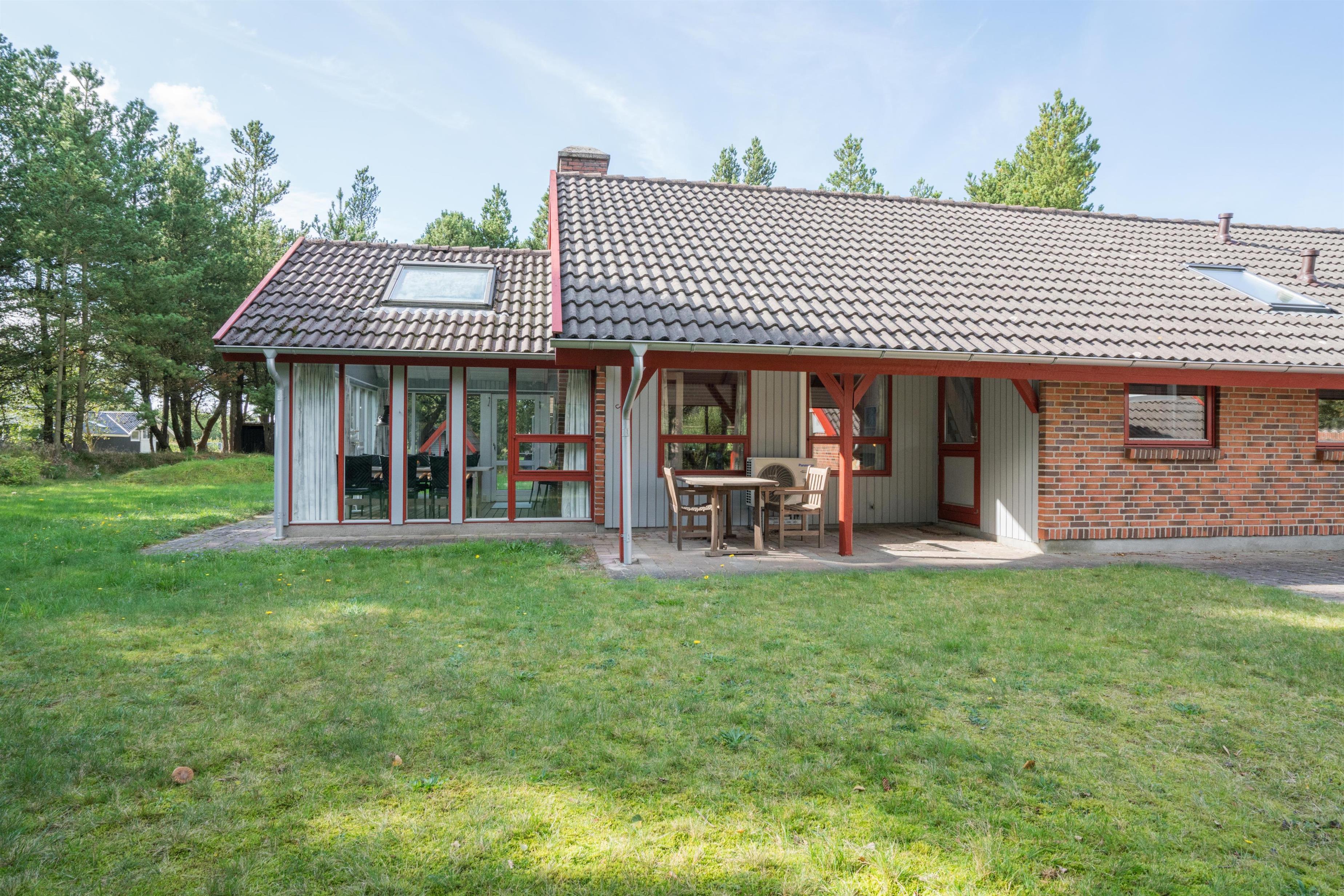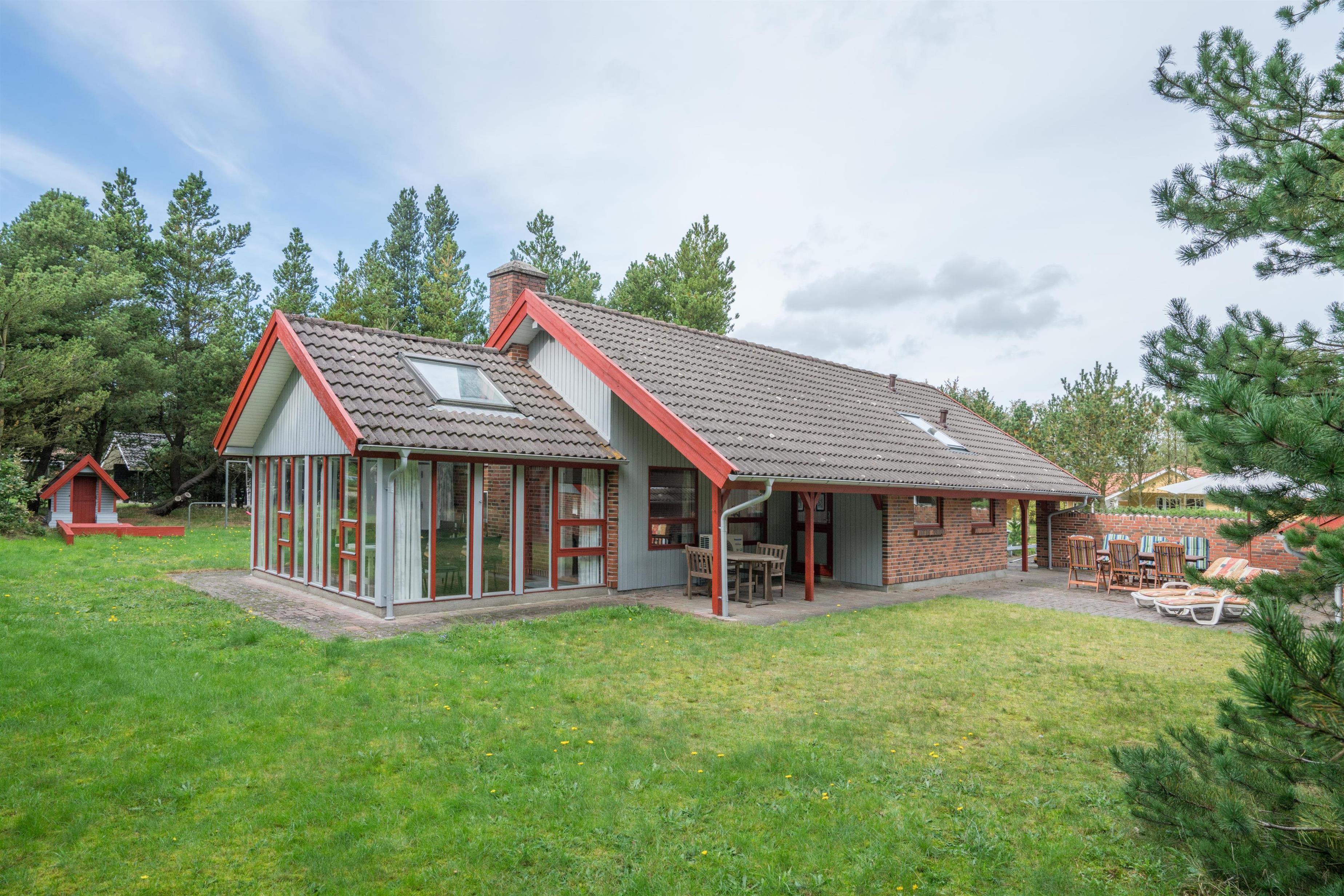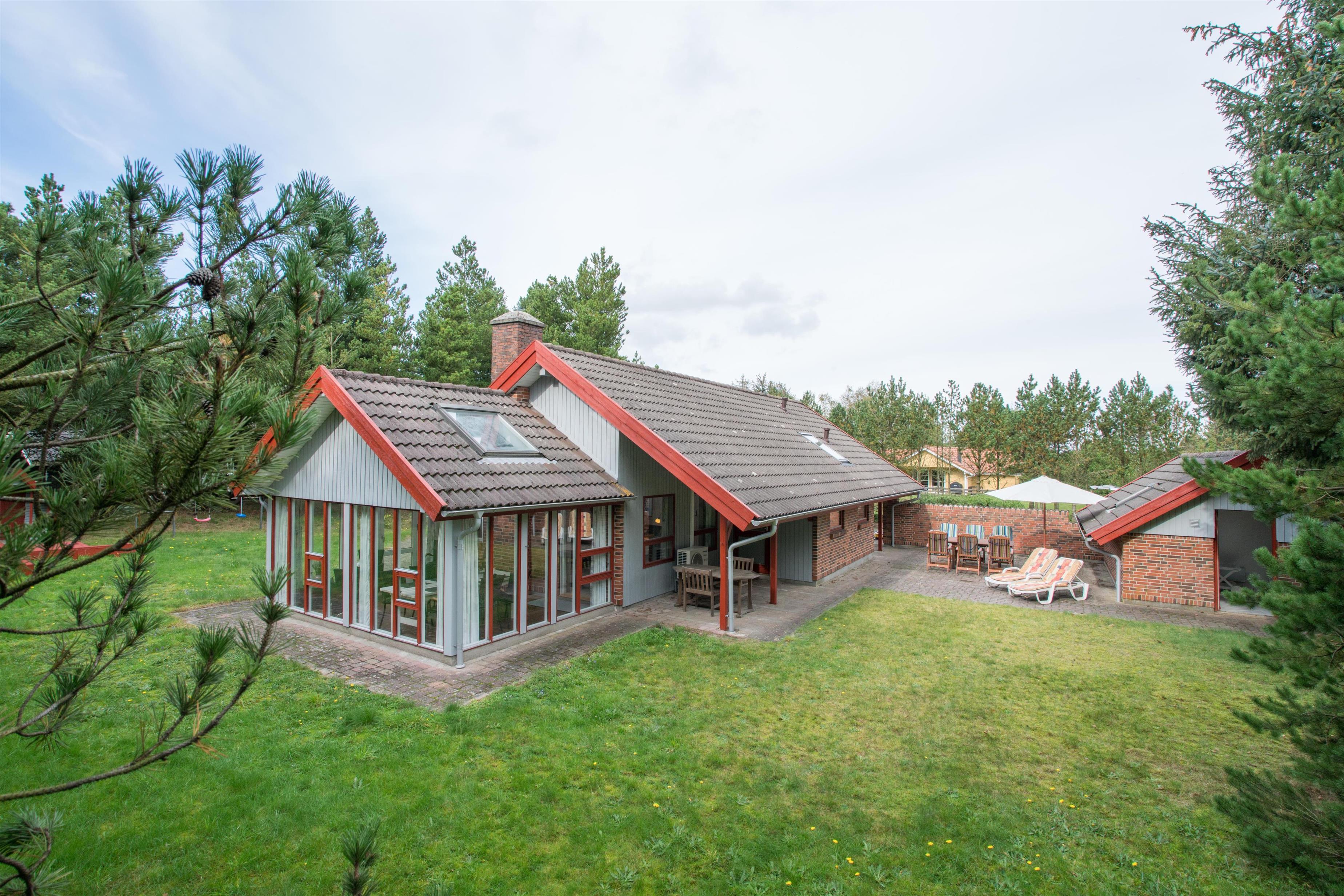 På Søndervang 43, finder I dette velholdte feriehus med plads til 6 personer. Huset ligger på en ugeneret naturgrund i stille og rolige omgivelser. Aktivitetsrum med dart, fodboldbord og ribbe. Med 150m2 og plads til 6 personer fordelt på 3 soverum, er huset rummeligt. I det ene soverum står der fast en barneseng. Hyggelig stue med brændeovn, varmepumpe - udgang til skøn udestue, som vil kunne nydes hele året. Her findes badeværelse med spa hvis I er til wellness. Sauna er separat. Køkken med ovenlysvindue og spiseplads. Opvaskemaskine findes i bryggerset. Tilbygning med grovkøkken, hvor de friskfangede fisk evt. kan renses. I annekset forefindes ligeledes kummefryser på 80 liter samt vaskemaskine og tørretumbler. Hems, med låge - her kan børnene trække sig tilbage.