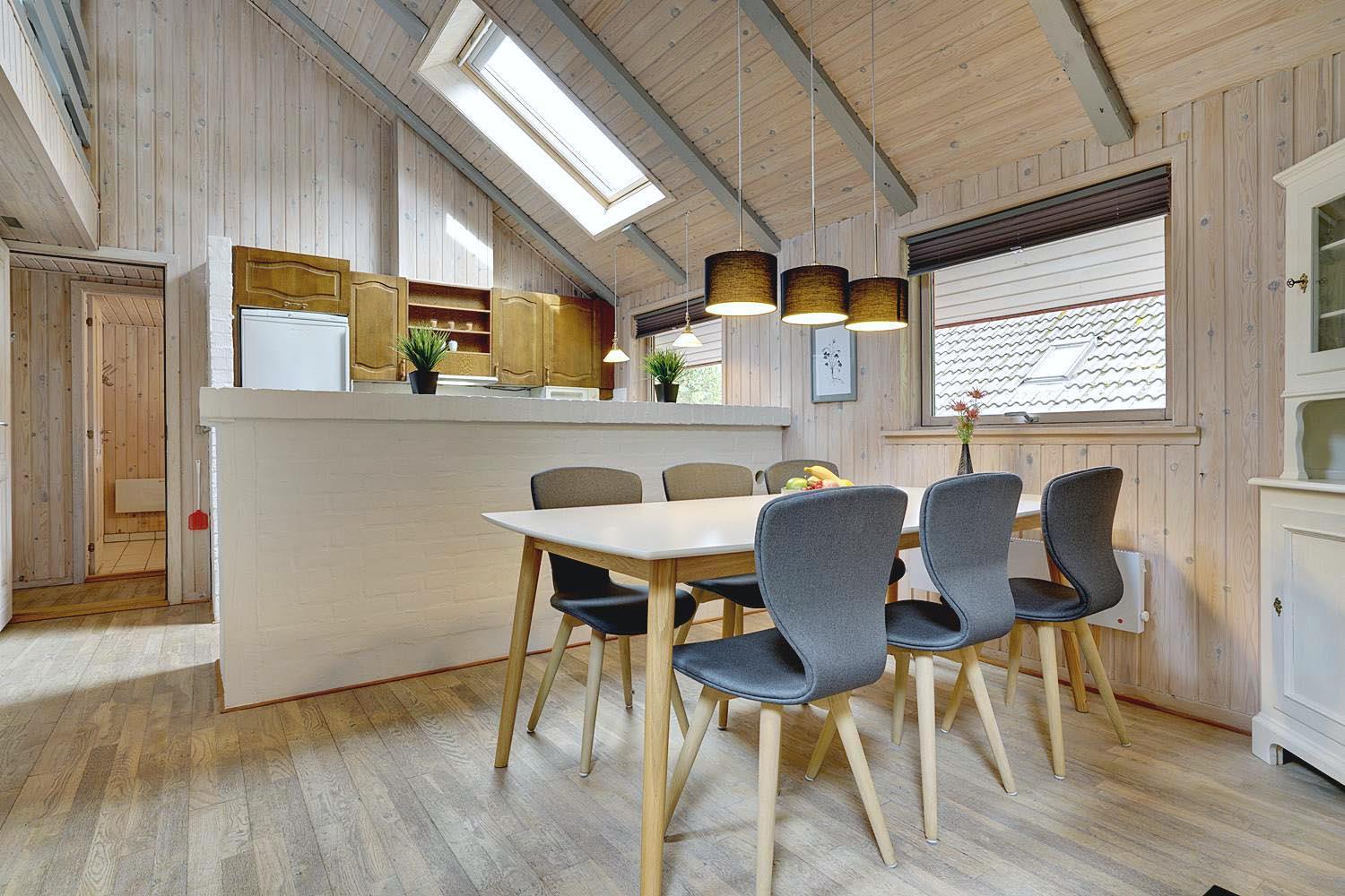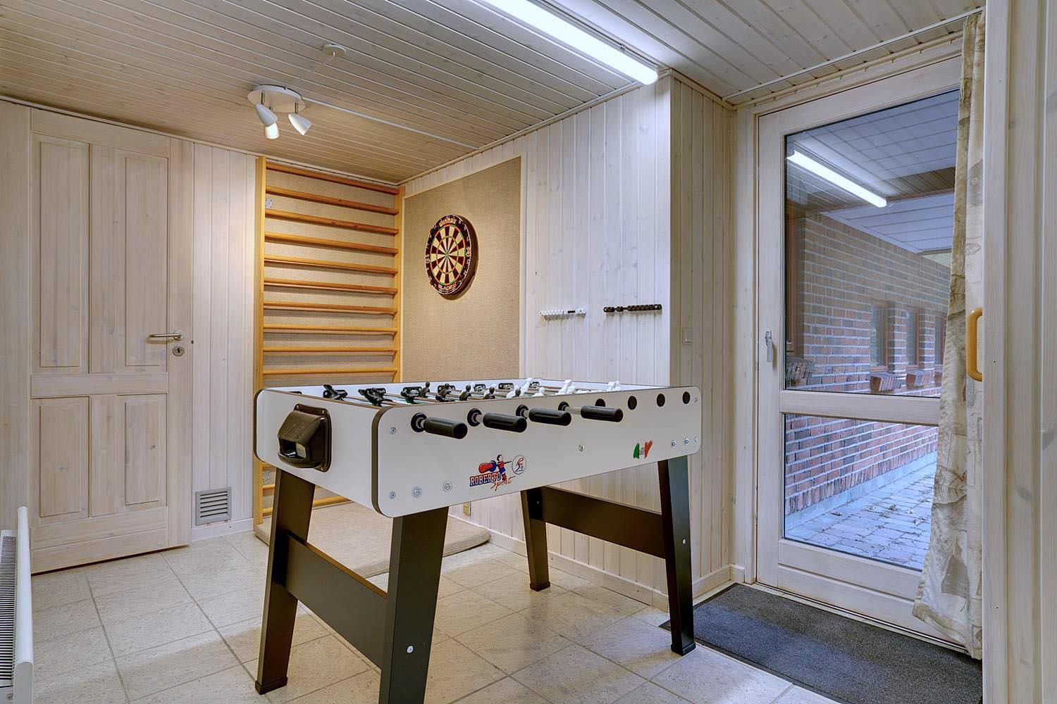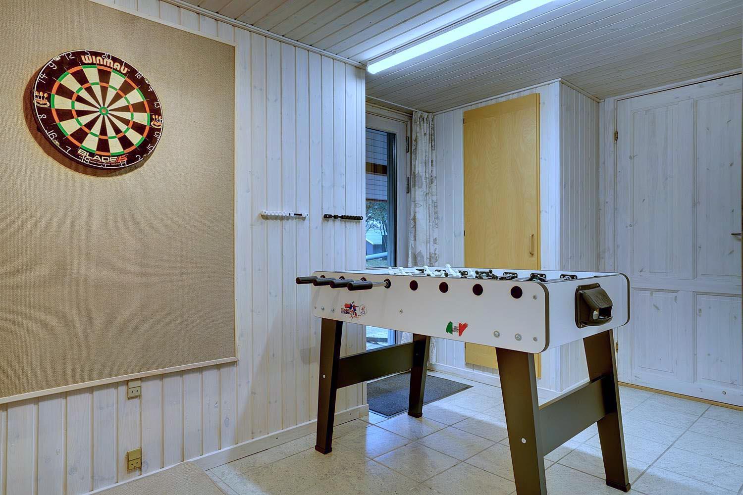 På Søndervang 43, finder I dette velholdte feriehus med plads til 6 personer. Huset ligger på en ugeneret naturgrund i stille og rolige omgivelser. Aktivitetsrum med dart, fodboldbord og ribbe. Med 150m2 og plads til 6 personer fordelt på 3 soverum, er huset rummeligt. I det ene soverum står der fast en barneseng. Hyggelig stue med brændeovn, varmepumpe - udgang til skøn udestue, som vil kunne nydes hele året. Her findes badeværelse med spa hvis I er til wellness. Sauna er separat. Køkken med ovenlysvindue og spiseplads. Opvaskemaskine findes i bryggerset. Tilbygning med grovkøkken, hvor de friskfangede fisk evt. kan renses. I annekset forefindes ligeledes kummefryser på 80 liter samt vaskemaskine og tørretumbler. Hems, med låge - her kan børnene trække sig tilbage.