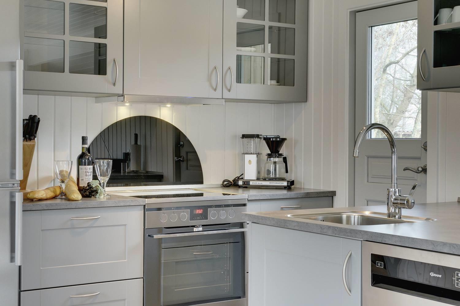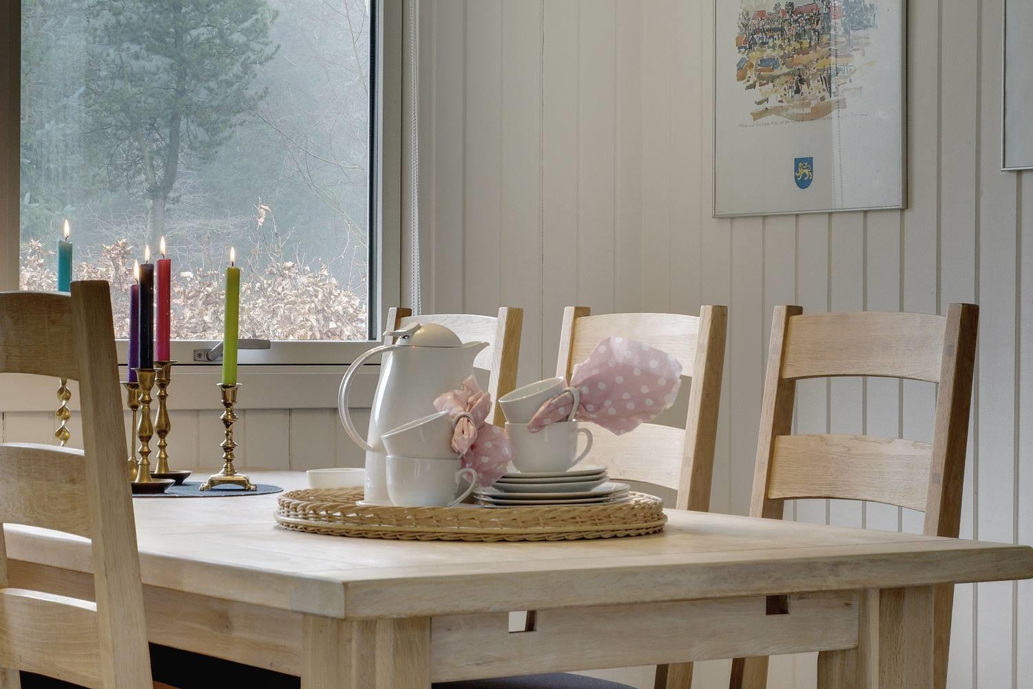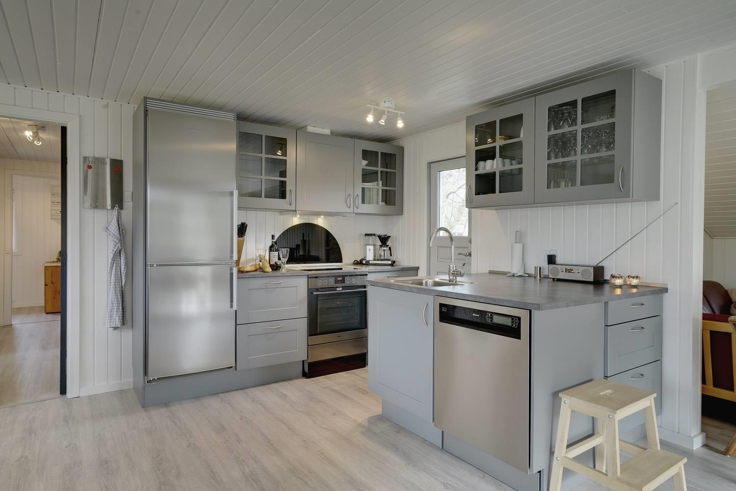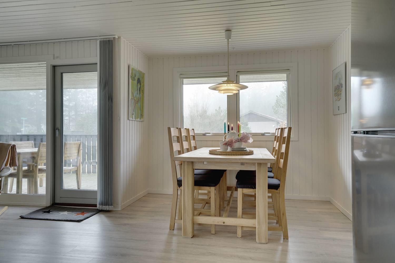 Huset byder på et lyst og moderne køkken med induktionskogeplader, hvor madlavningen bliver en leg. Den hyggelige stue er indrettet med brændeovn og varmepumpe, som sikrer varme og hygge året rundt. Med tre gode soverum, hvoraf to har dobbeltsenge, er der god plads til hele familien. Badeværelset er praktisk indrettet med vaskemaskine og dejlig gulvvarme.