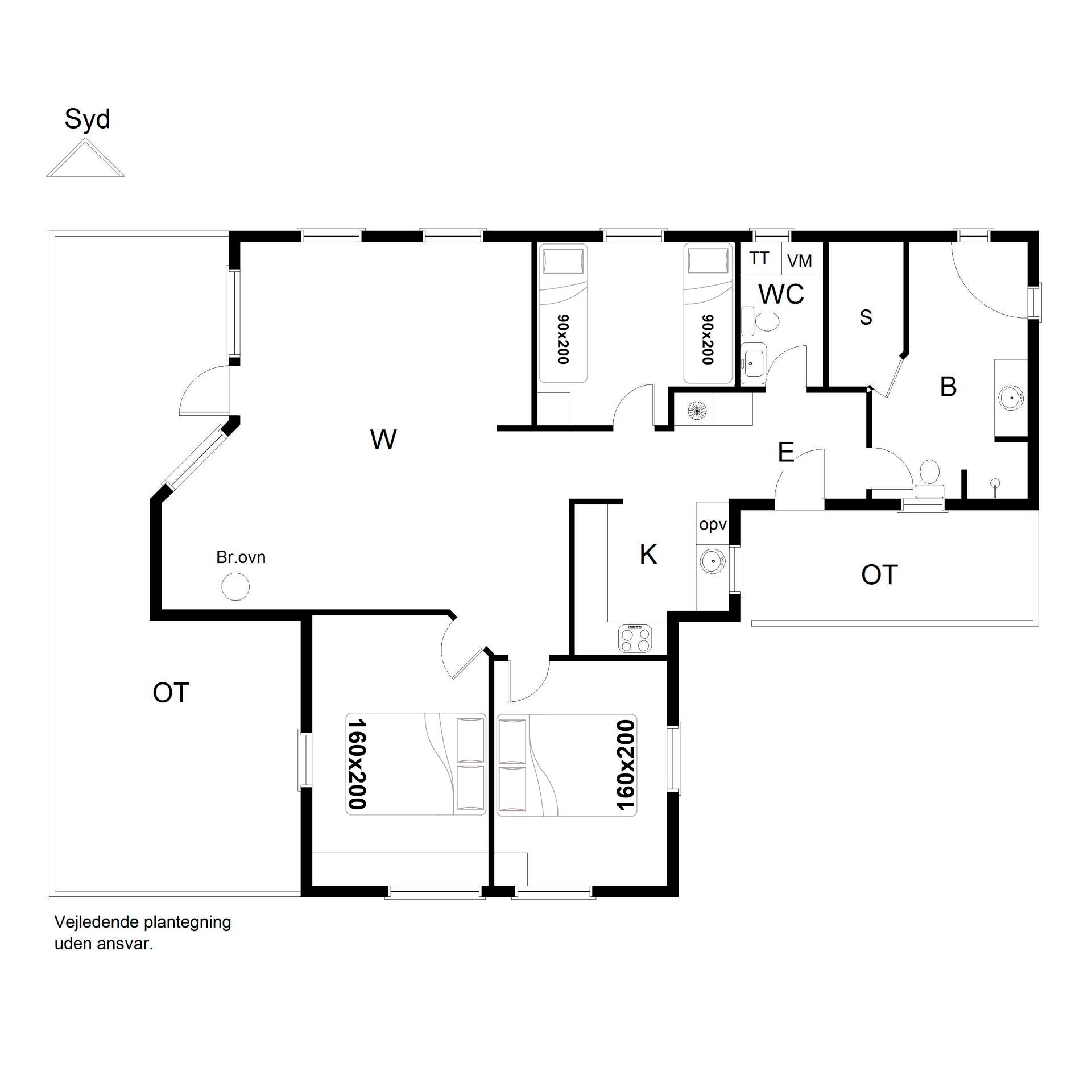 Sengestørrelse: 2 dobbeltseng 160 x 200 cm + 2 enkeltsenge 90 x 200 cm.
