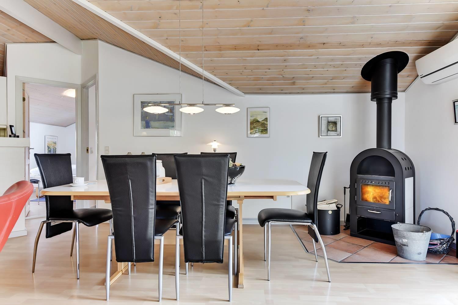 For ende af vej, i det stille og rolige Houstrup, ligger dette hyggelige, personlige og velholdte feriehus. Der er højt til loftet, 3 soverum - 2 med dobbelt senge og 1 med enkelt senge. Pænt indgangsparti - dejligt køkken med 70 l. separat fryser, mikroovn og opvaskemaskine. Badeværelse med spa og sauna, samt ekstra toilet med håndvask. Hyggelig stue med tv, brændeovn og varmepumpe - dejligt vinduesparti.