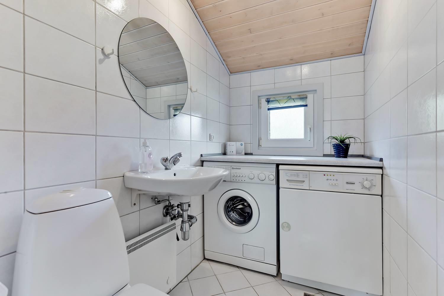Med gynger, sandkasse, højstol og barneseng såvel som vaskemaskine og tørretumbler, er huset meget børnevenligt. Grunden er ugeneret, gode terrasseforhold - både åben og overdækket terrasse. Carport til bilen og skur til lejer. Der er gulvvarme i køkken og på begge badeværelser.