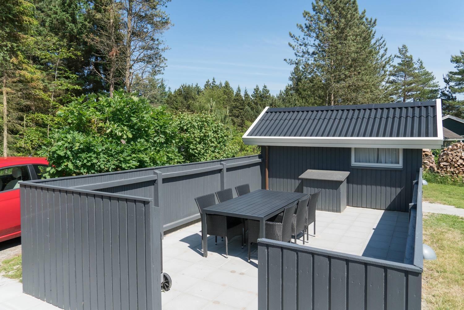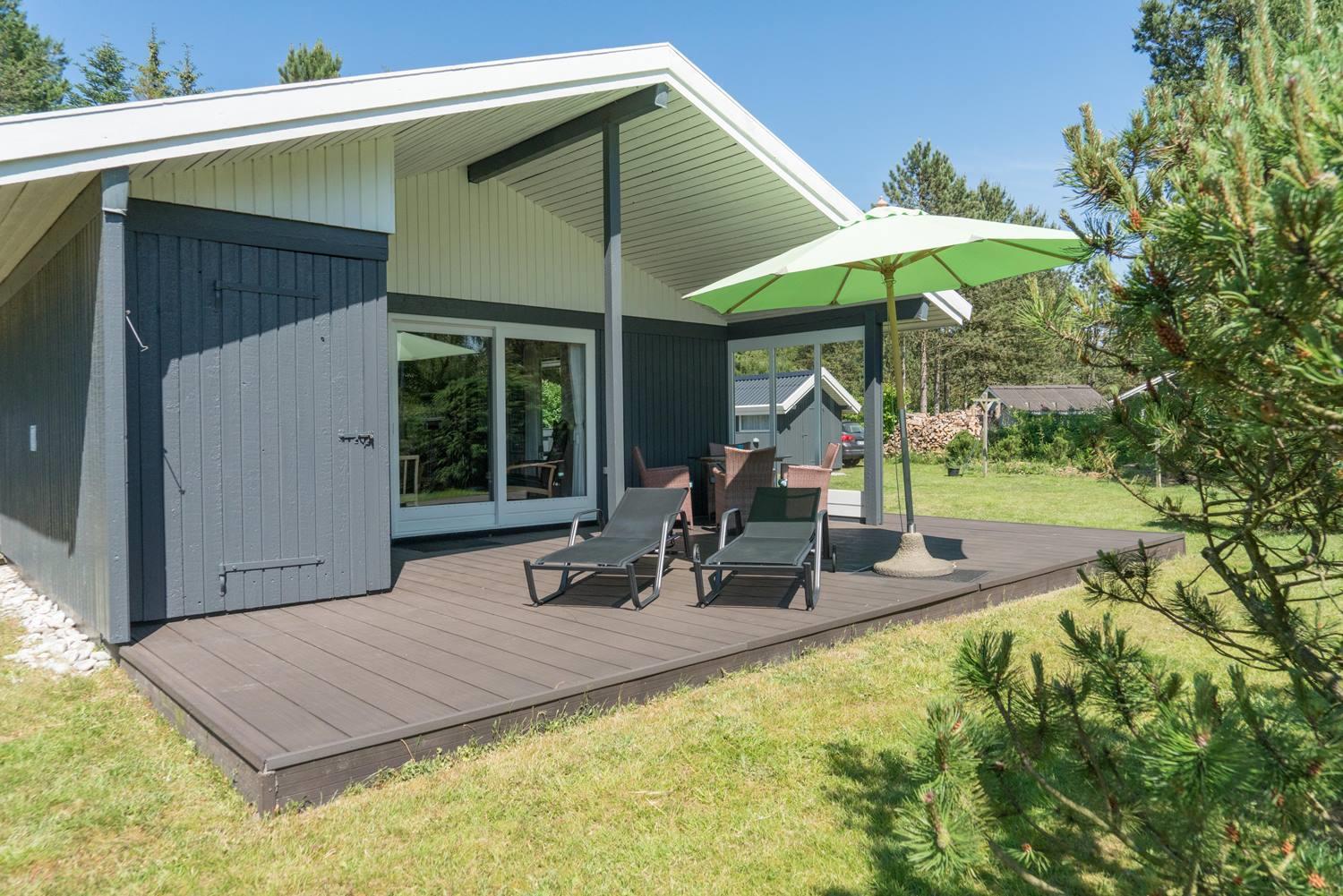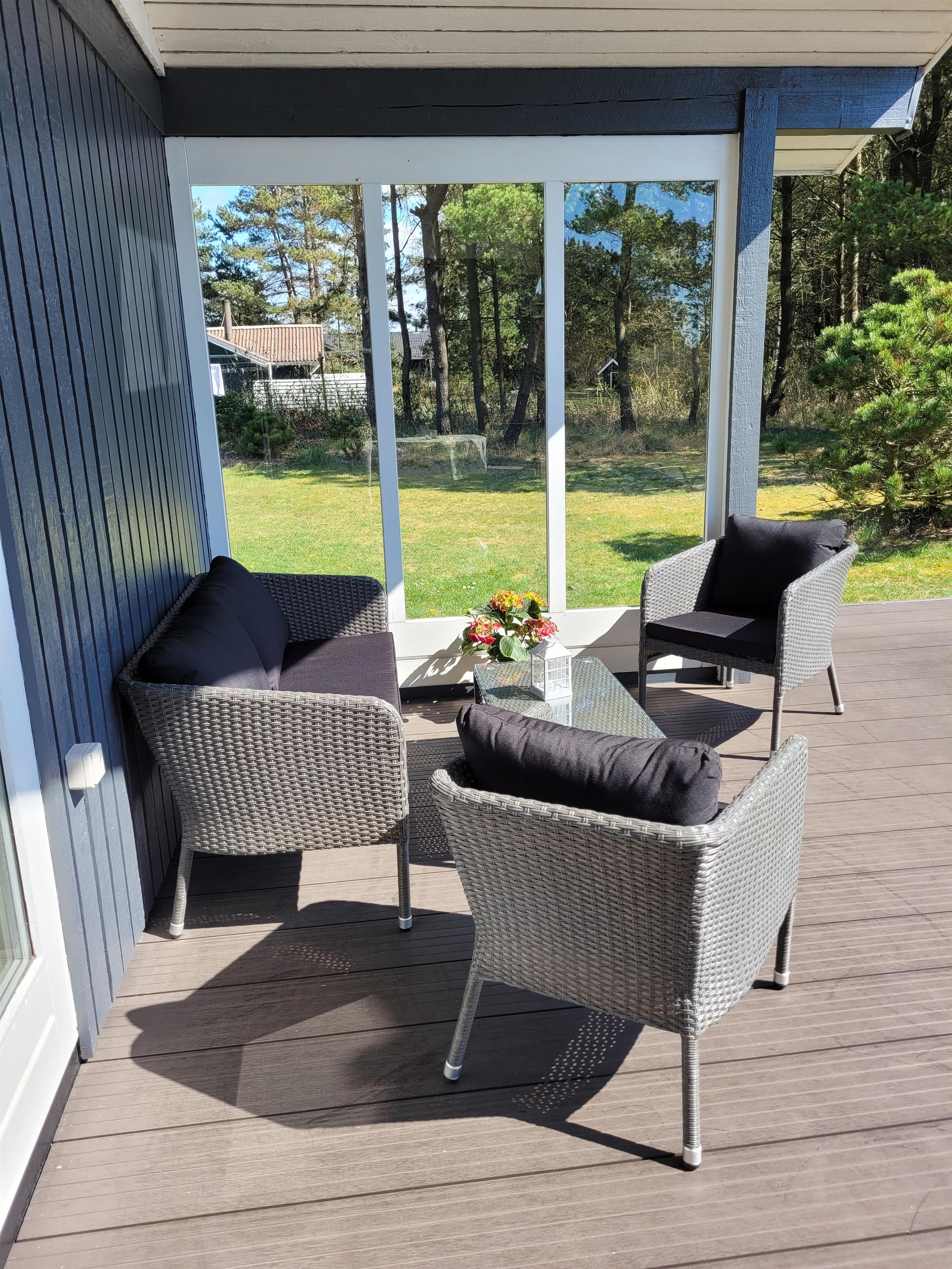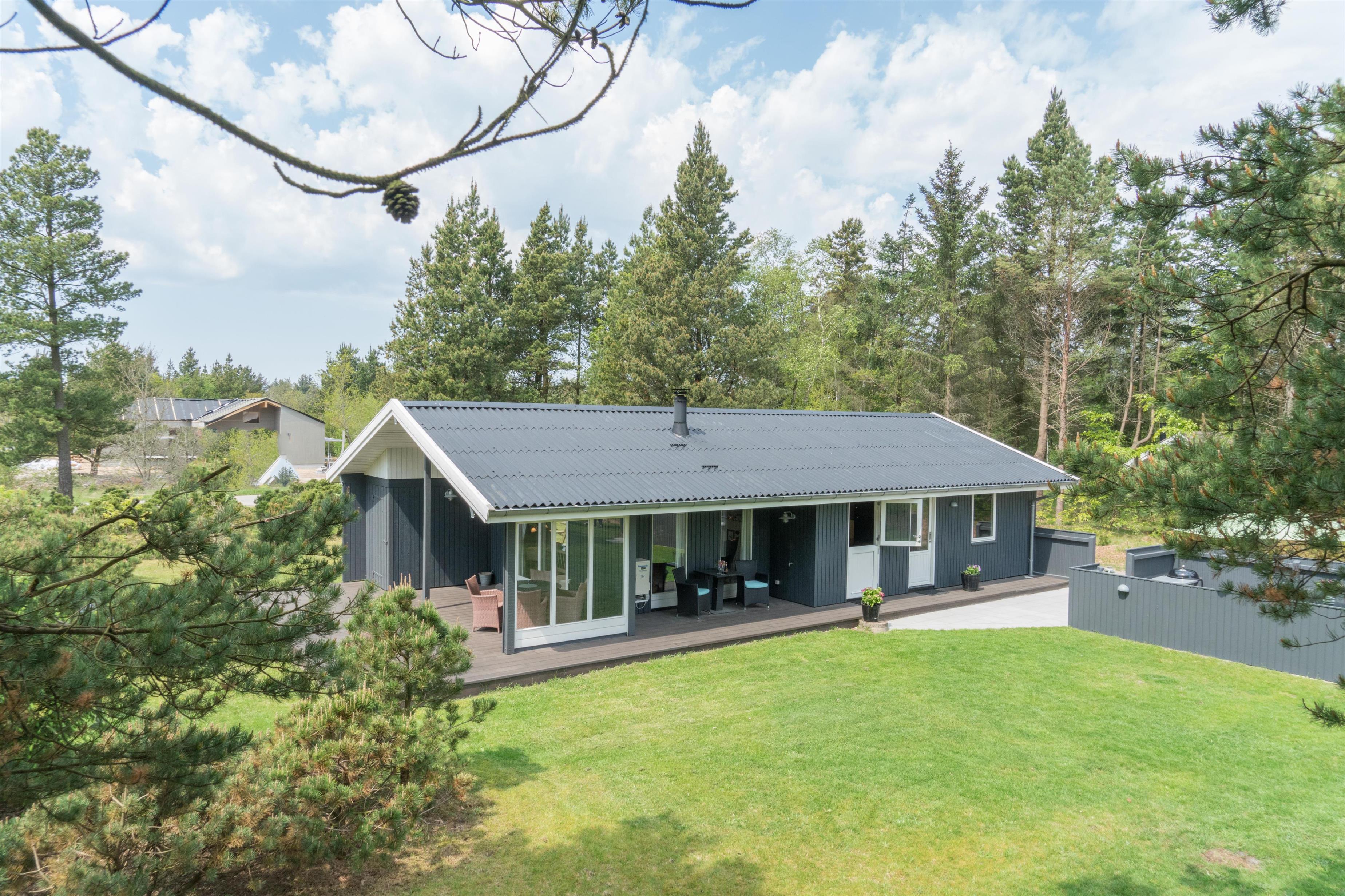 På Søndervang 55 får du et feriehus omgivet af træer og buske, masser af læ- og hyggekroge og åben som overdækket terrasse, så uanset hvad vejrguderne finder på, kan du finde læ eller skygge på alle tidspunkter af dagen. Huset bærer præg af hygge og personlighed - Du vil straks føle jer hjemme. Der findes desuden en lukket gårdhave.