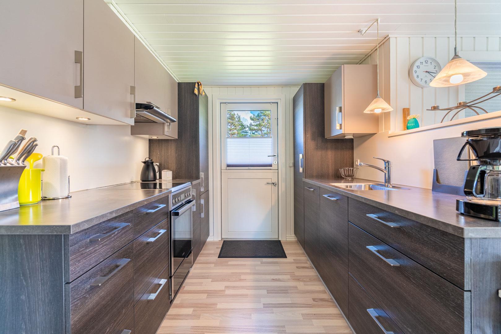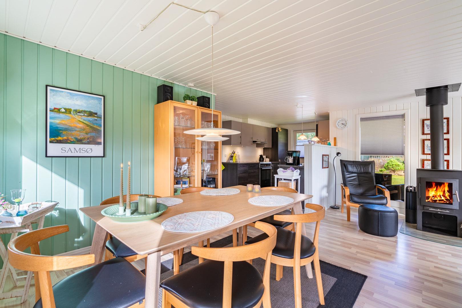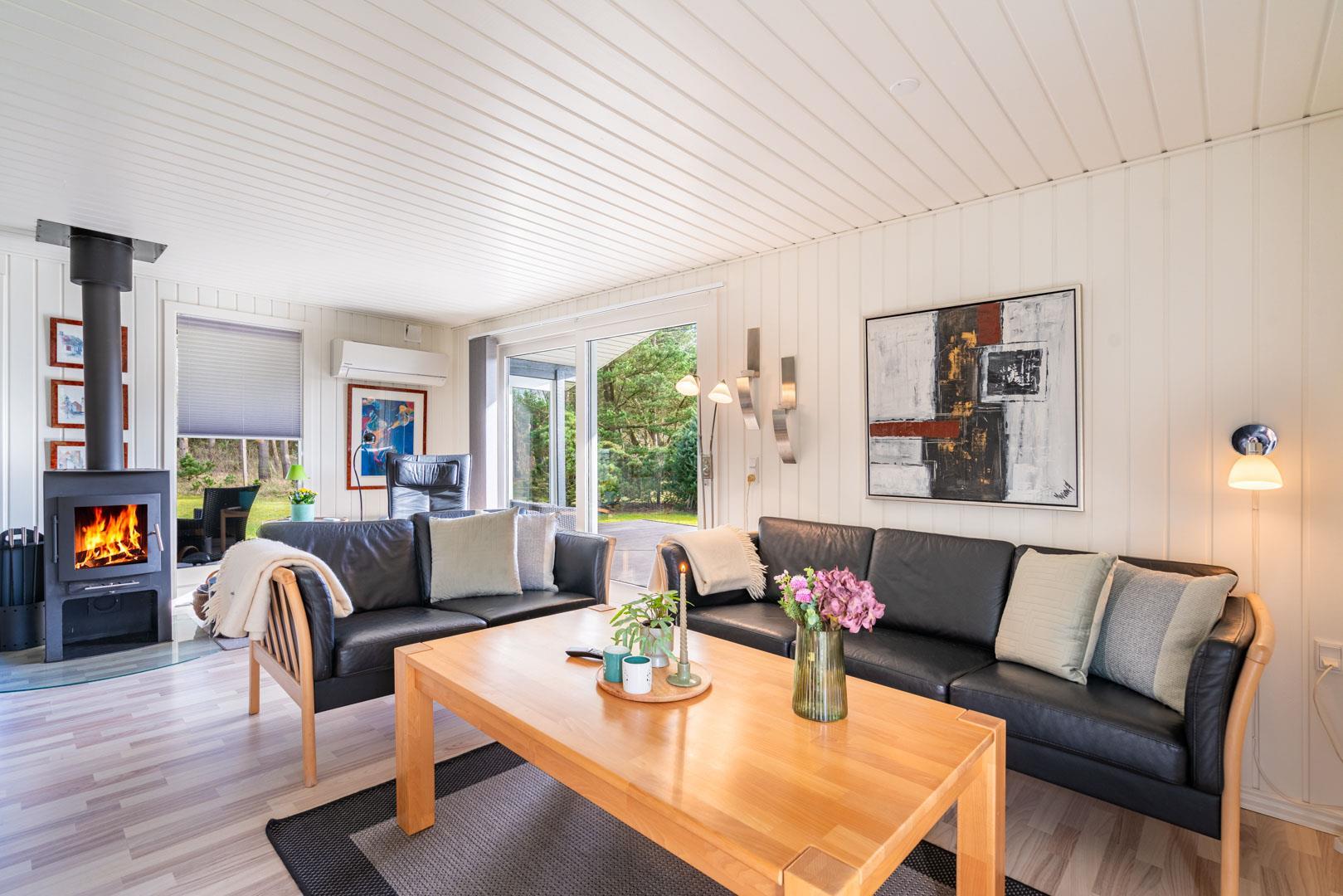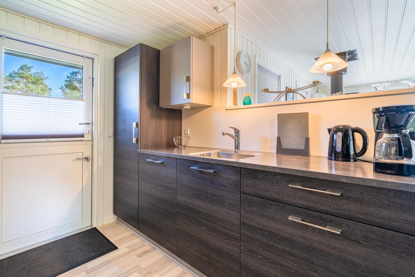 Flot nyere køkken med fryser (60 liter), opvaskemaskine og mikroovn. Særdeles hyggelig stue med komfortable møbler - lige til at slappe af i efter en dag i den skønne natur. Brændeovn og varmepumpe, hjælper dig med at holde varmen på en kold dag. 3 gode soverum med dobbeltseng. Et pænt badeværelse, nydeligt og skånsomt renoveret. Badeværelset er opgraderet med en sauna - velegnet på en kold eller våd dag. Hvis du får behov for at vaske i ferien, kan du gøre brug af vaskemaskine og tørretumbler i det tilhørende skur.