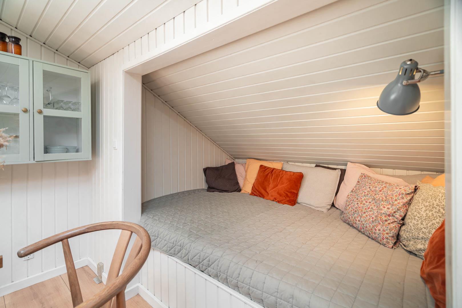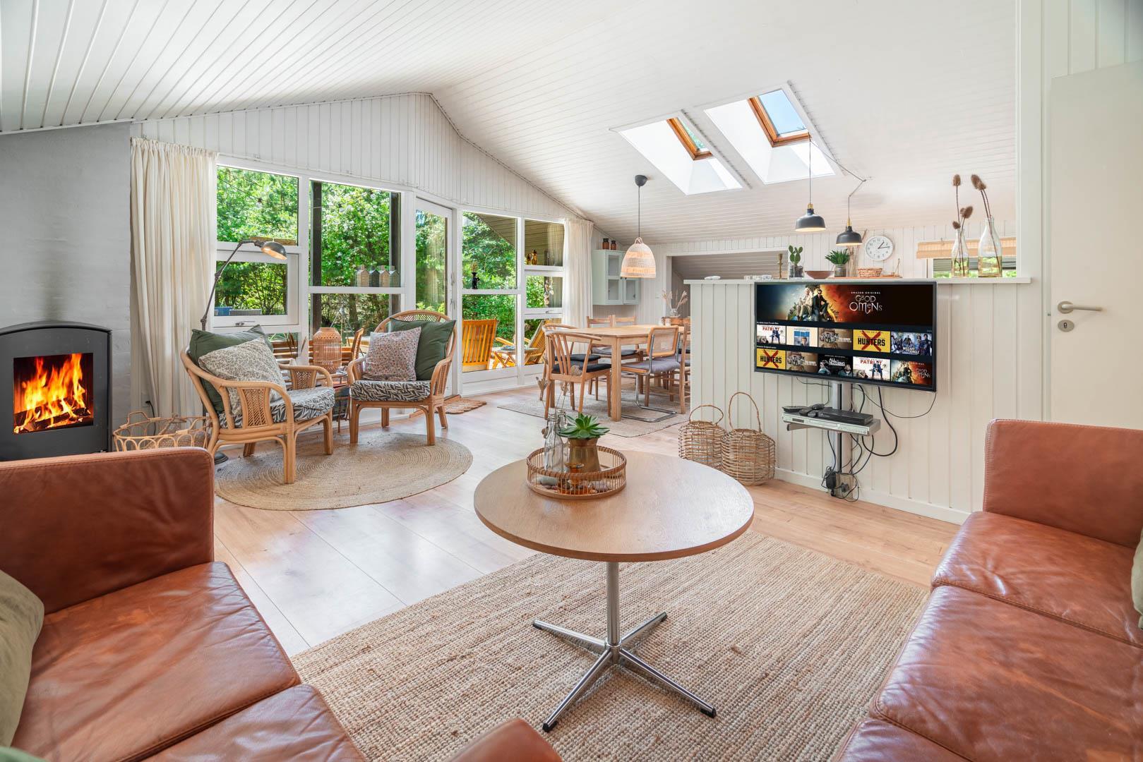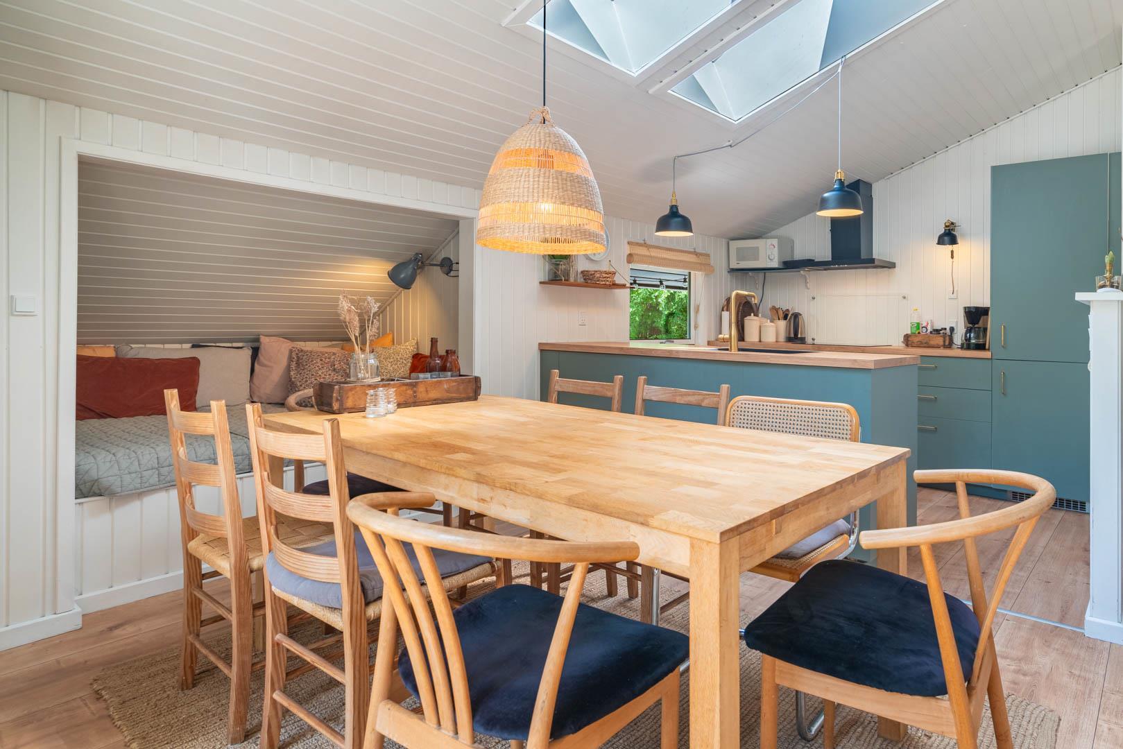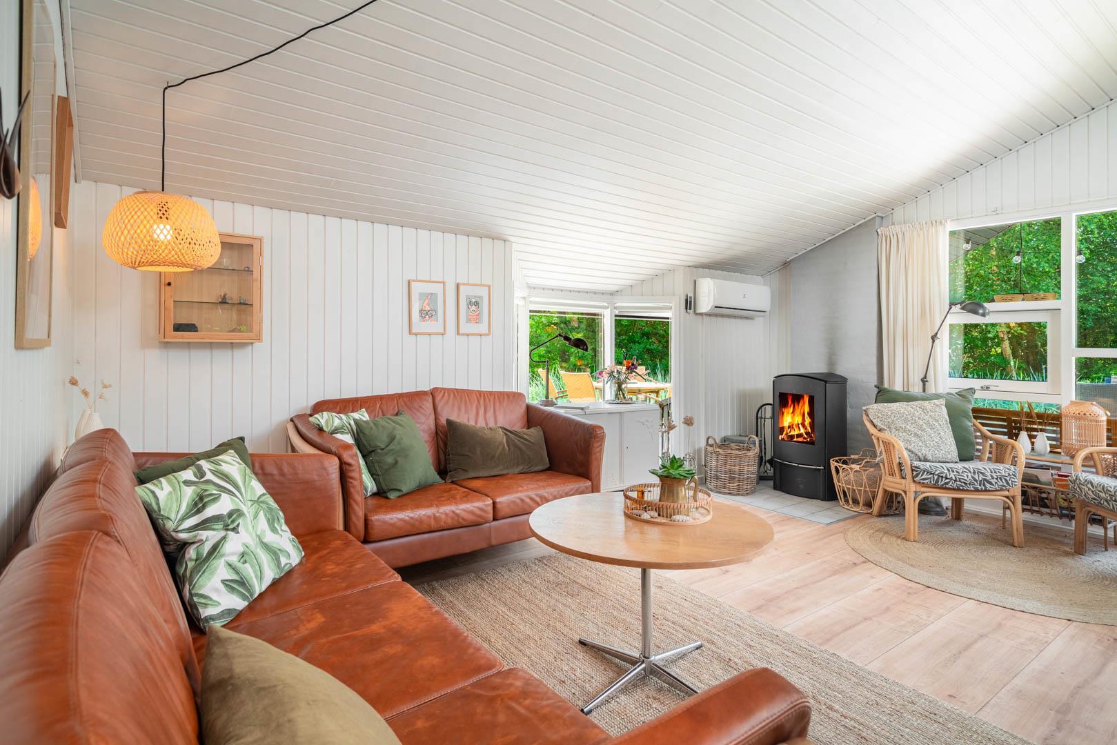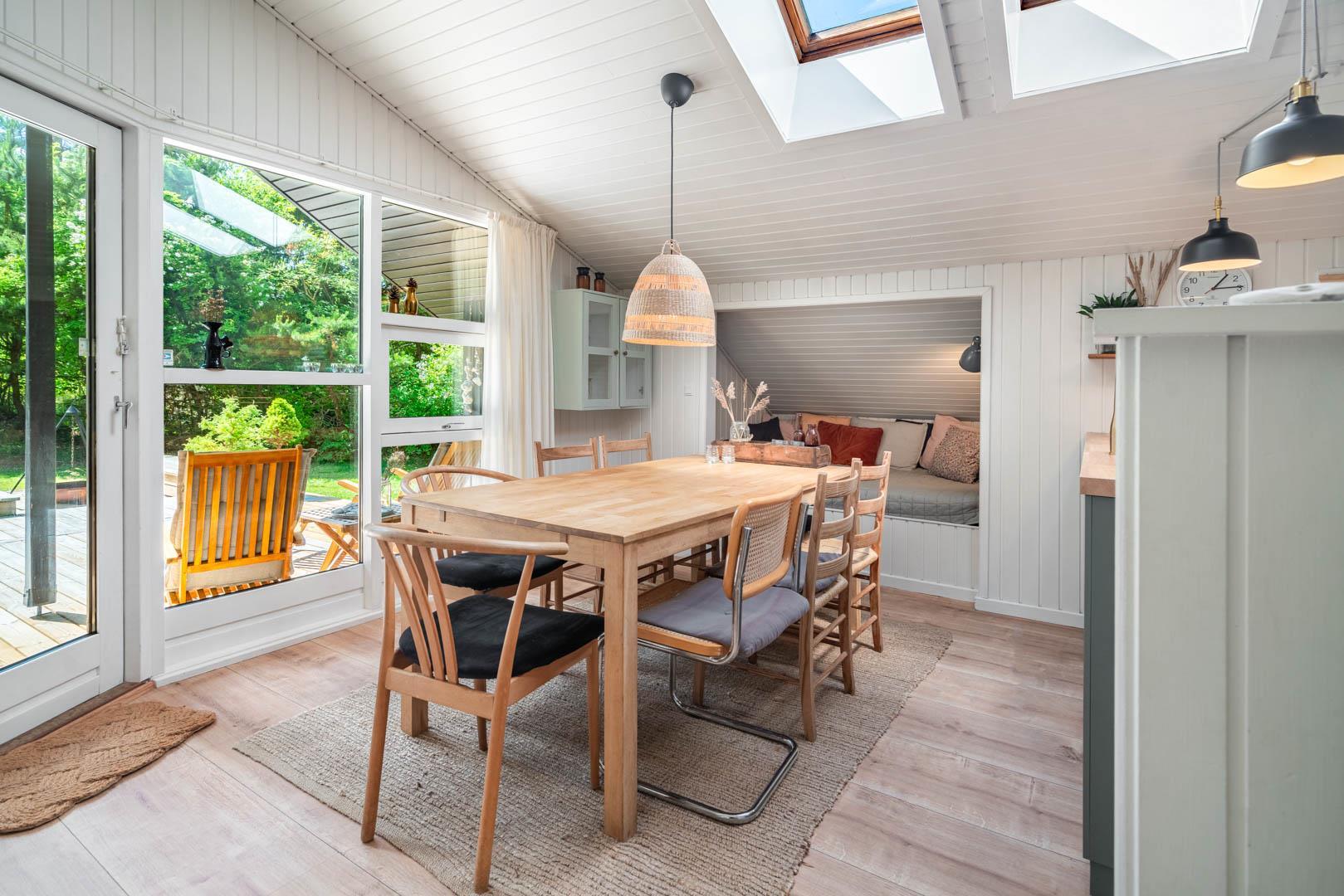 I kan også nyde bålpladsen i sandet med udsyn til den smukke marehalm. Hyggen og atmosfæren breder sig straks ved ankomst til huset. Indendørs er farver afstemte, stilfulde og rolige. Et køkken fra 2021, moderne og funktionelt, med spiseplads, hvor du kan få en lur i alkoven efter et godt måltid. Ovenlysvinduer sørger sammen med store vinduespartier for lys. Stuen med brændeovn og varmepumpe kan varme dig på kolde dage.
