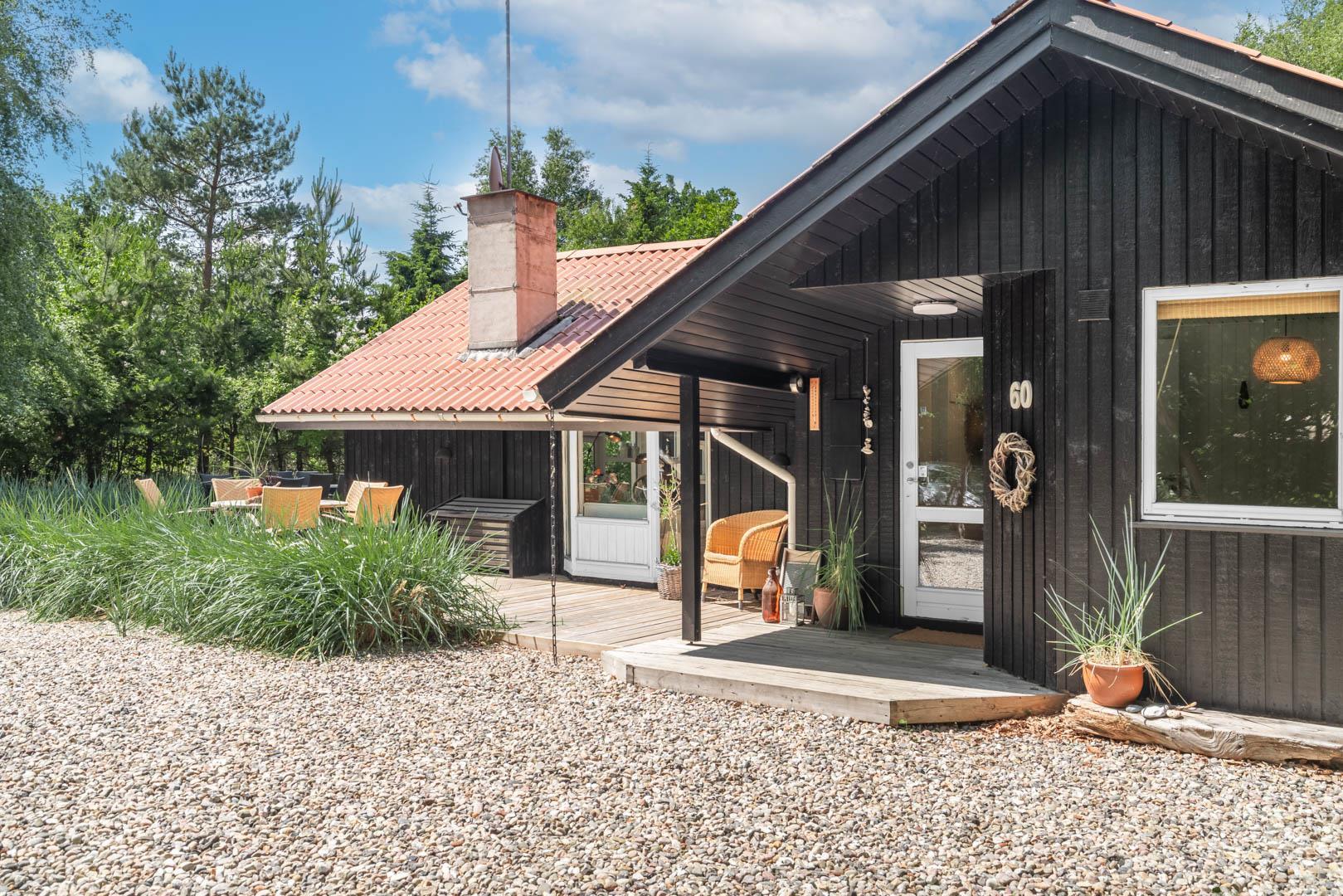 Naturen er helt speciel i Gammelgab, og Gammelgabvej 60 er helt bestemt en ferieoplevelse værd. Huset ligger for enden af en lille vej med direkte adgang til den åbne natur. I er afskærmet fra omverdenen med dejlig beplantning. Her findes intet mindre end 3 terrasser - åbne eller overdækket - alt efter vejr, vind og temperament. Er du til vildmarksbad og udebrus, findes det også her. Eller vil du blot nyde freden og roen med en bog i en hyggekrog i behagelig møblering, er der også mulighed for det.