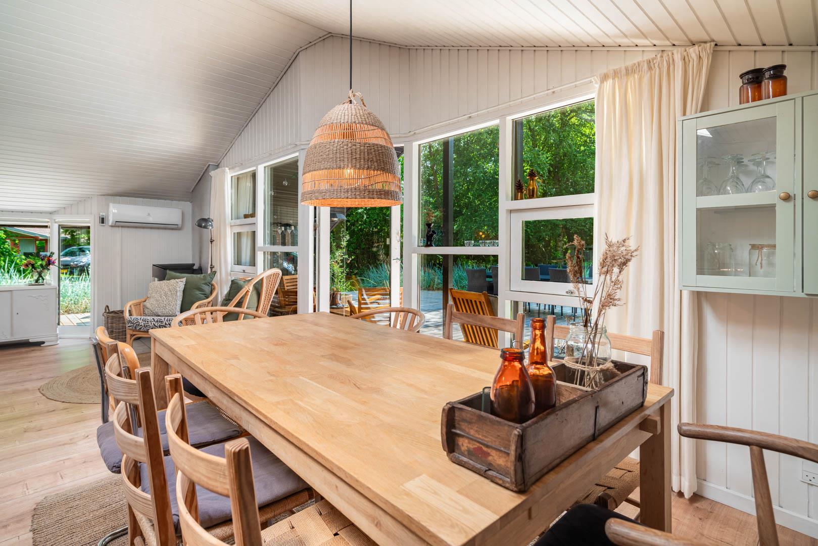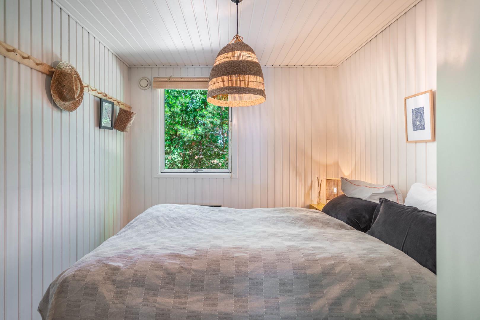 Huset har plads til 6 personer og fordeler sig på 2 soverum med dobbeltseng og 1 soverum med 2 enkeltsenge. Desuden forefindes sauna i badeværelset - ligeledes smagfuldt fra 2021. Hvis du er naturelsker, vil du elske området - tag cyklen og hunden med.