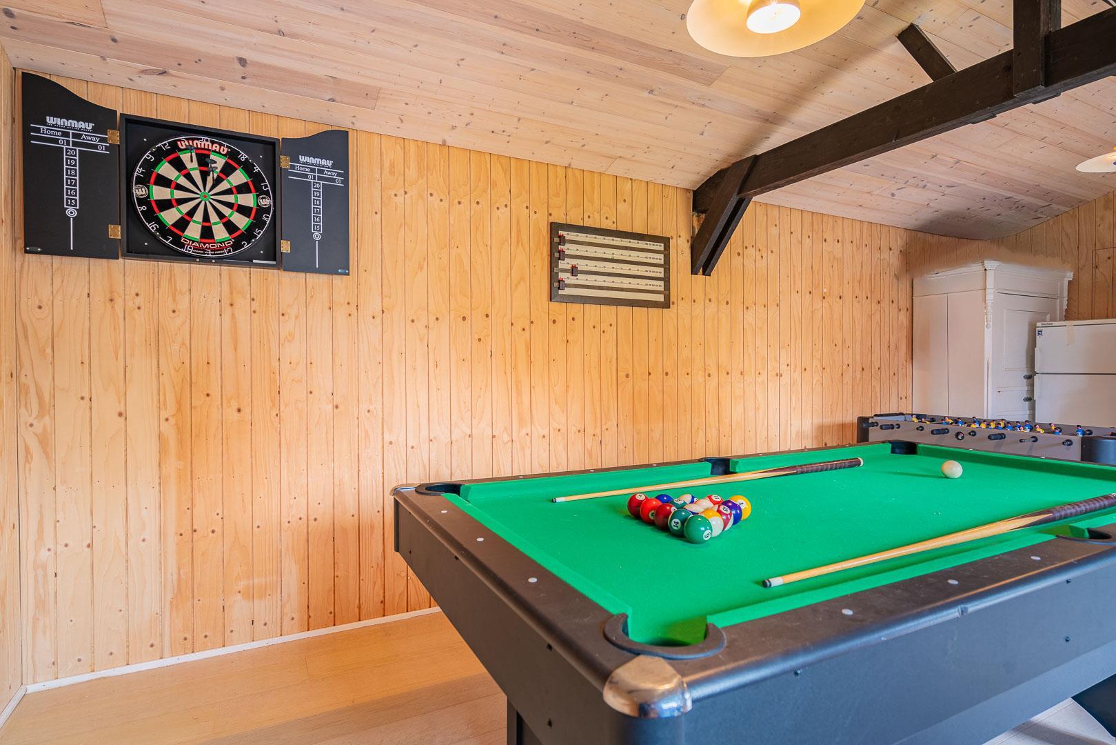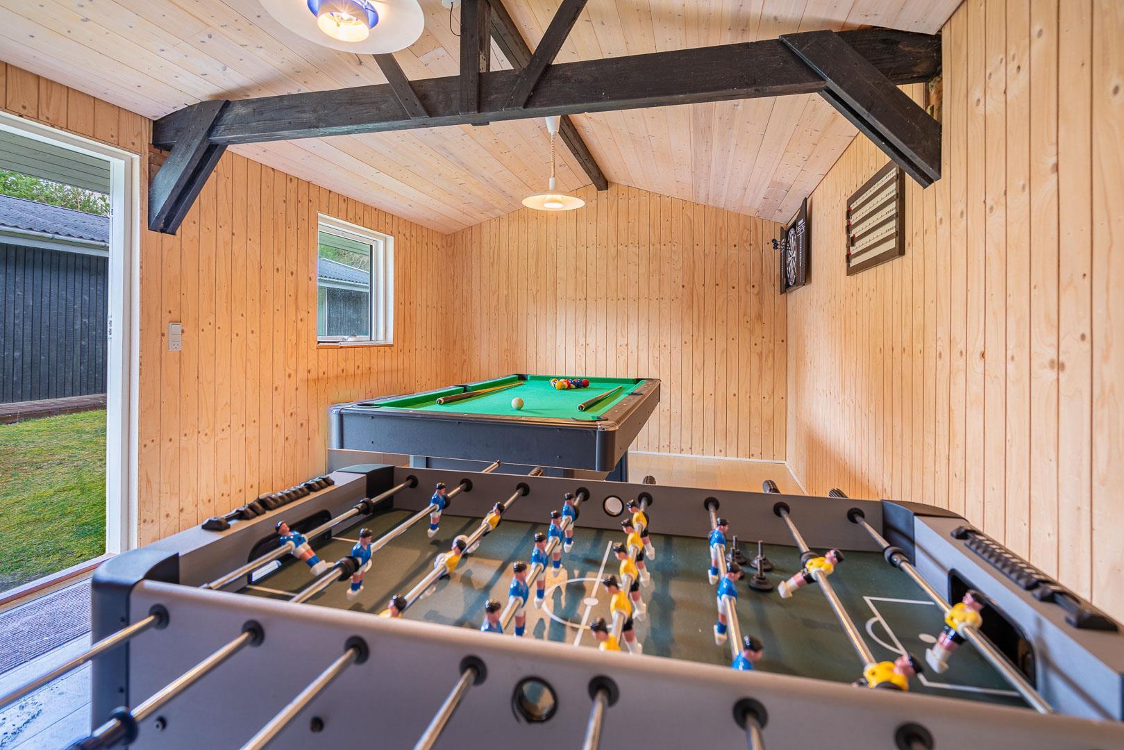 På grunden findes et isoleret anneks med et væld af aktiviteter (dog uden varme) – dart, bordfodbold, bordtennis og billard – noget for enhver smag. For den, der ønsker ro og privatliv, er der et ekstra anneks med opvarmning og en dobbeltseng, som er ideelt til en god nats søvn.