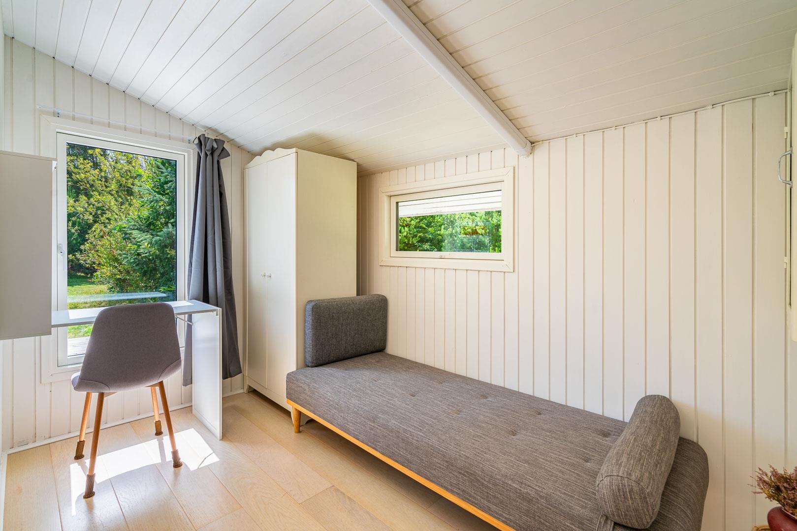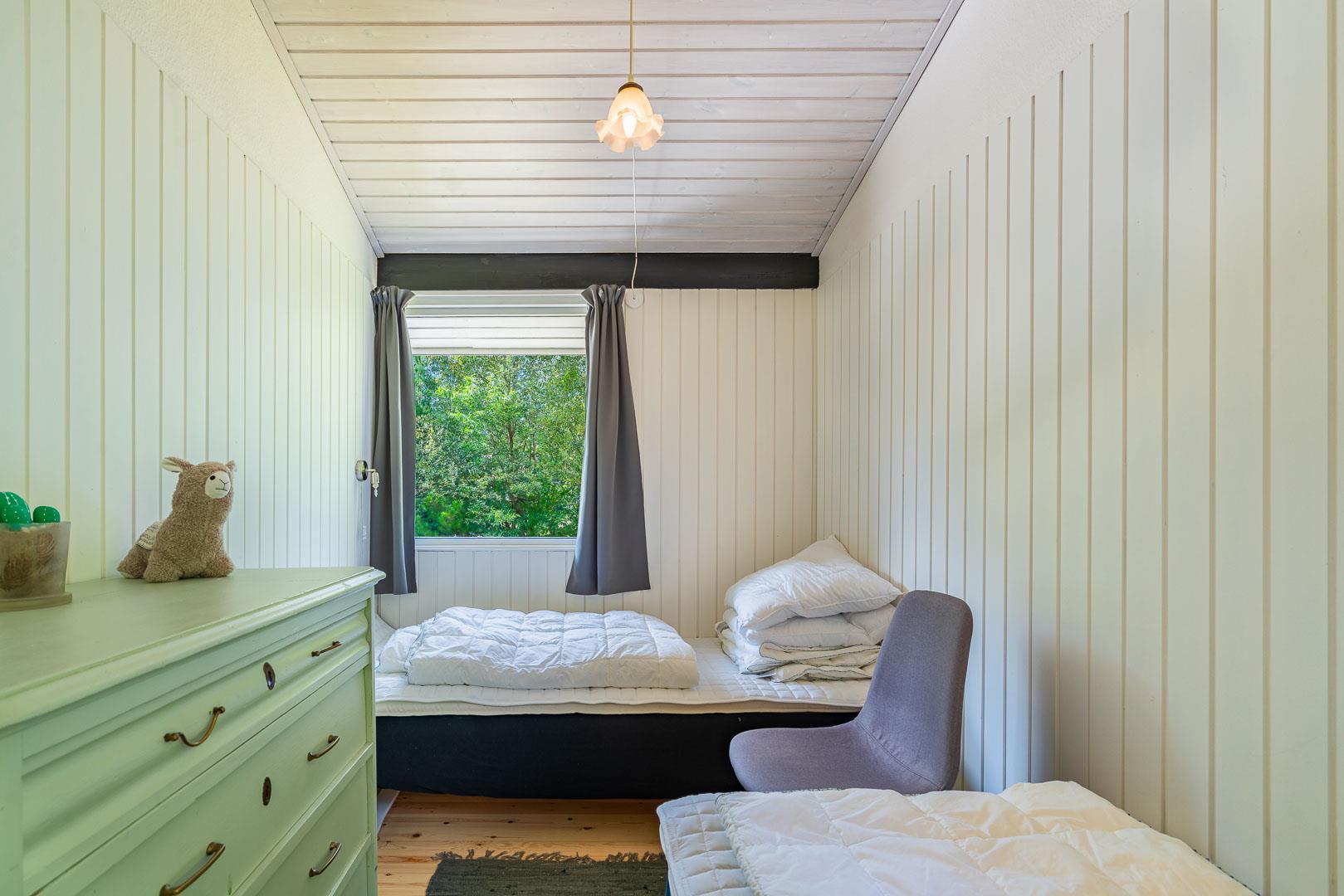Feriehuset rummer to dejlige soveværelser – et med en komfortabel dobbeltseng og et med to enkeltsenge. Derudover finder du et hyggeligt ekstra værelse, der minder om en alkove. Her kan du lade dagslyset strømme ind, mens du slapper af på en skøn daybed.