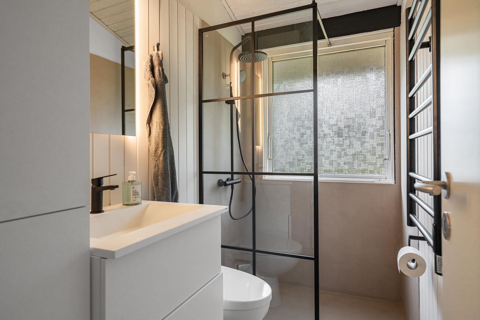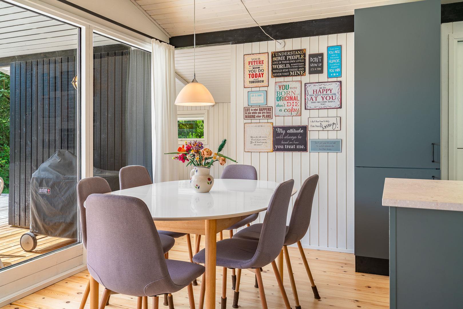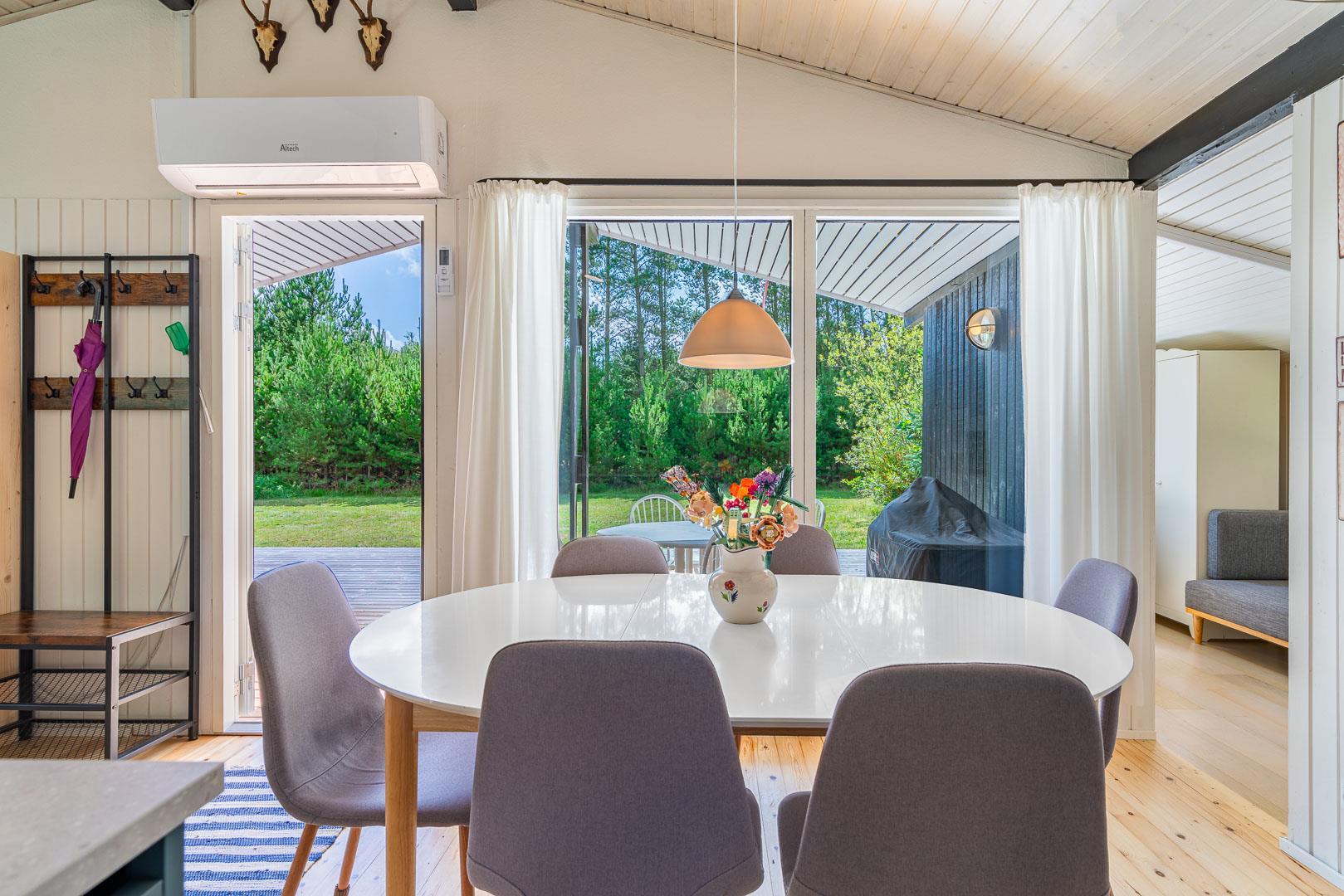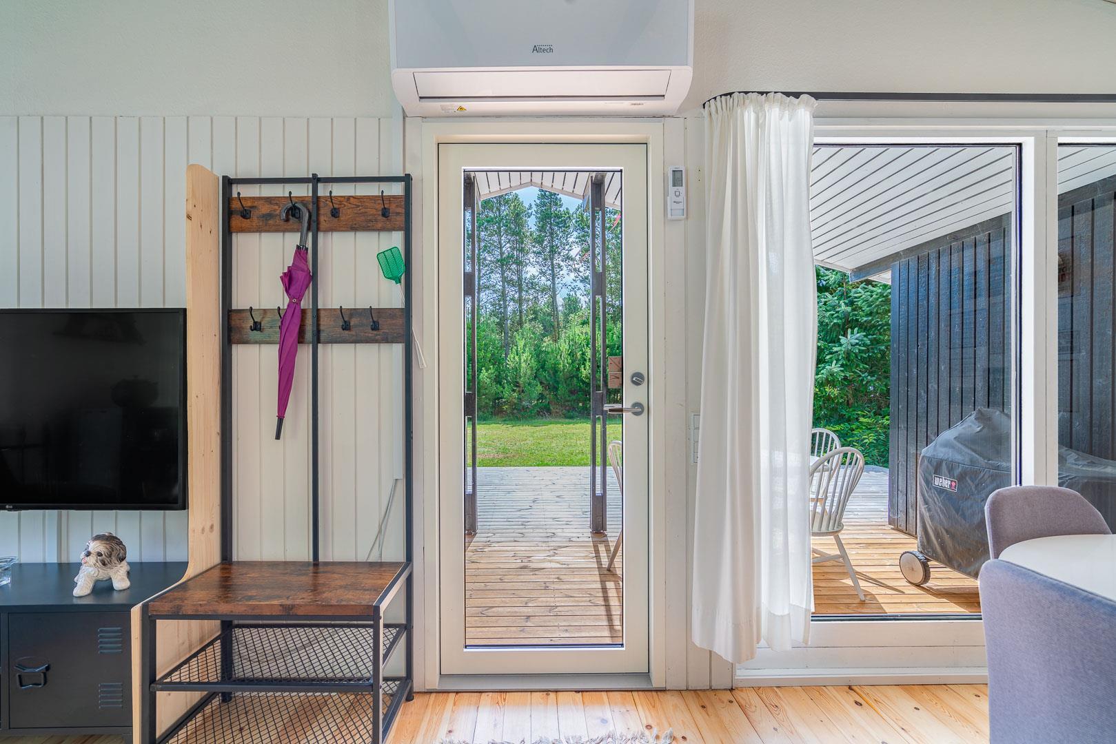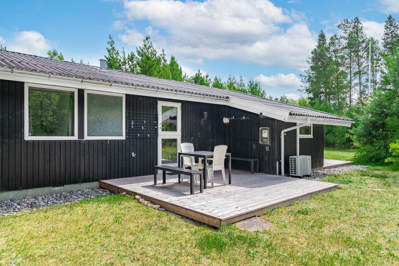 Sommerhuset byder på flere terrasser og hyggelige kroge, der inviterer til afslapning i solen eller under den overdækkede terrasse. På grunden finder du også et bålfad, der skaber den perfekte ramme for aftener med snobrød, ristede skumfiduser og nærvær omkring flammerne.