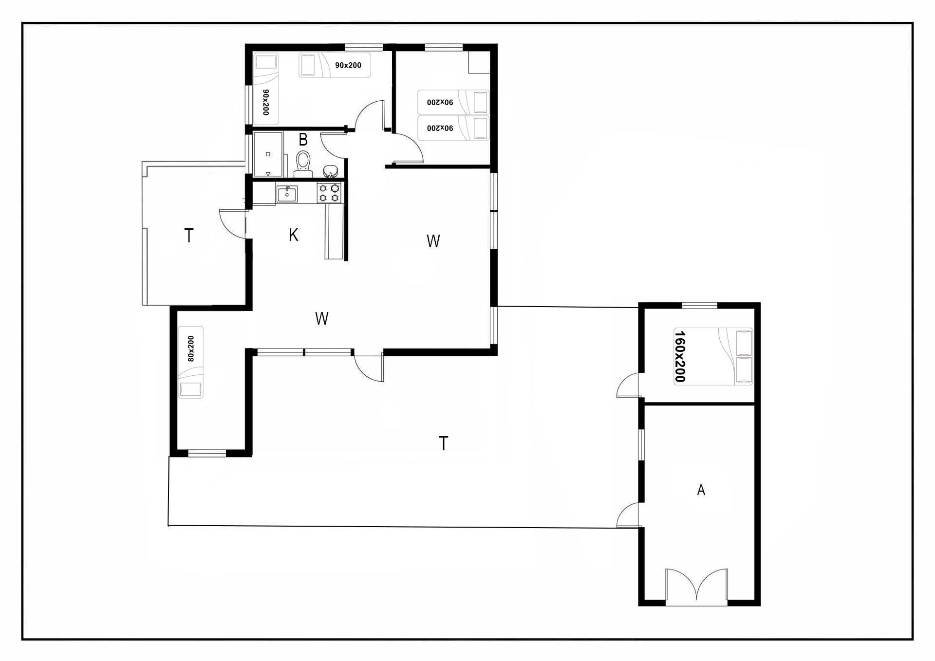 Sengestørrelse: 1 dobbeltseng med 2 madrasser 90 x 200 cm + 1 dobbeltseng 160 x 200 cm + 2 enkeltsenge 90 x 200 cm + 1 enkeltsenge 80 x 200 cm.