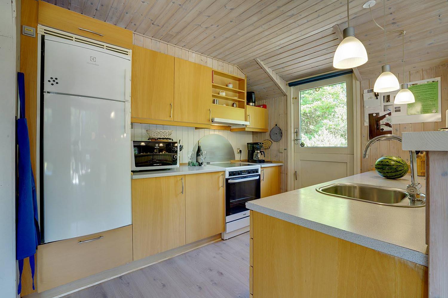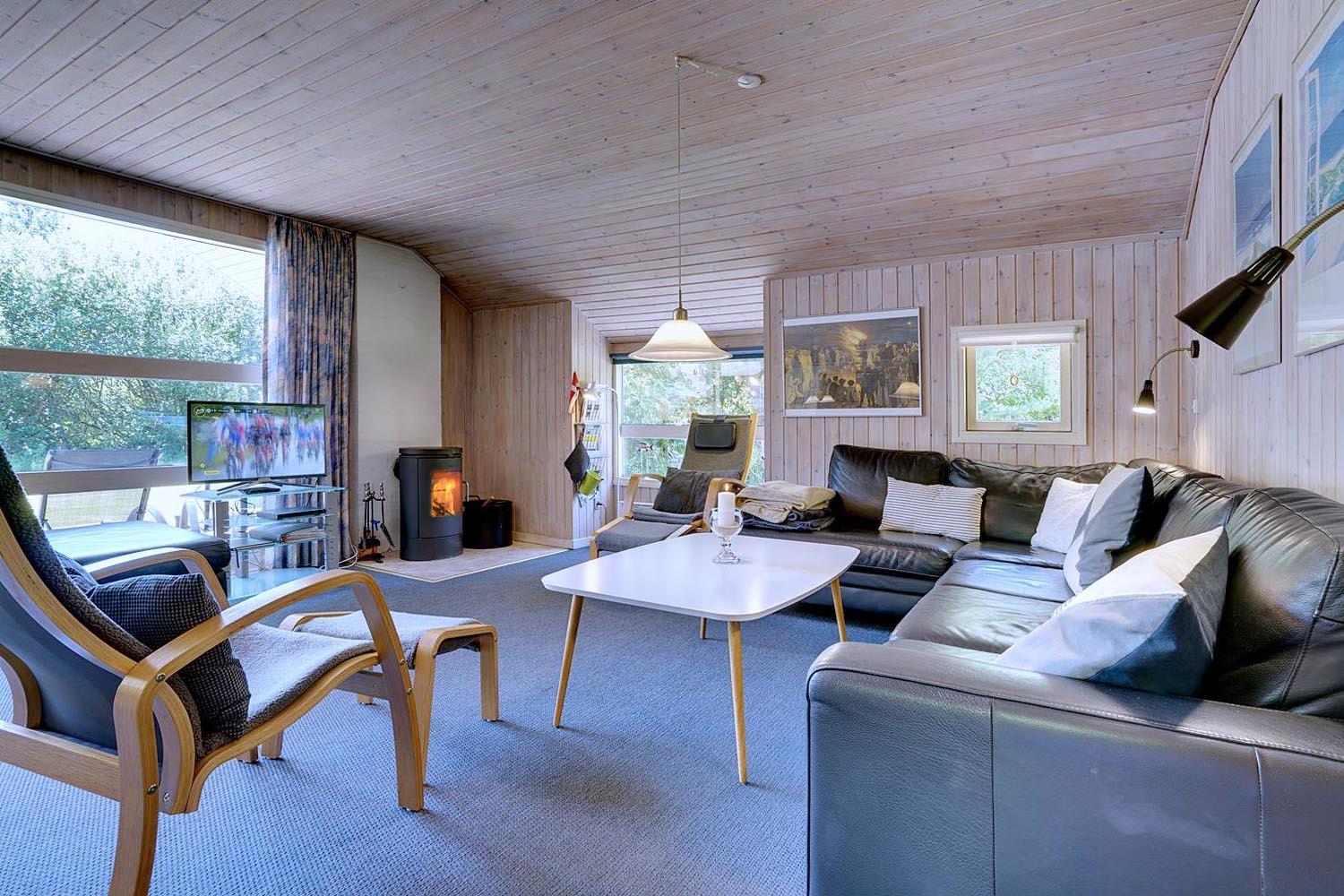 På dejlig naturgrund i attraktivt sommerhusområde i Houstrup tilbydes flot og velholdt feriehus. Huset har 3 gode soverum + alkove i stuen. Der er endvidere badeværelse med sauna samt veludstyret køkken med opvaskemaskine i åben forbindelse til hyggelig stue med brændeovn. Huset har dejlig morgen terrasse samt stor, delvis overdækket sydvendt terrasse. Husdyr må ikke medtages og ligeledes er rygning ikke tilladt. Der er WIFI i huset.