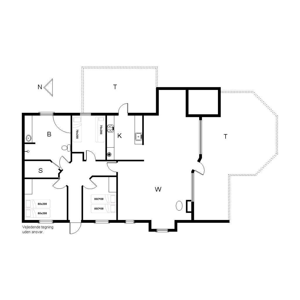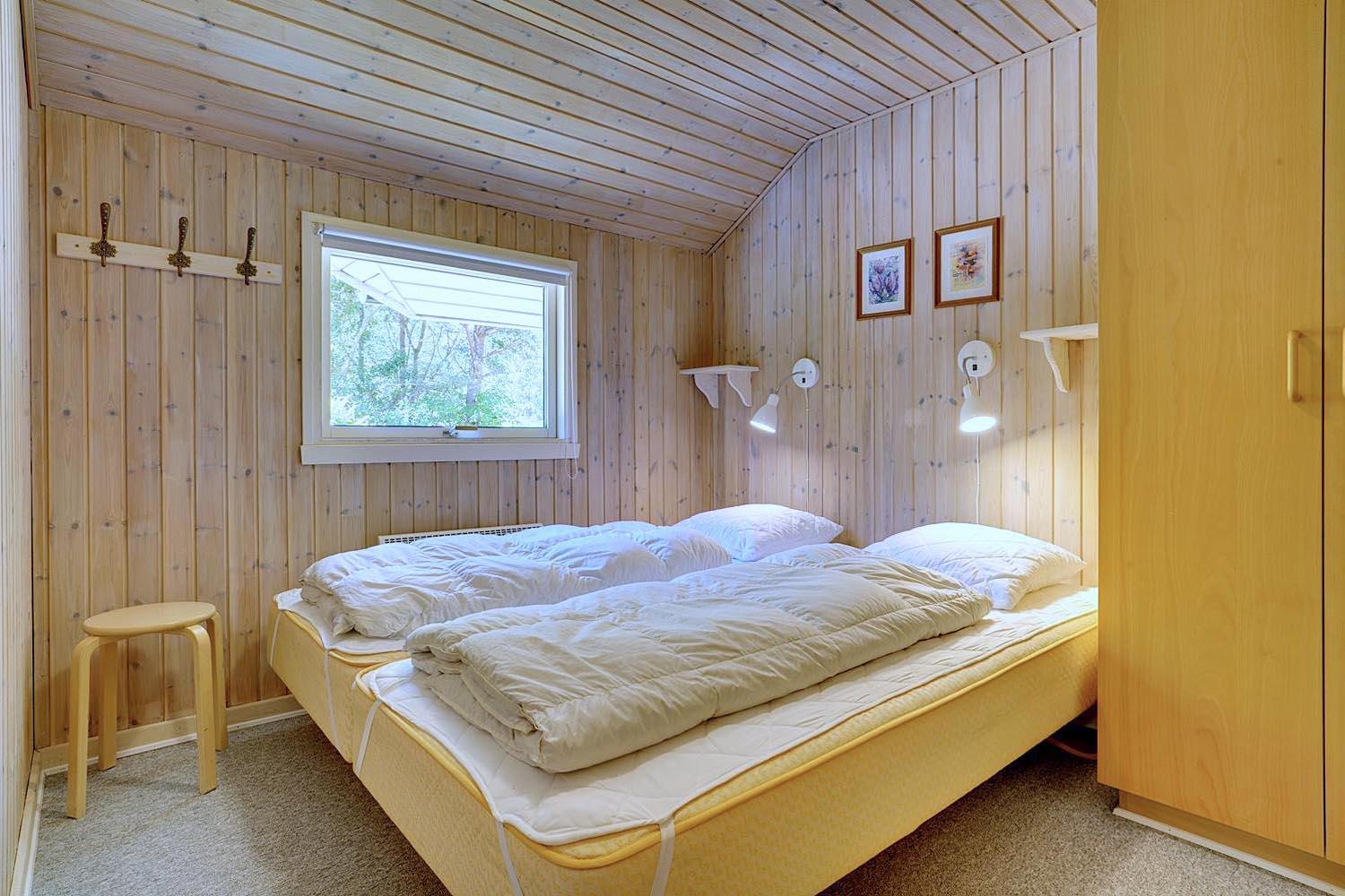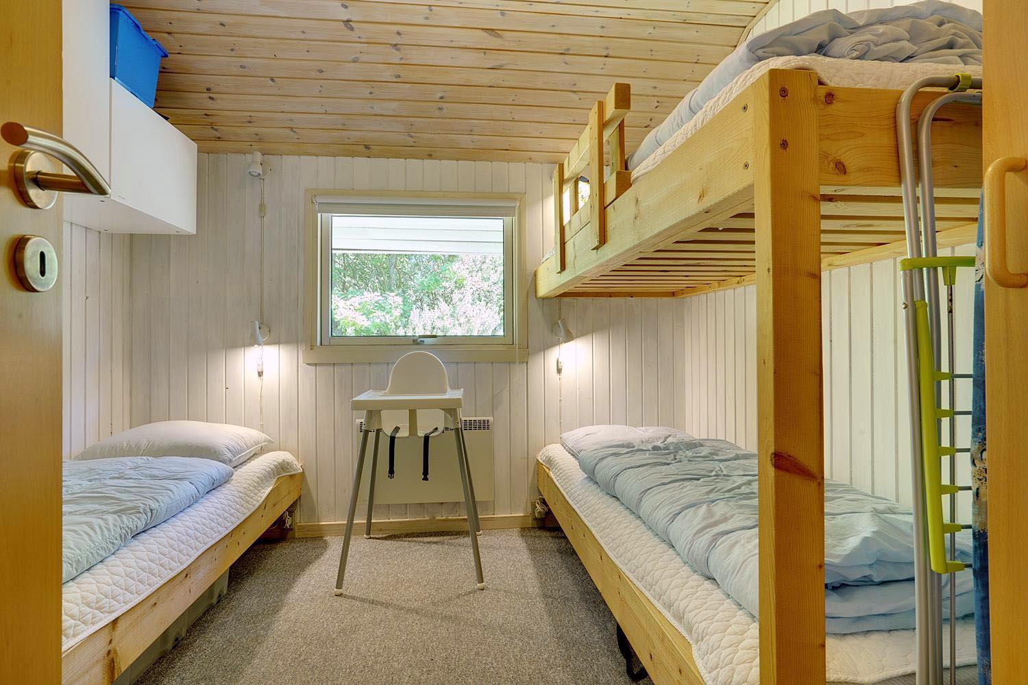 Sengestørrelse: 2 dobbeltsenge med 2 madrasser 80 x 200 cm + 1 enkeltseng 70 x 200 cm + 1 køjeseng 70 x 200 cm.