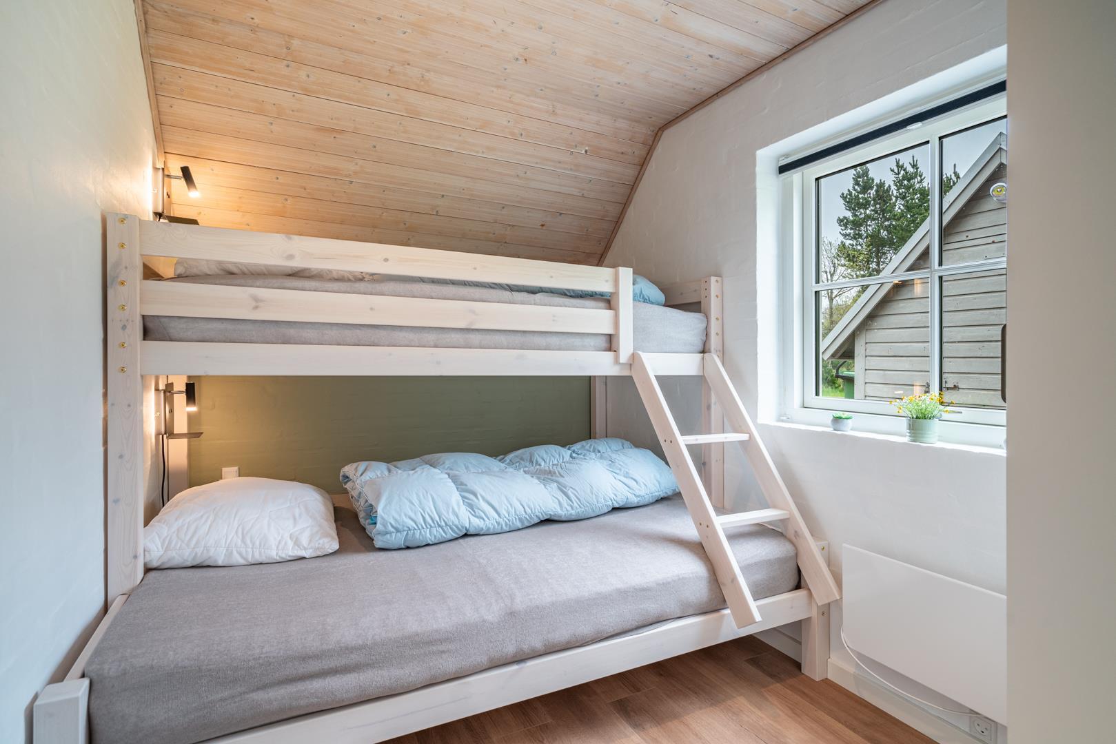 Sengestørrelse: 3 dobbeltsenge 180 x 200 cm + 1 køjeseng, hvor overkøjen er 90 x 200 cm og underkøjen er 140 x 200 cm.