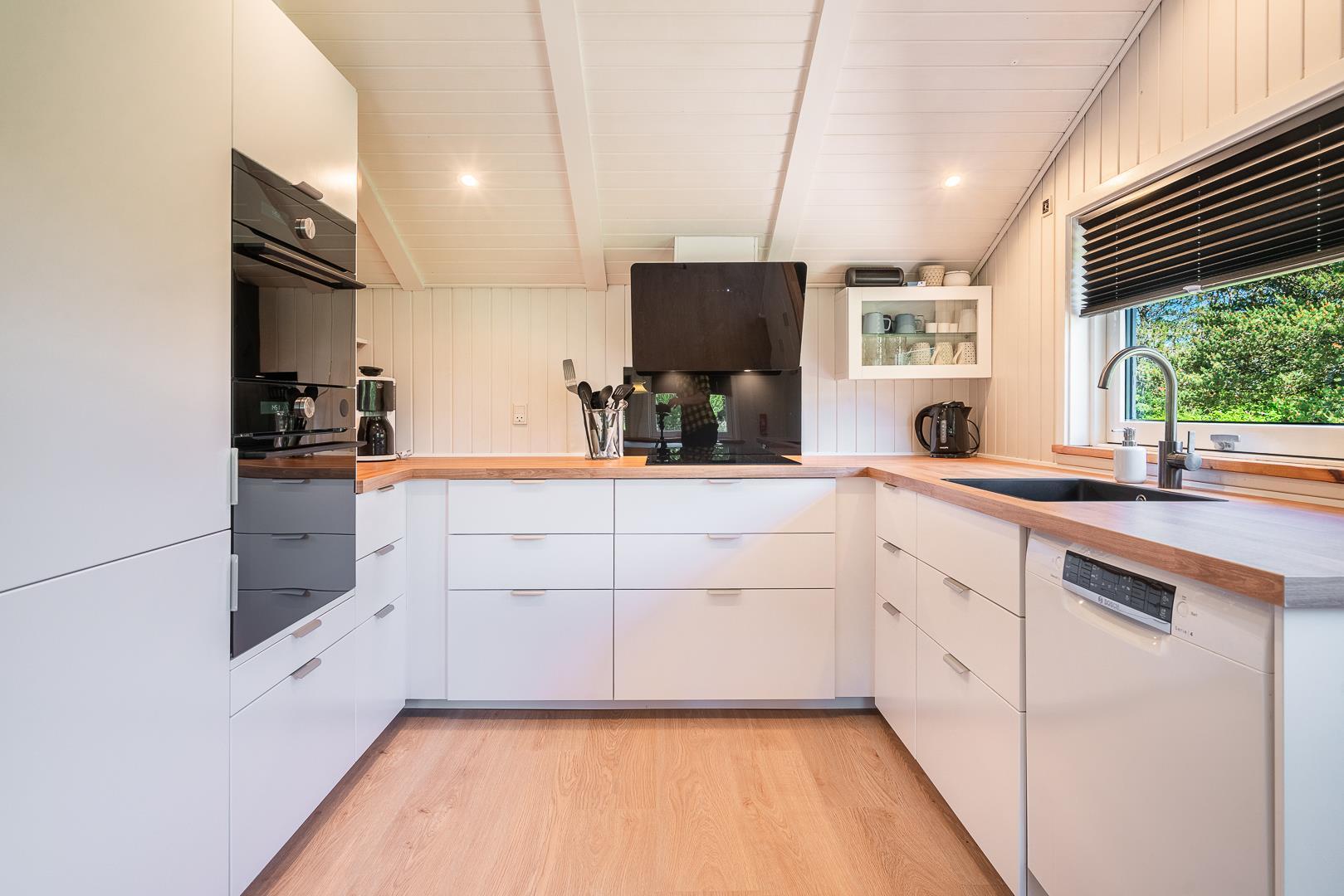 INDHEGNET GRUND - På Gravensbjergvej 5, tilbydes total renoveret feriehus. Fine parkeringsforhold og gennemgang til huset via havelågen til den indhegnede del af grunden. I 2022 er huset fornyet med et moderne køkken, hvor der kan skabes mange dejlige måltider. Huset udstråler harmoni og hygge. En stue med behagelige møbler og et centralt placeret TV, er med til at alle får en god ferie. Badeværelset er ligeledes fra 2022 - med en god størrelse og med adgang til separat rum med vaskemaskine. 3 gode soverum, som sørger for en god nats søvn efter en dag i den smukke natur i Gammelgab.