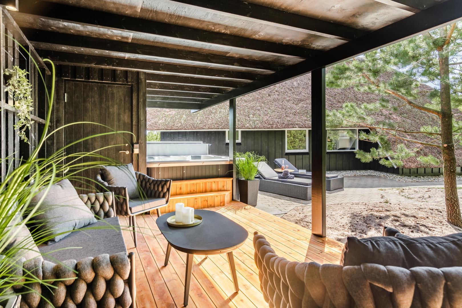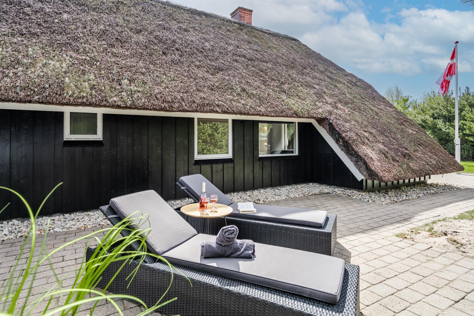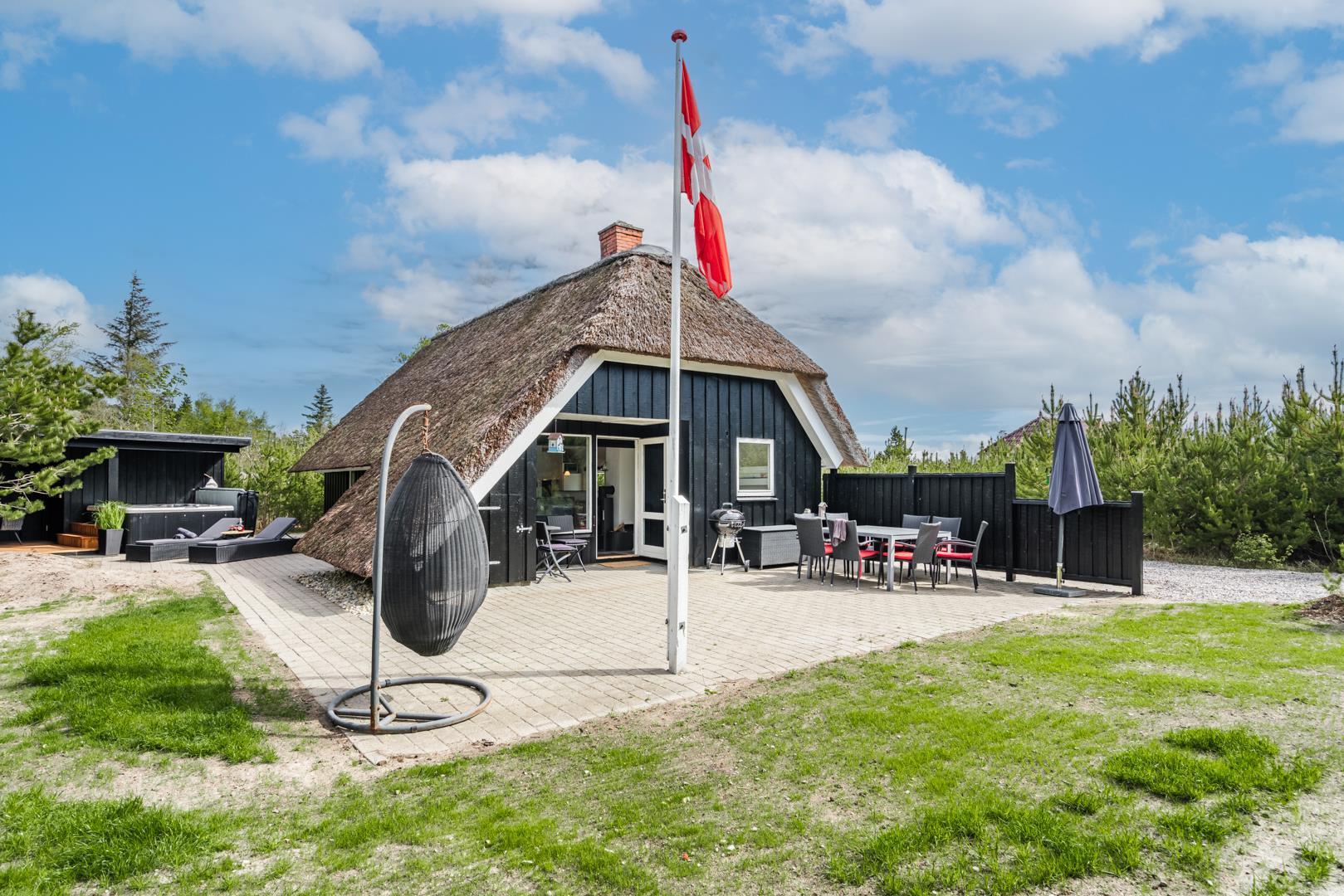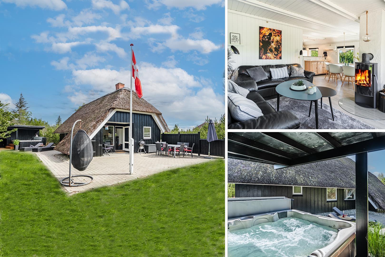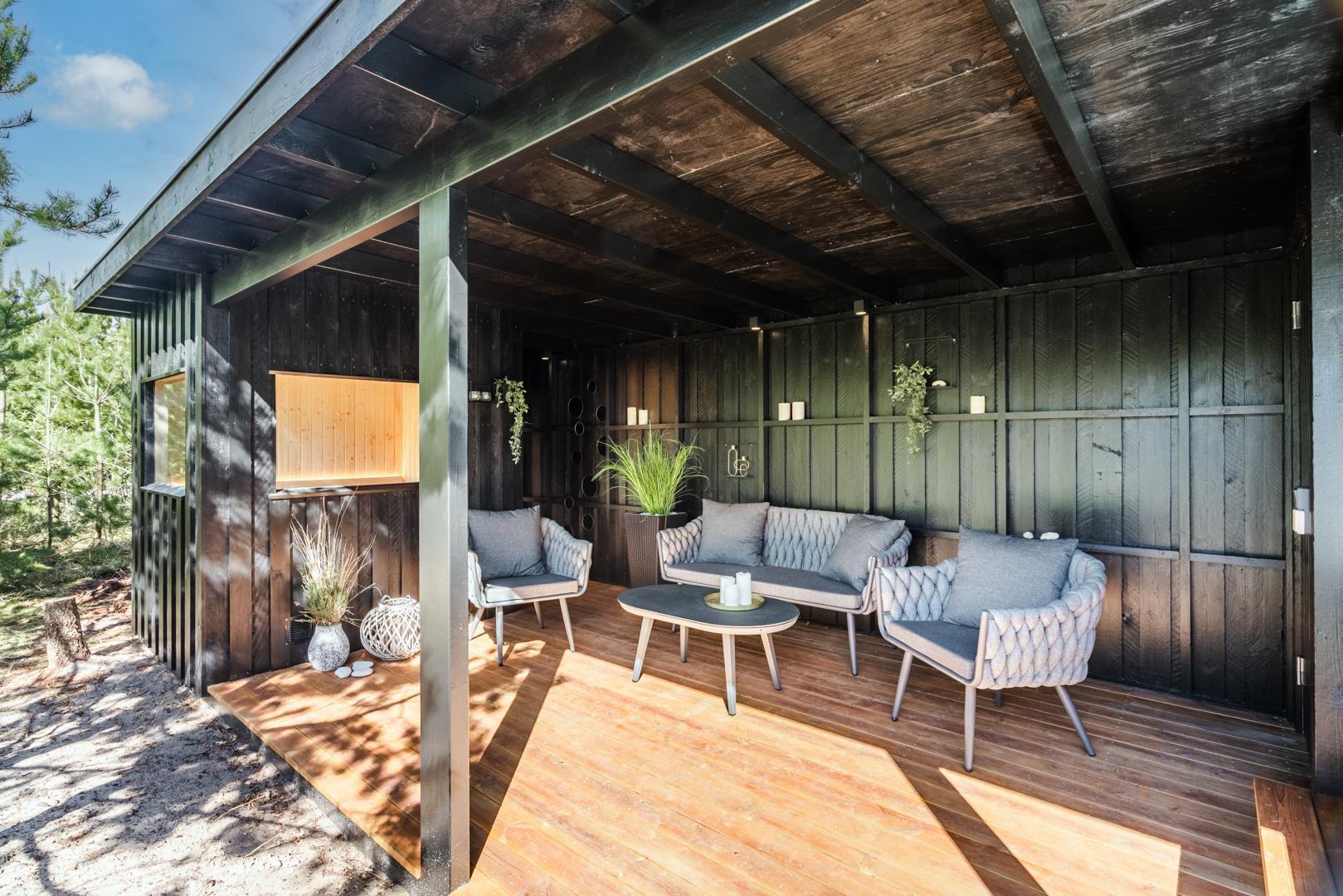 Er du typen der lægger vægt på wellness i naturen mens du holder ferie, så kig på dette charmende hus på Søndervang 100. En stor overdækning med udespa, udesauna og naturligvis udebruser i skøn forening med lounge sæt osv, sørger for at du får fuld forkælelse for pengene. Efter en dag med fuld afslapning, kan du sove i det fri i en shelter.
