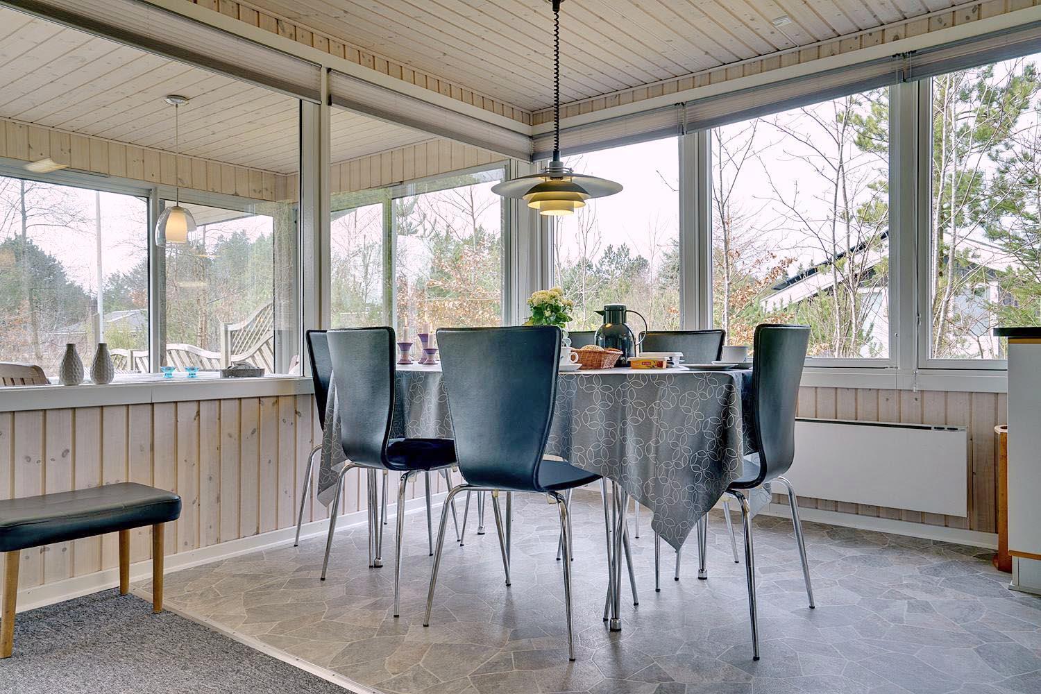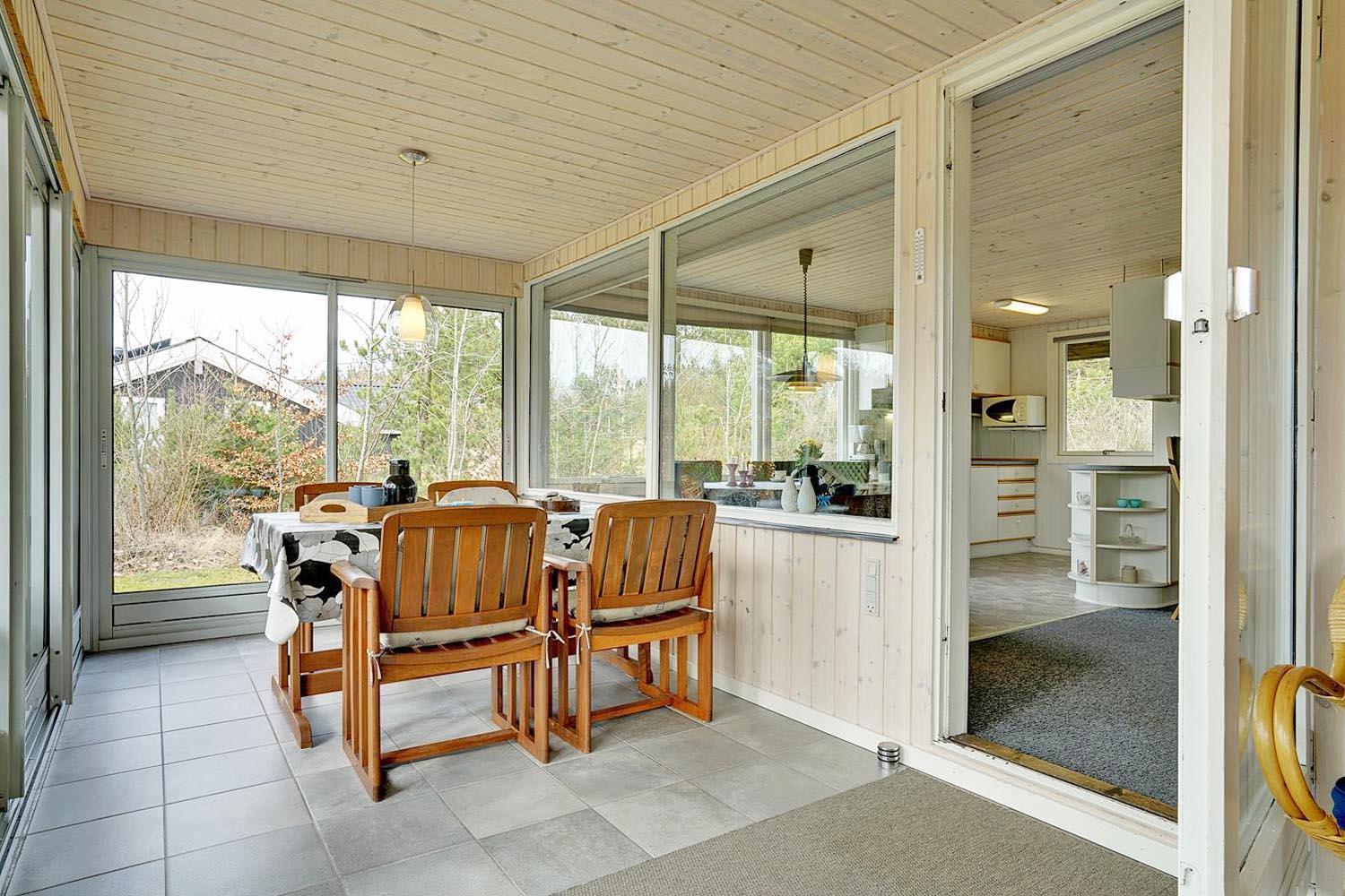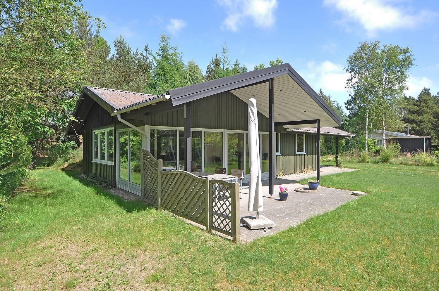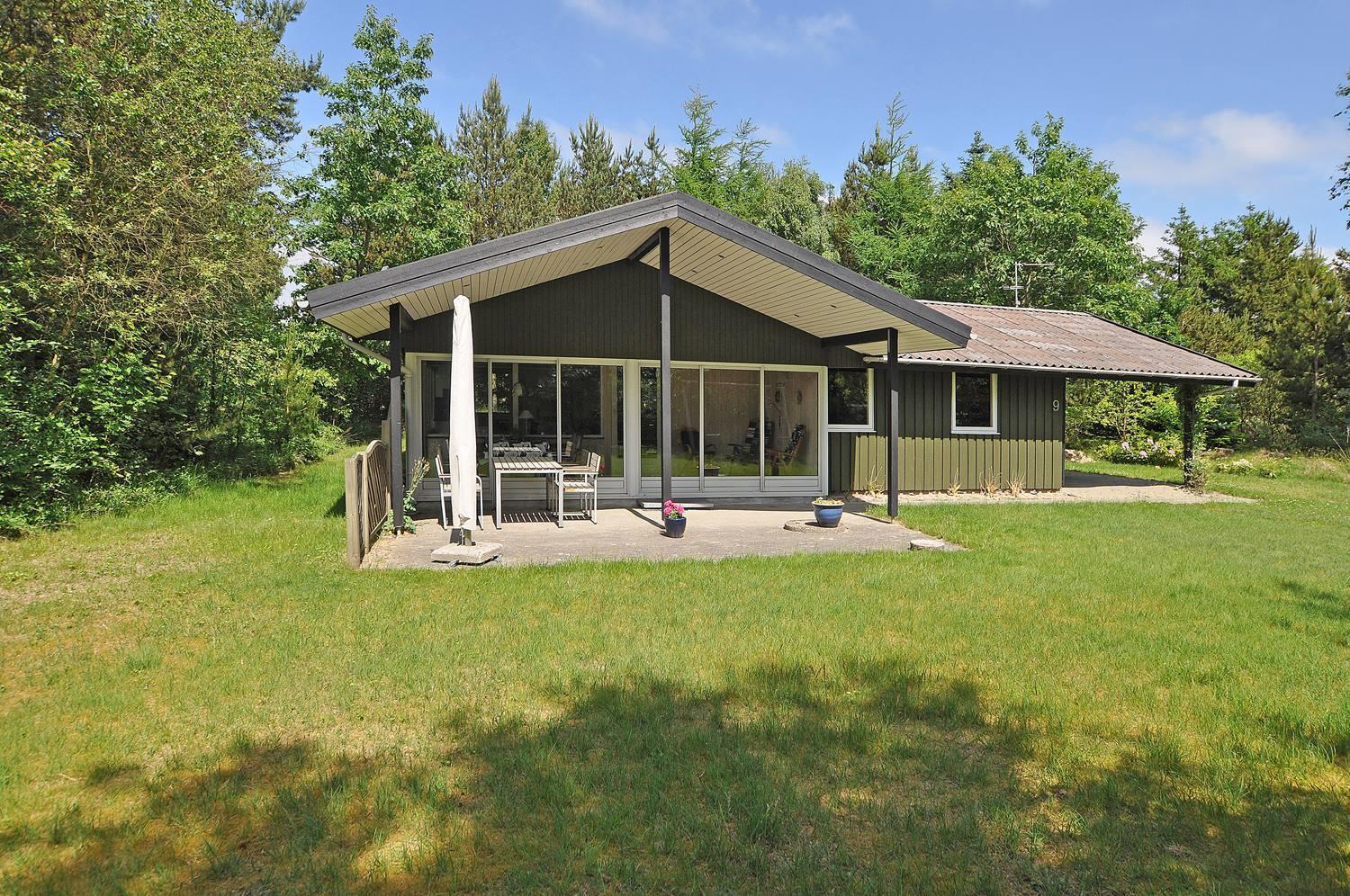 På en læfuld og beplantet naturgrund ligger dette personlige og velholdte feriehus dejligt tilbagetrukket på grunden. I vil på alle årstider nyde den skønne udestue, der med de store vinduespartier og skydedøre, vil få jer til at føle jer i harmoni med naturen. Udestuen er isoleret og har gulvvarme. Huset har 3 soverum, 2 med dobbeltseng og ekstra værelse med 1 enkeltseng.