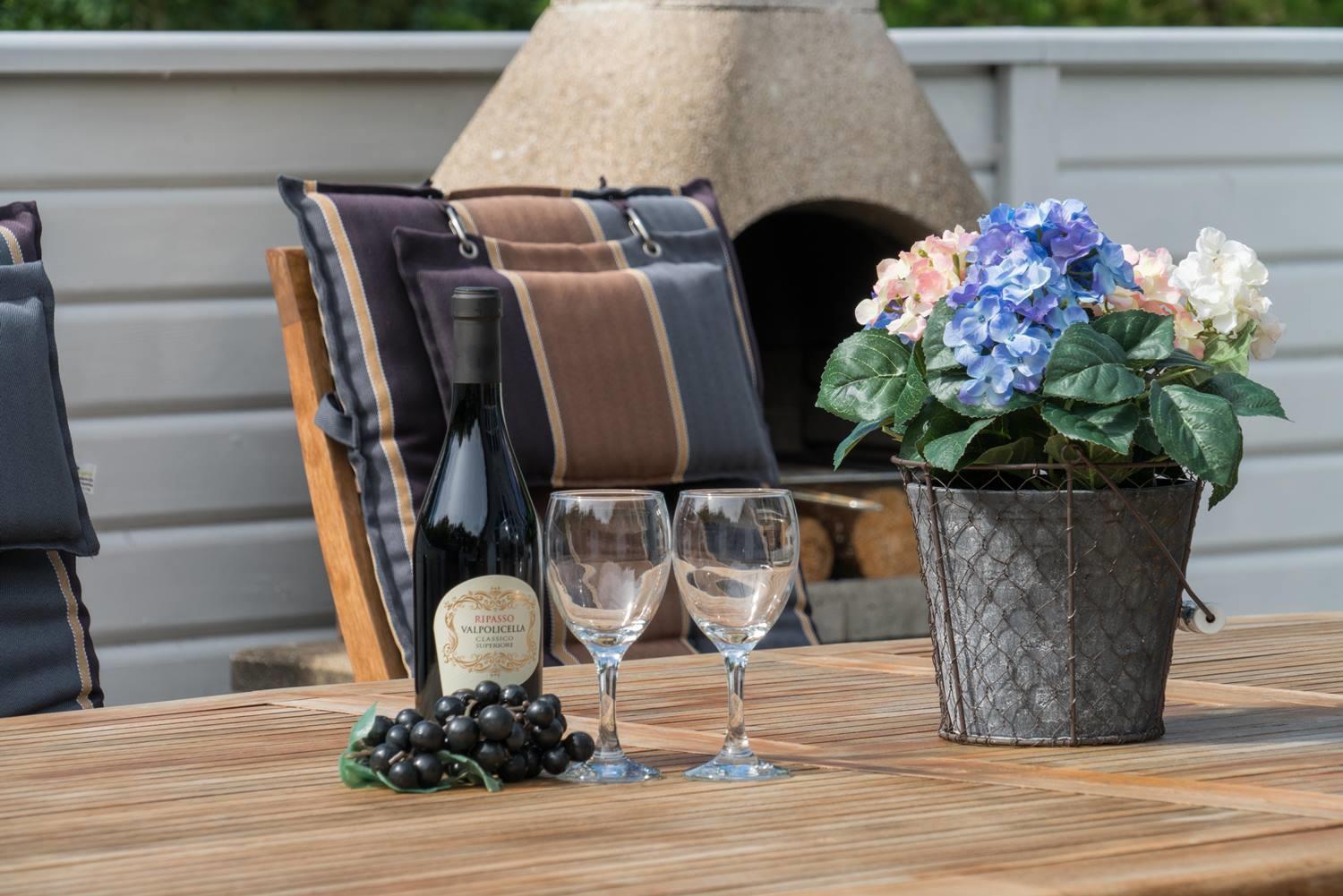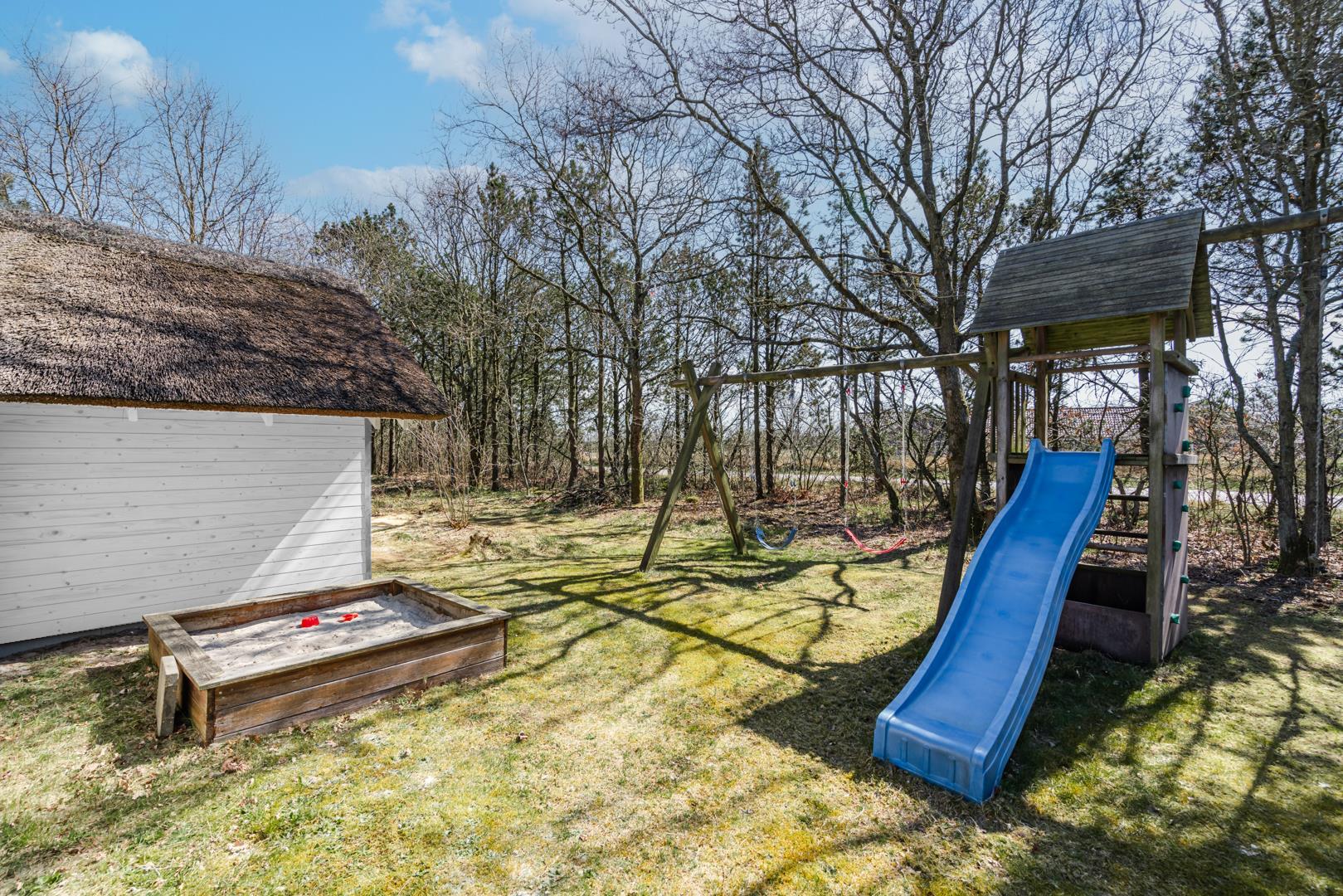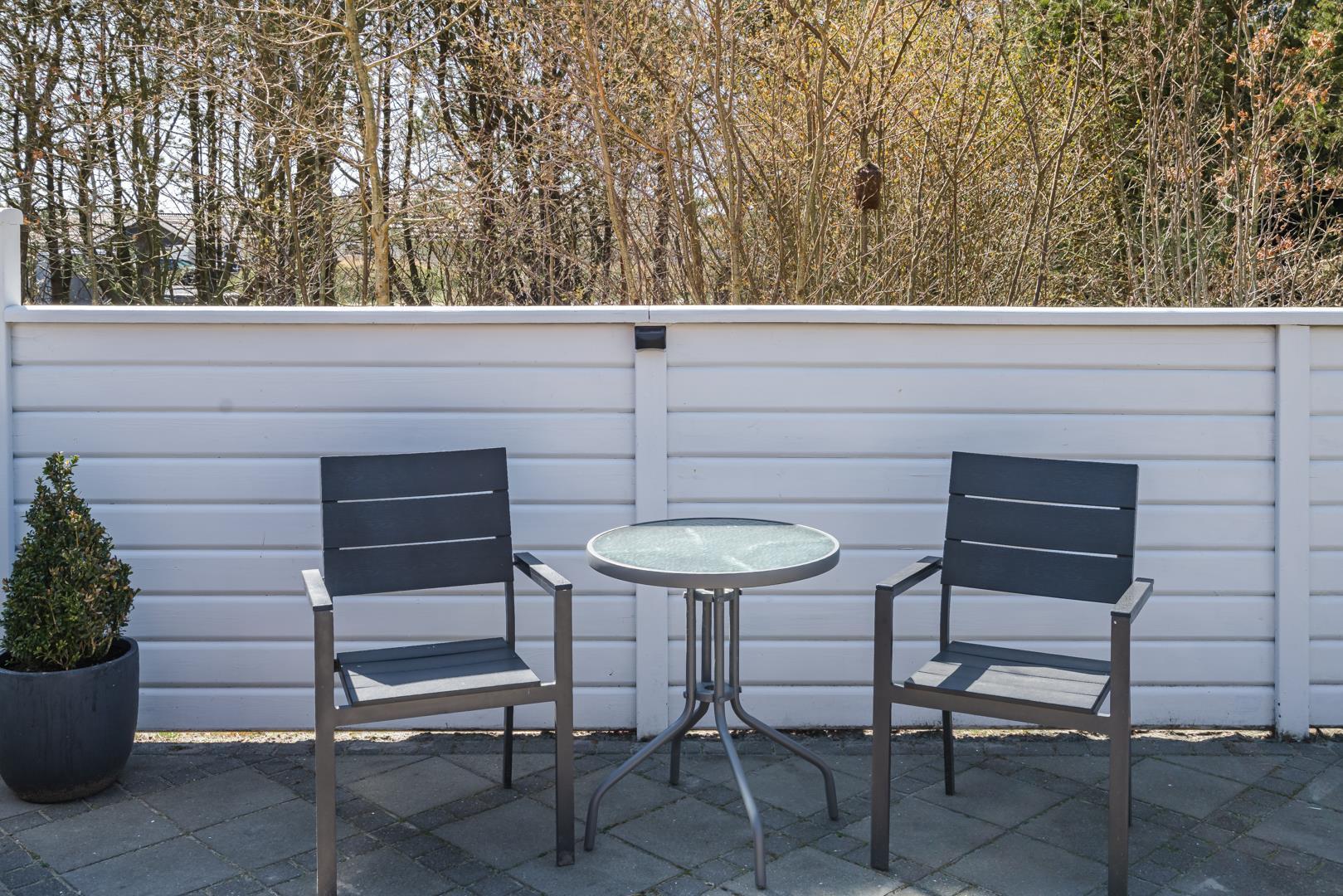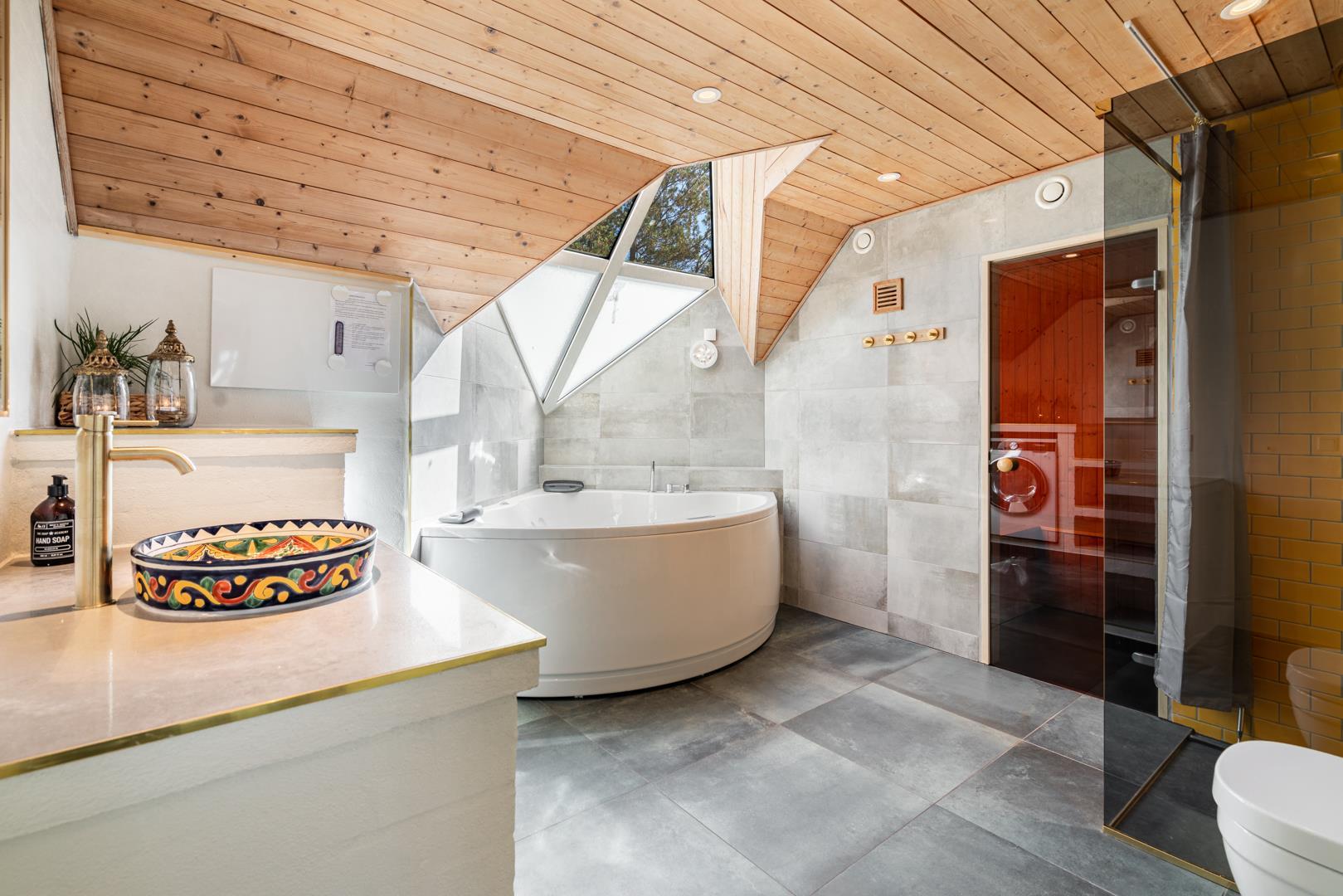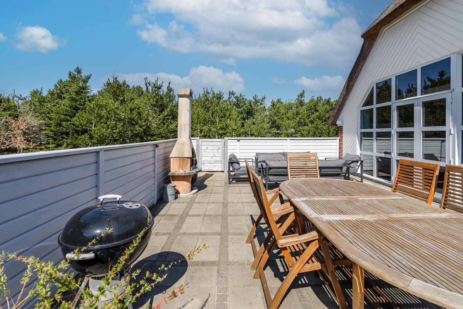 Nyd de dejlige udendørsarealer med en helt lukket flisebelagt terrasse – perfekt til både afslapning og hyggelige måltider under åben himmel. Huset byder desuden på en skøn udendørs spa, hvor du kan læne dig tilbage og nyde roen i de naturskønne omgivelser.
