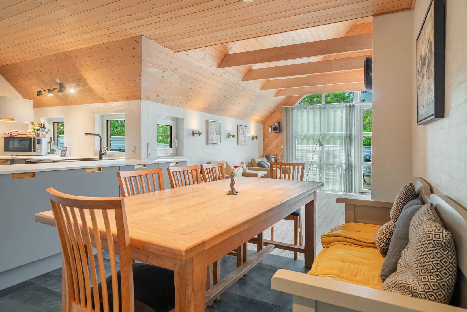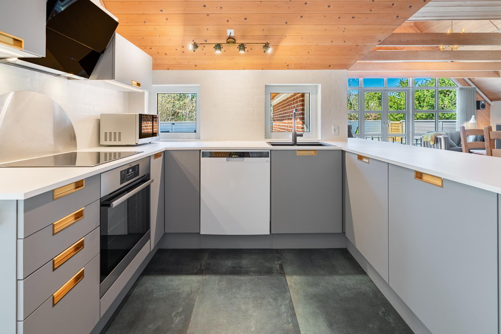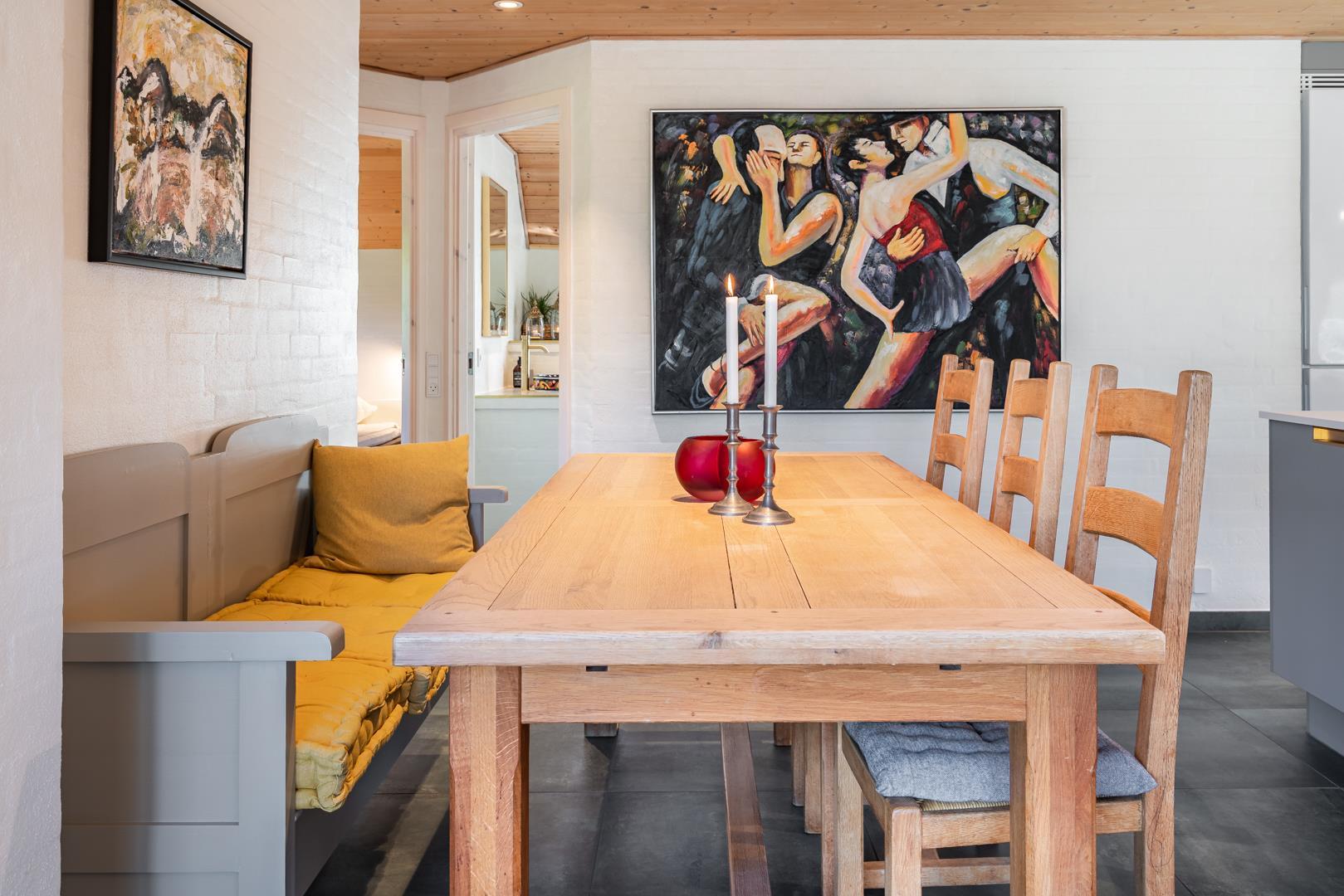 Huset rummer 4 rummelige soveværelser og 2 moderne badeværelser – alle nænsomt renoveret i 2022. Køkkenet er veludstyret med alt, hvad du skal bruge til at tilberede lækre feriemåltider. Den funktionelle indretning gør det nemt for hele familien at være sammen – både i køkkenet og opholdsstuen.
