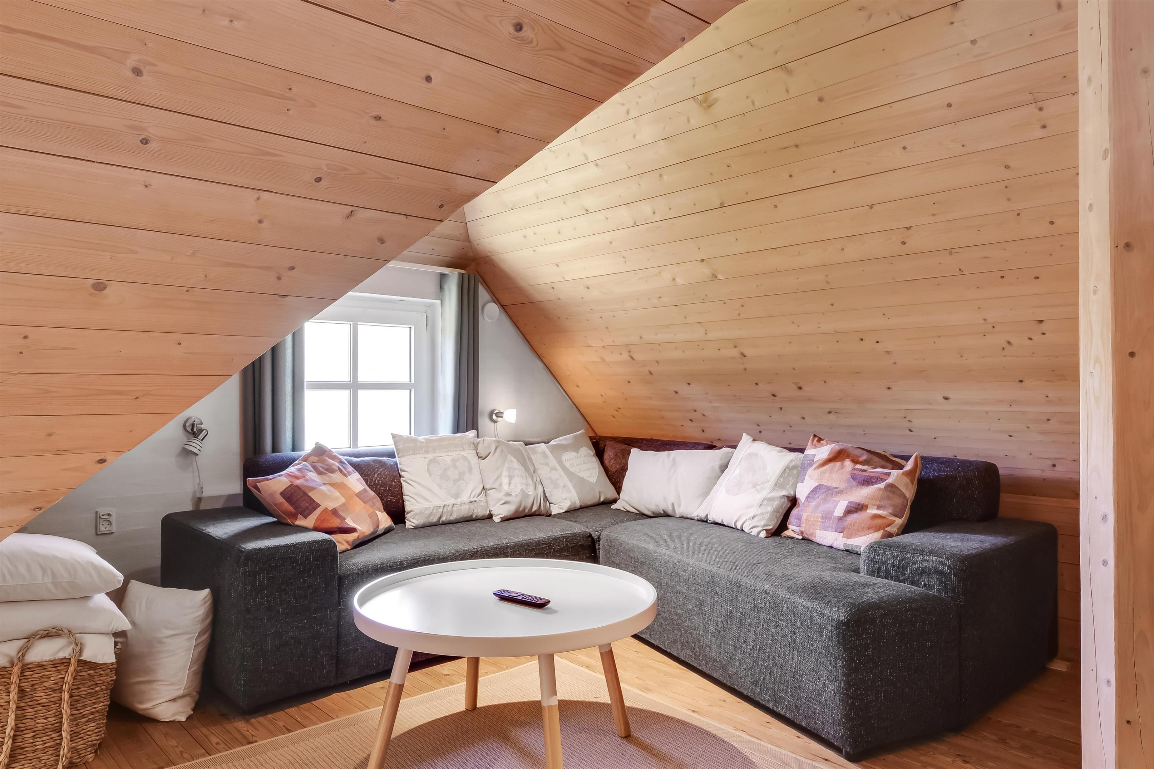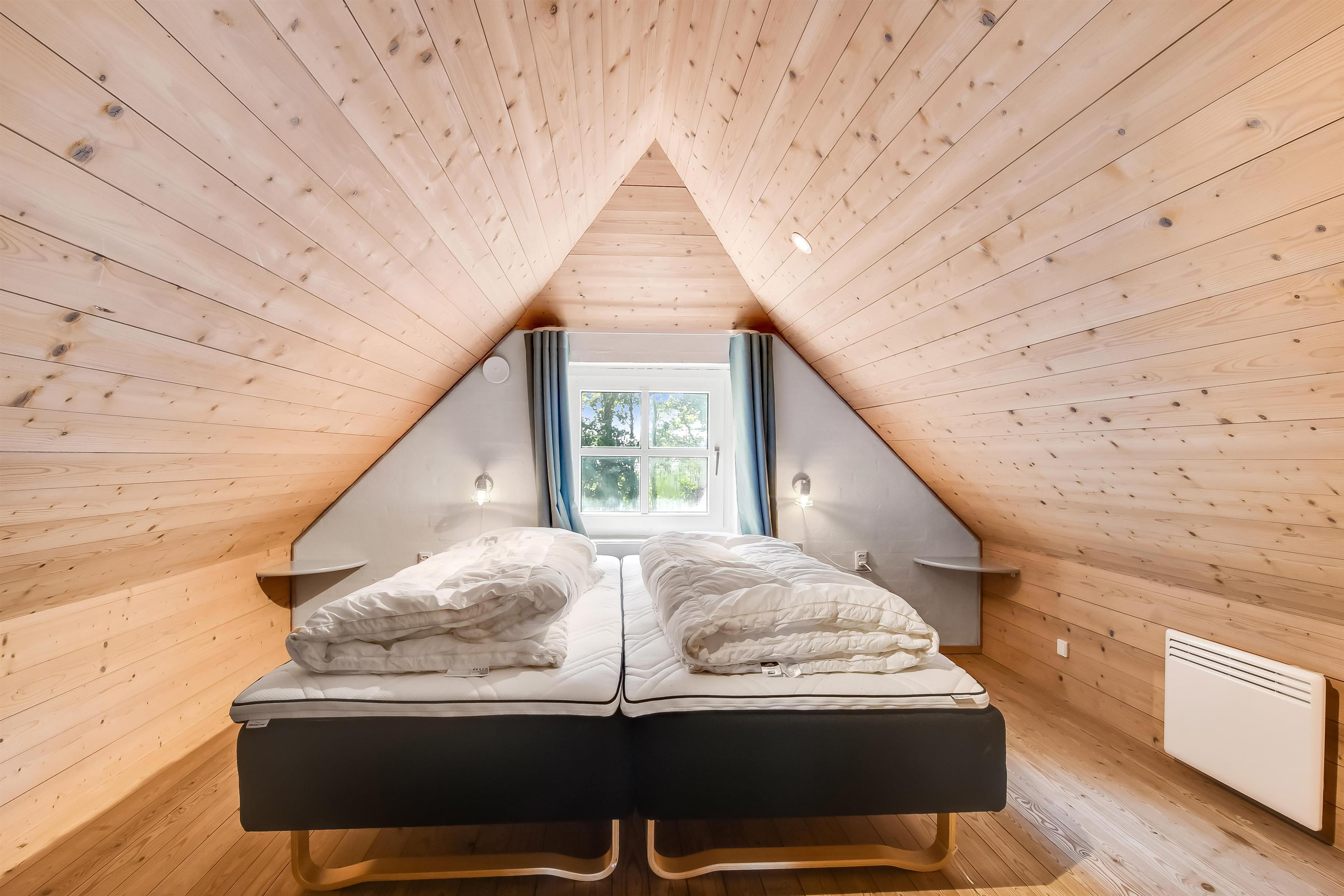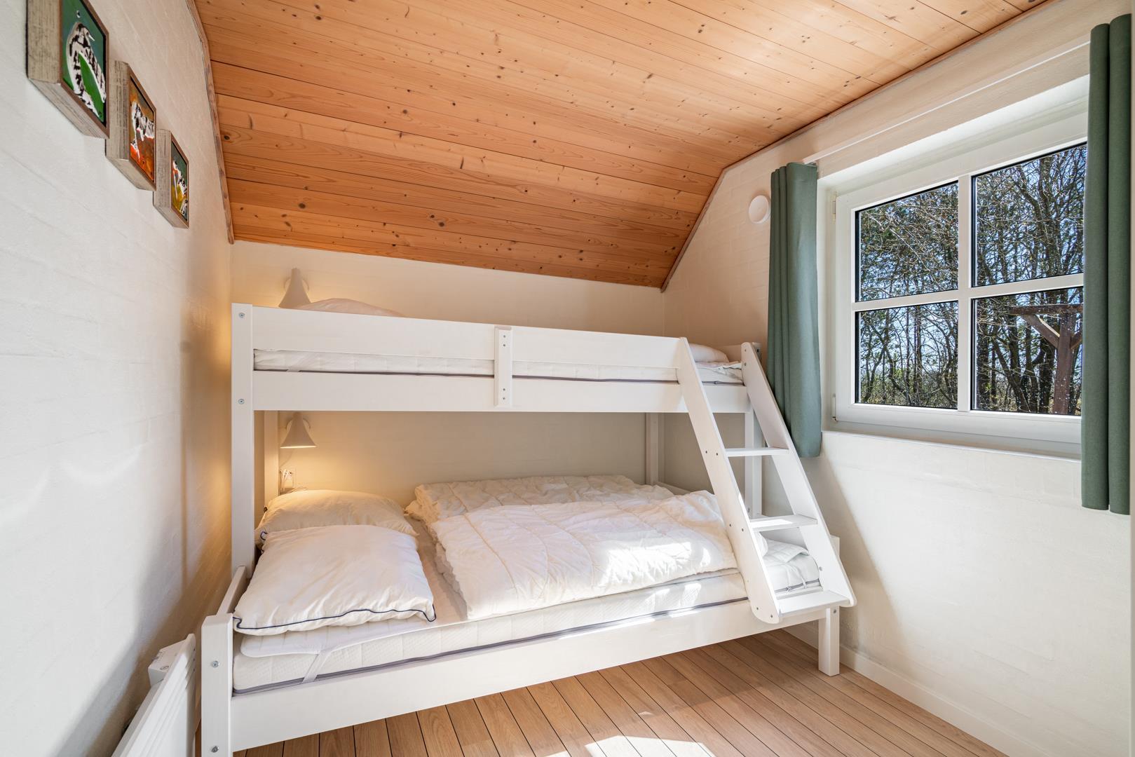 Sengestørrelse: 2 dobbeltsenge med 2 madrasser á 90 x 200 cm + 1 dobbeltseng med 2 madrasser á 80 x 200 cm + 1 køjeseng, hvor overkøjen er 80 x 200 cm og underkøjen er 120 x 200 cm.