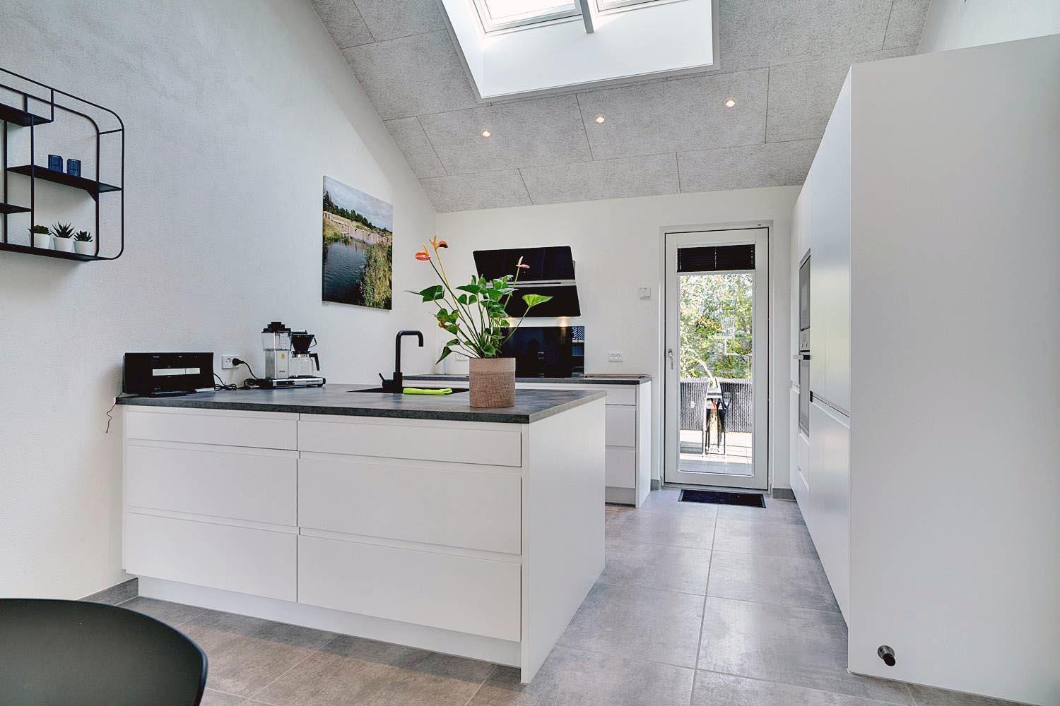Stort køkken kombineret med spiseplads og opholdsstue med brændeovn og varmepumpe - et vand til luft anlæg sørger for godt indeklima og en reduceret strømregning. Overalt er her gulvvarme. Dejligt indgangsparti med bryggers.