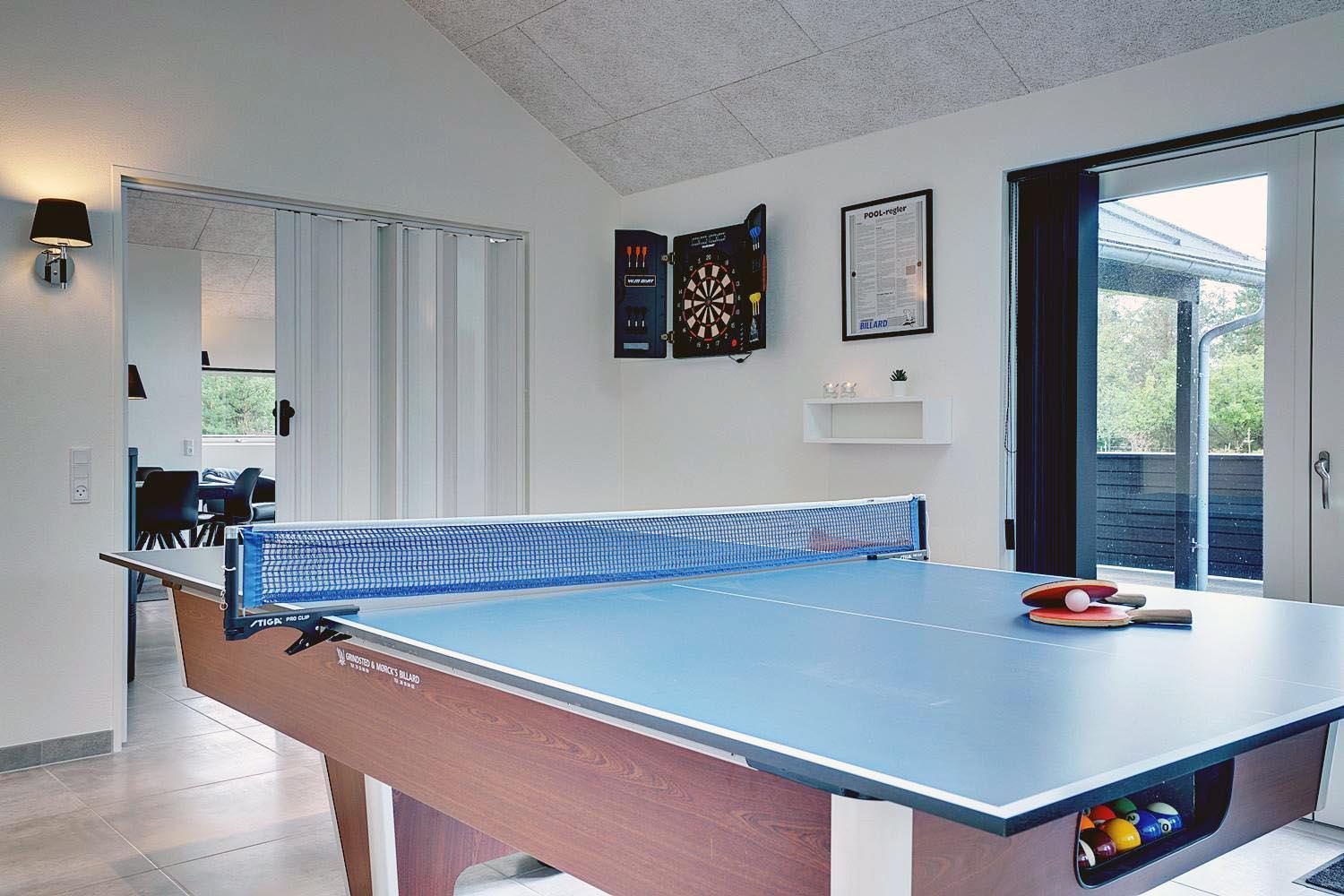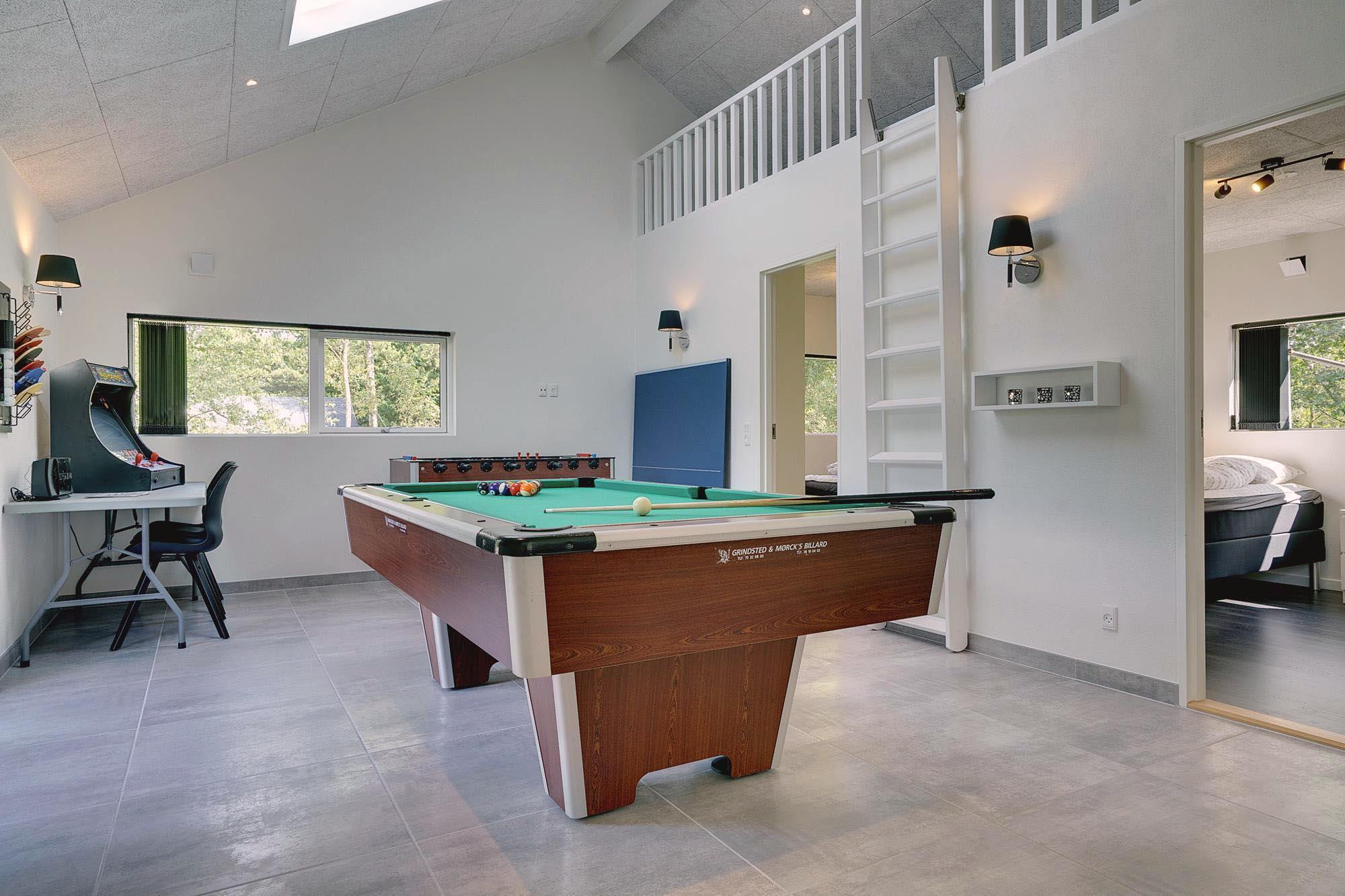 Nyere kvalitetshus beliggende i helt udbygget feriehus område, Hedevang 22. SEPARAT AKTIVITETSRUM med billard, bordtennis, bordfodbold, arcade spilleautomat, dart og afslapning for hele familien. Med sine 150 m2 er huset rummeligt og her er god plads til 2 familier. Huset har 2 afdelinger med hver 2 soverum og et badeværelse. Desuden wellness med spa og infrarød sauna - det store badeværelse har 2 brusere.