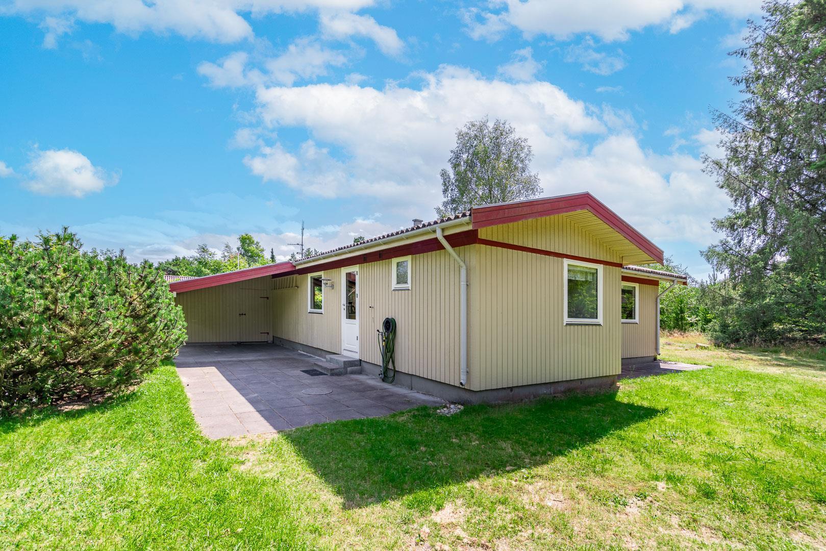 I haven er der masser af plads til leg, boldspil eller bare en stille stund med udsigt til naturen. På grunden er der desuden carport, så bilen står i tørvejr – og det er tilladt at have hund med, så hele familien kan tage af sted sammen.