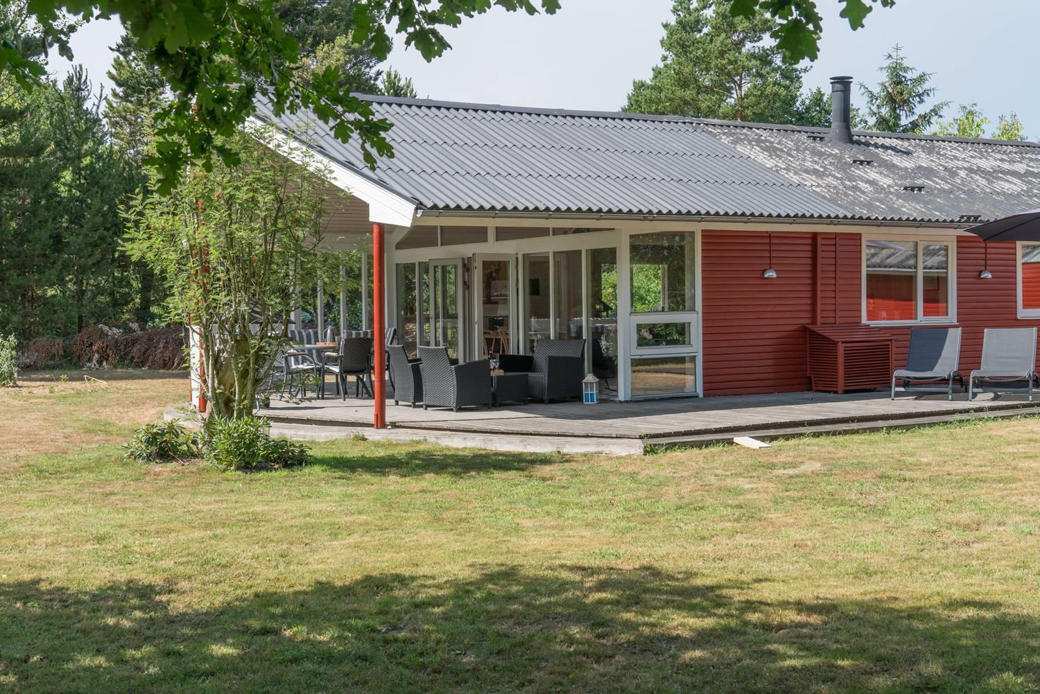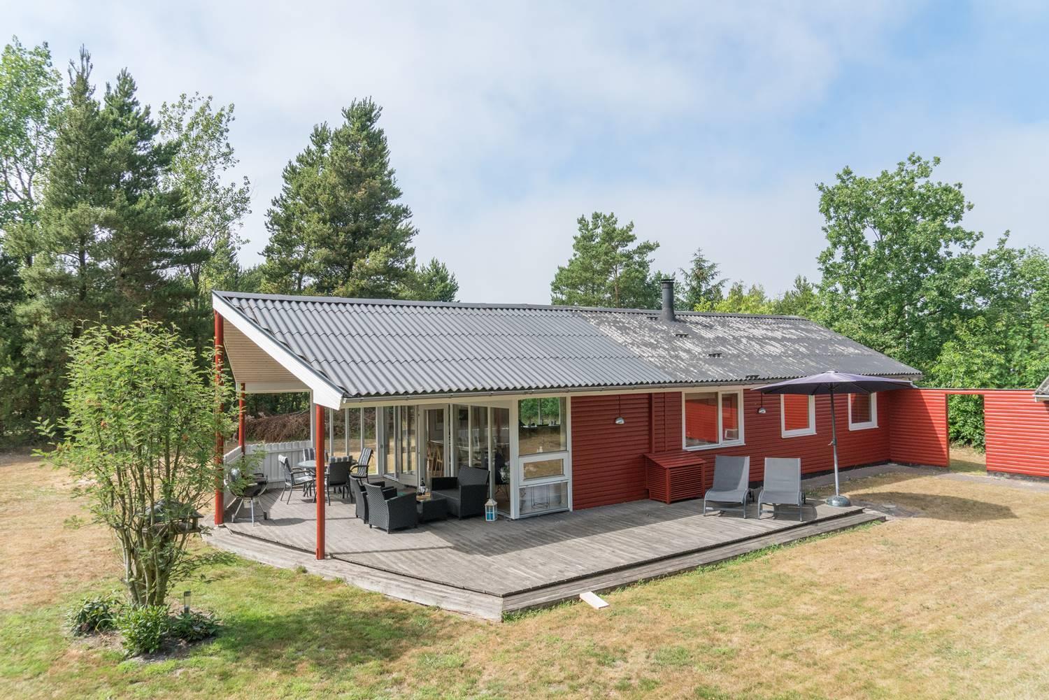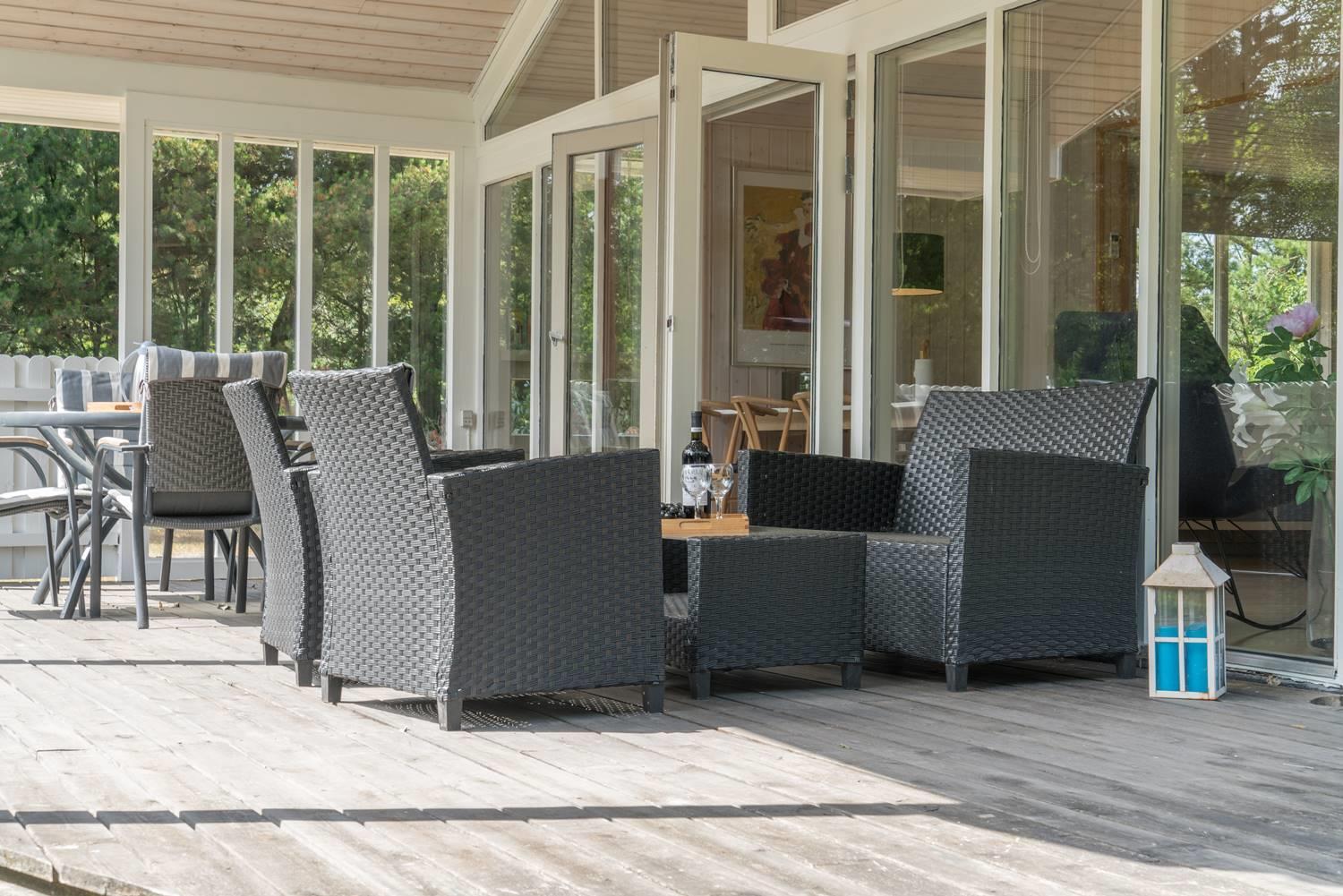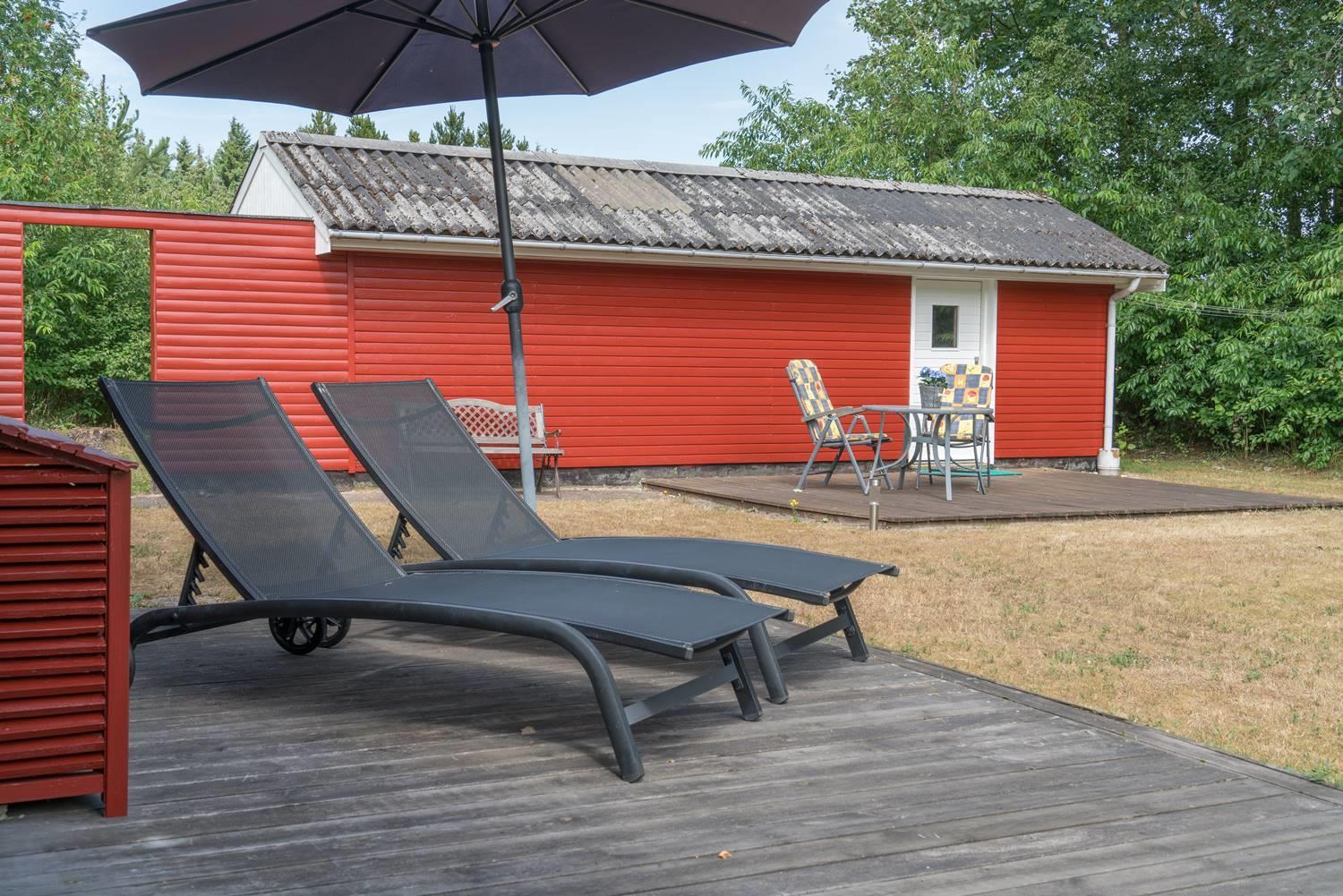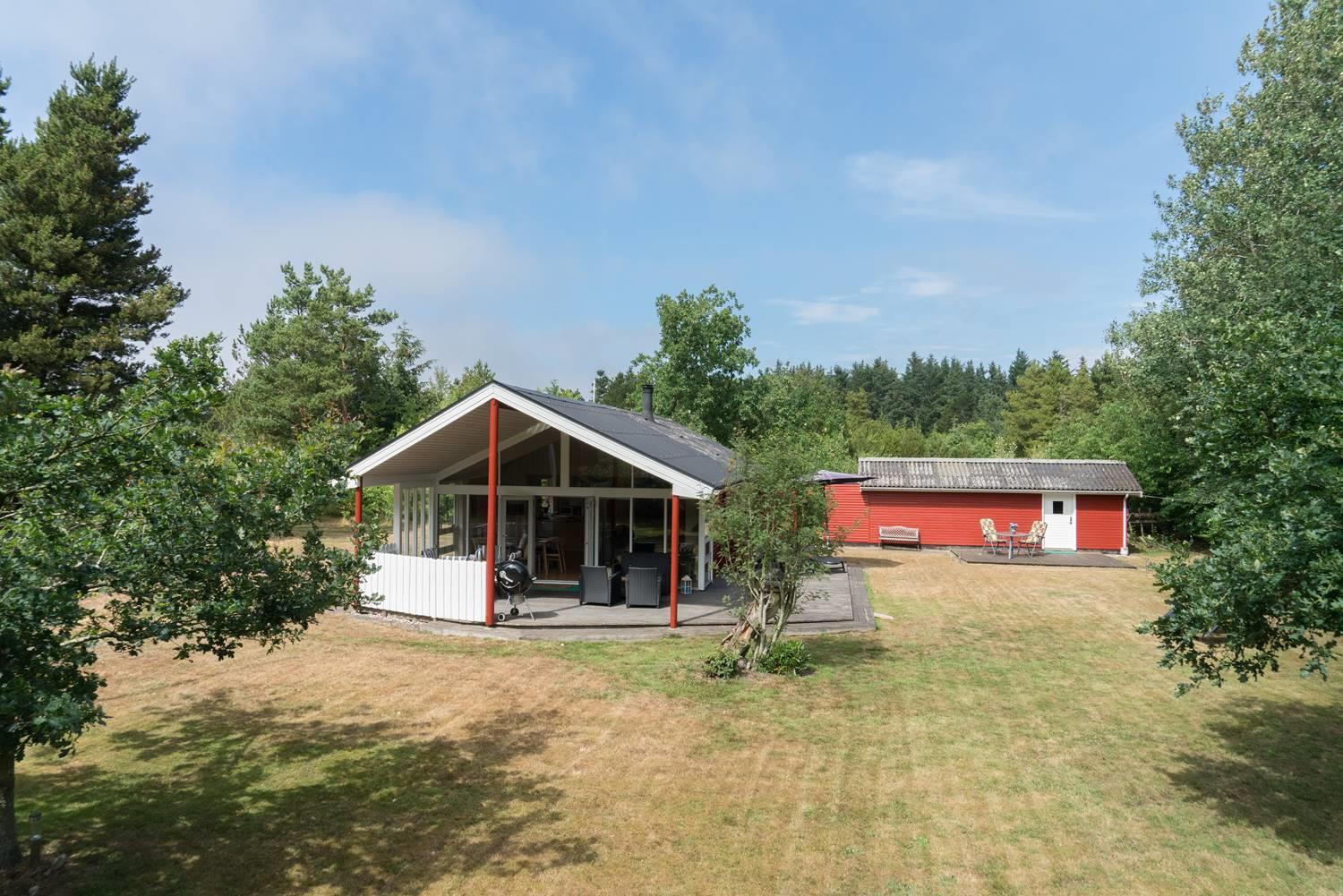 Udenfor kan I nyde jeres ferie i fulde drag. Haven er indhegnet – perfekt, hvis I har hund eller små børn med. Her er trygge rammer til leg og afslapning.