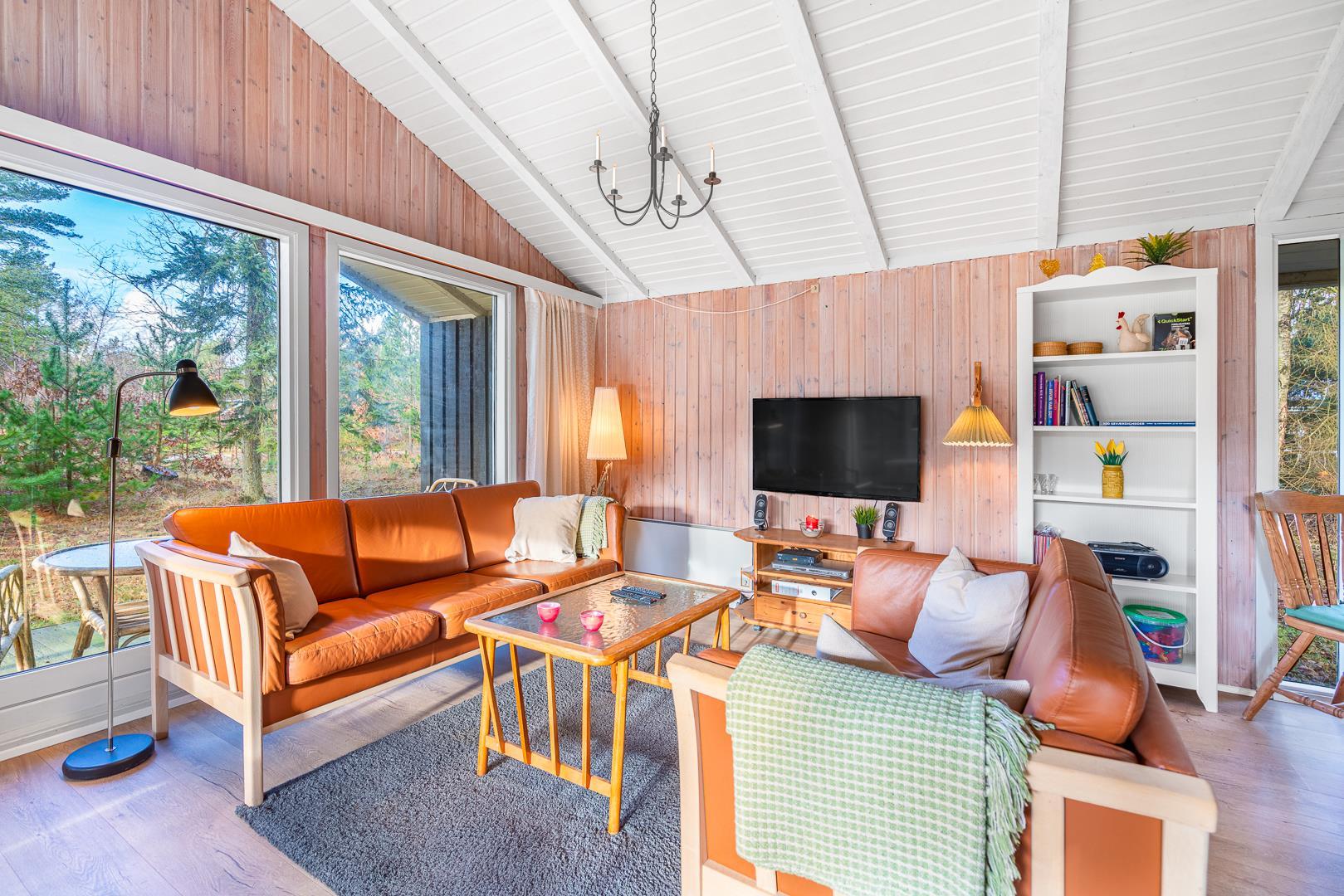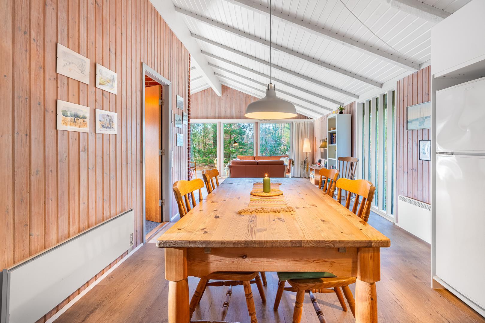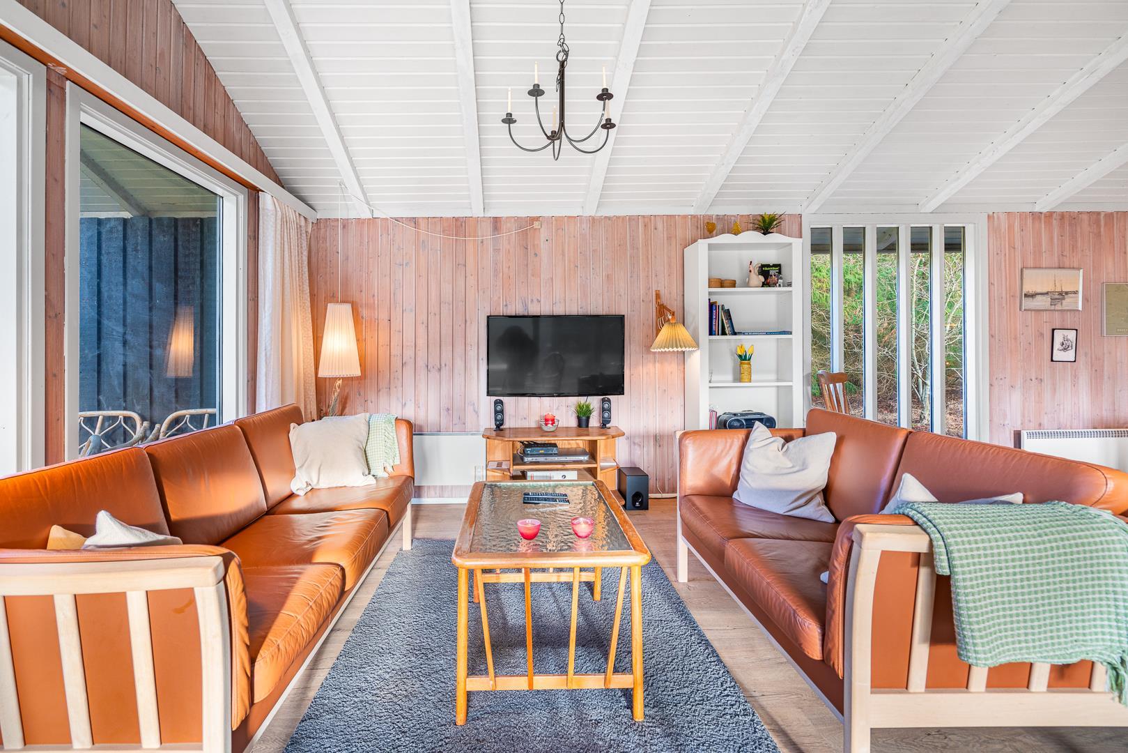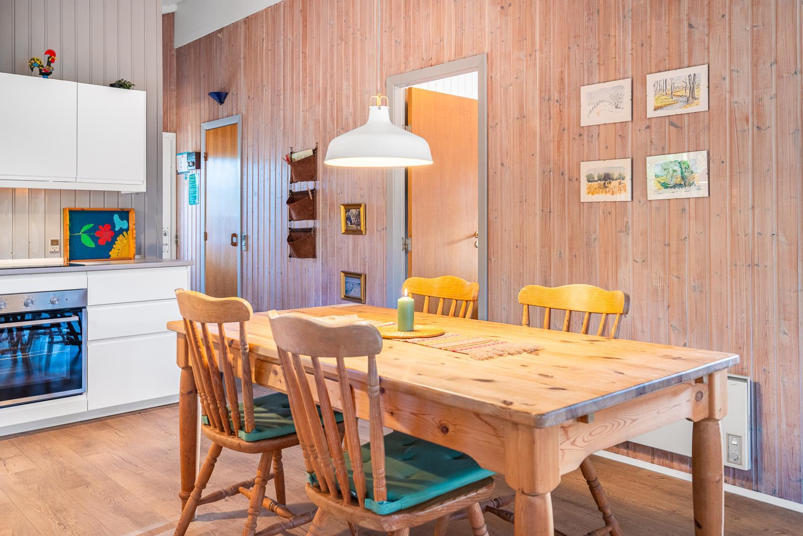 I stuen på Højsvej 37 er der dømt ren hygge med brændeovn og masser af plads til at slappe af efter en tur i klitterne eller ved havet. Den åbne indretning giver en dejlig, afslappet stemning, og i det moderne køkken med opvaskemaskine er det nemt at trylle lidt lækkert frem – og hurtigt rydde op bagefter.