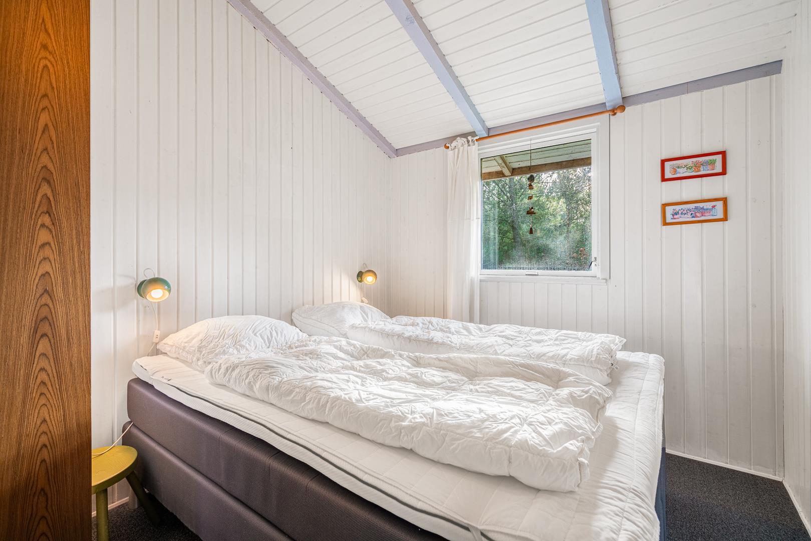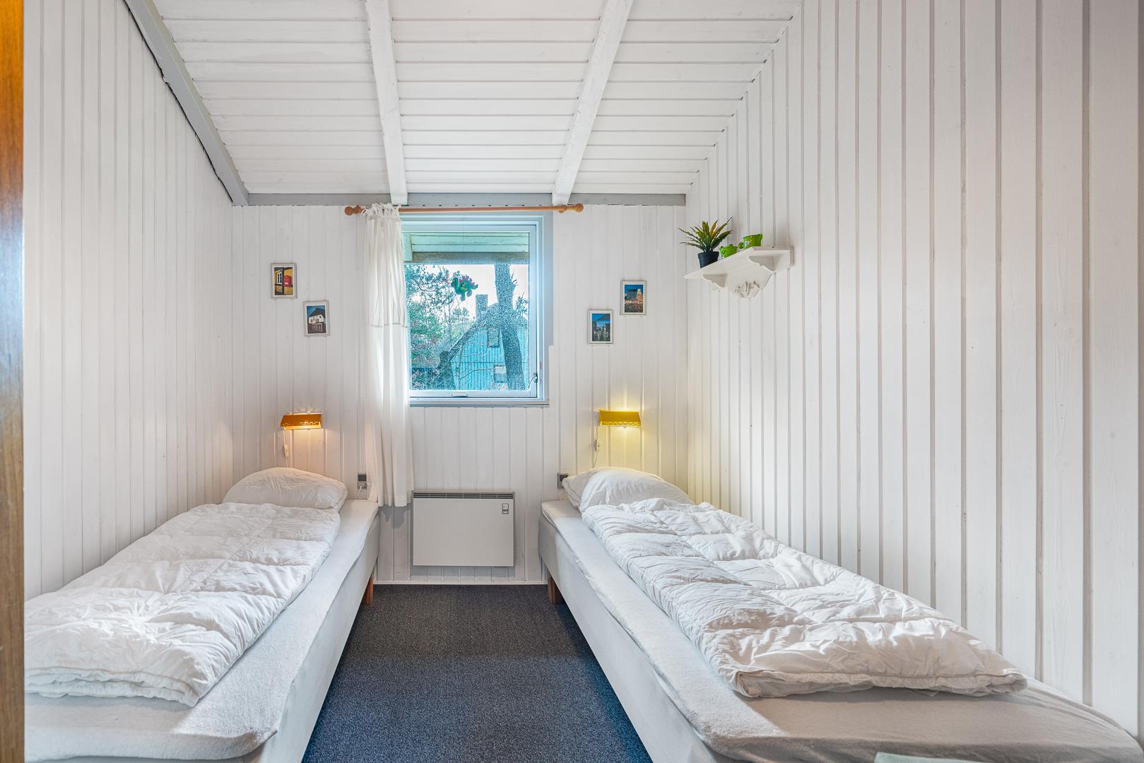 De 2 soveværelser er indrettet med en dobbeltseng og to enkeltsenge – perfekt til familien eller et par venner.