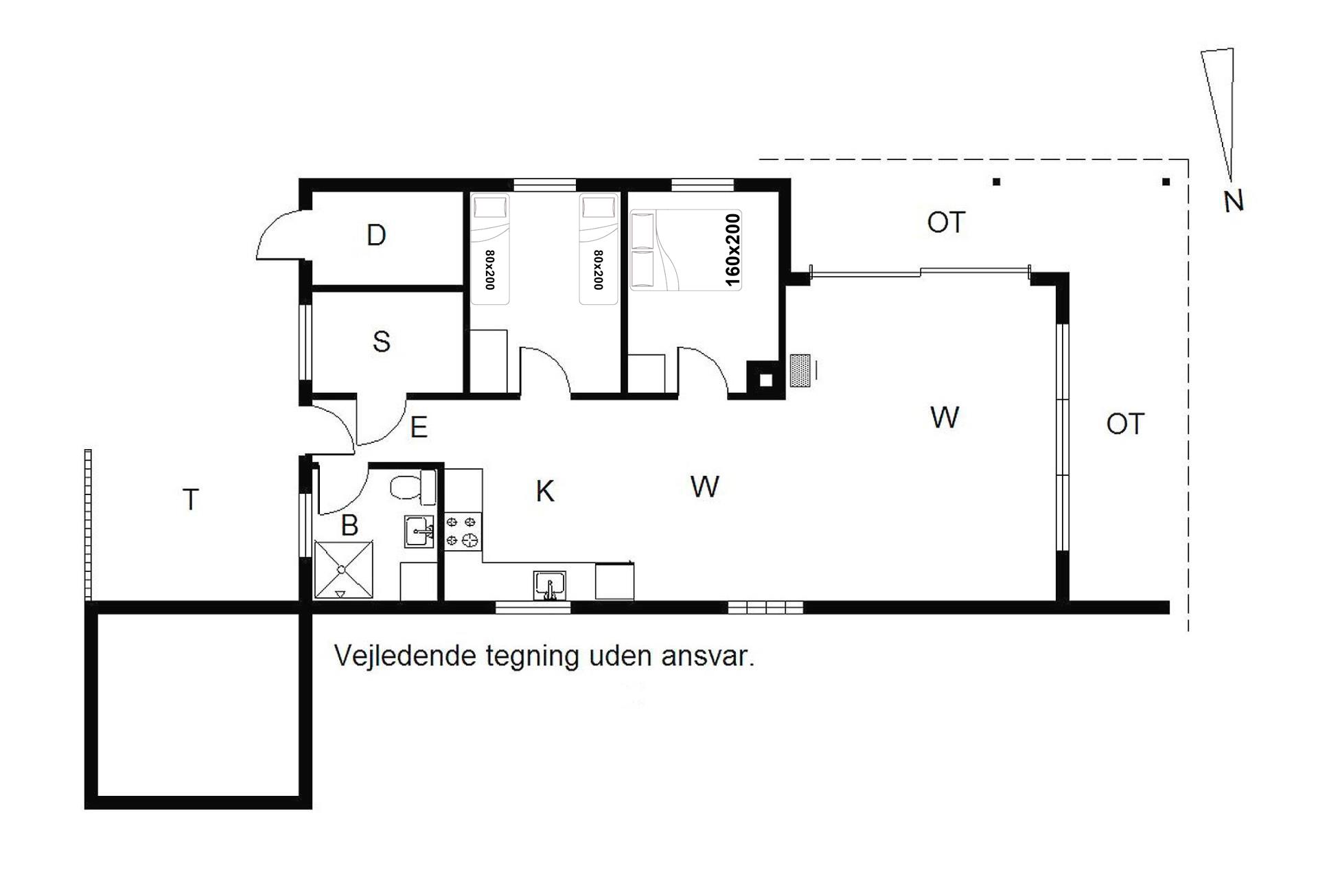Sengestørrelser: 1 dobbeltseng 160 x 200 cm + 2 enkeltsenge 80 x 200 cm.