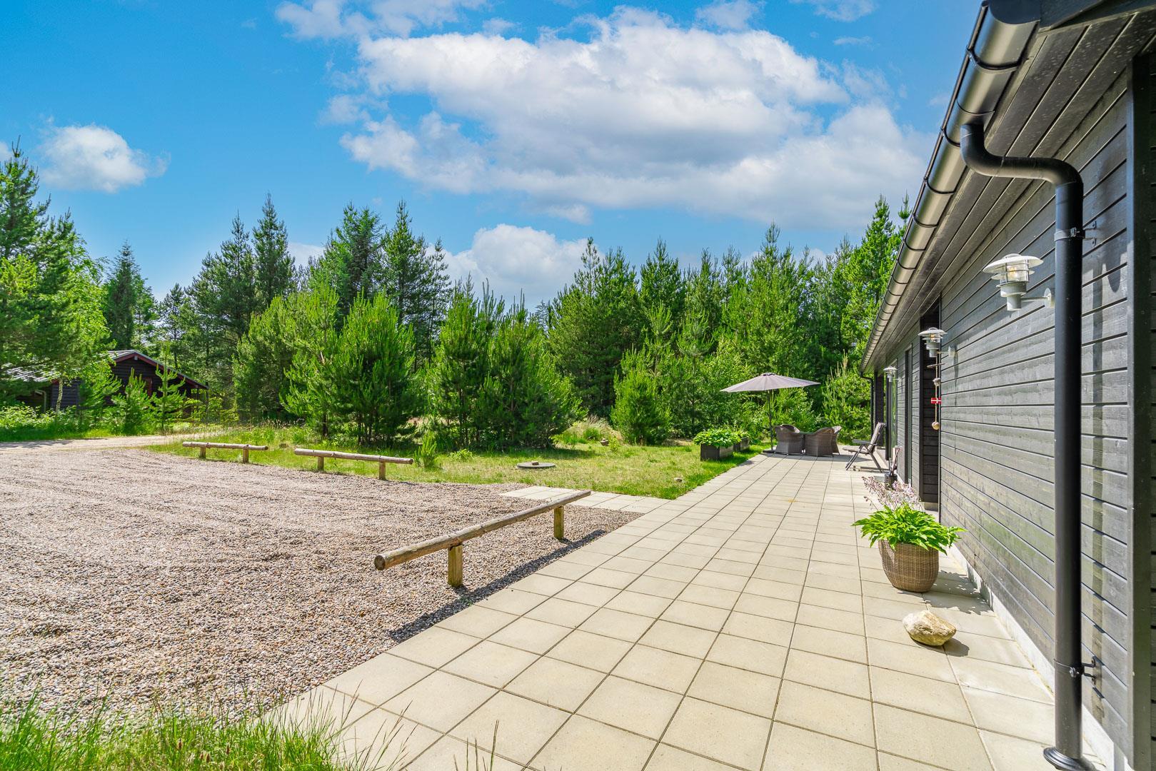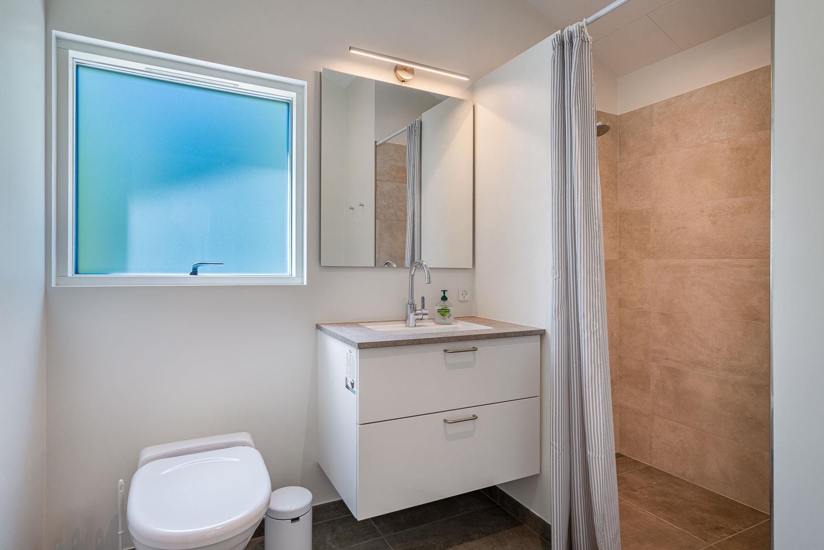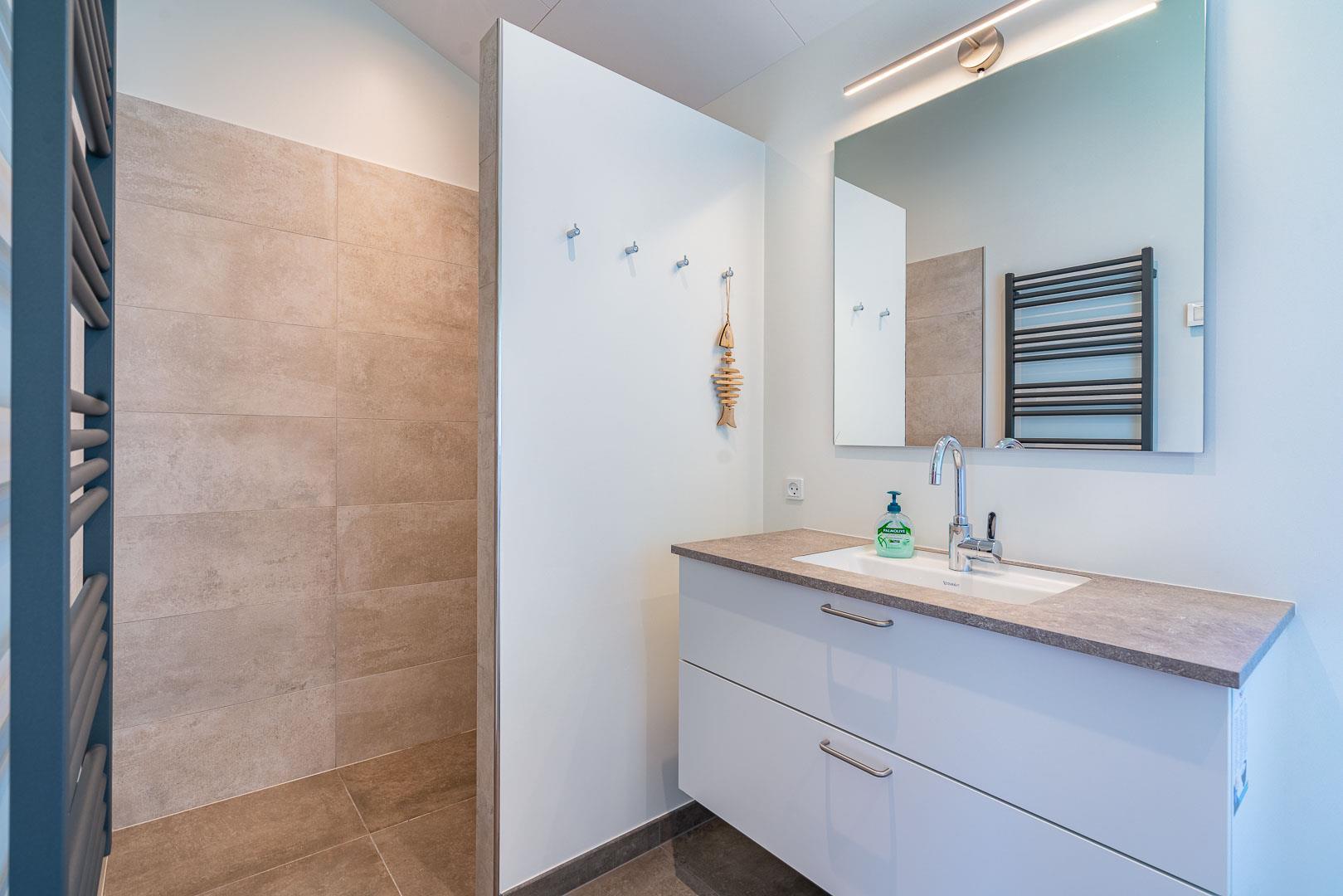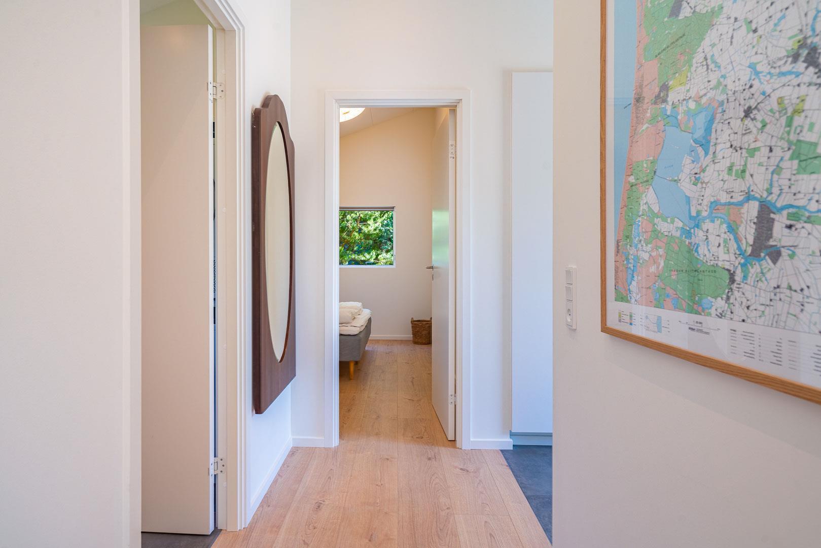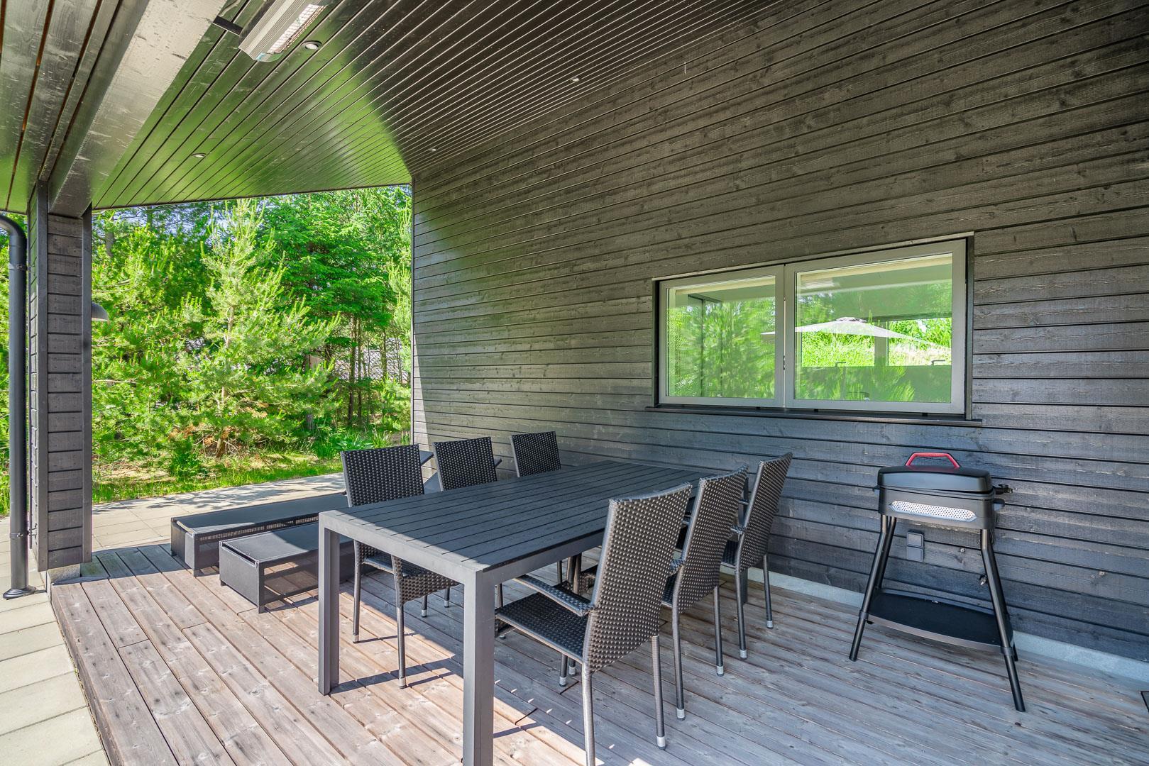 2 smagsfulde badeværelser , det ene med direkte adgang fra det største af soverummene og desuden med håndklædevarmer - gulvvarme overalt i huset. Praktisk entre og overdækket indgang. En dejlig overdækning på terrassen, hvis du skal sidde tørt eller i skygge eller en åben terrasse i solen på en liggestol? Rammerne for ferie hele året rundt er helt sikkert skabt, hvis du vælger at leje Kirkeflod 17 i Houstrup.