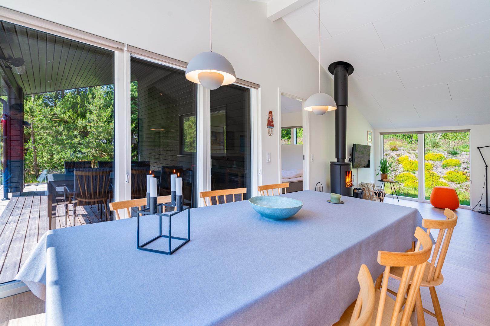 På Kirkeflod 17 i bedste materialer og moderne stil udlejes dejligt feriehus med byggeår 2022. Huset udlejes kun i begrænset periode og benyttes af ejer selv, der har kælet for detaljer i alle valg. Huset er opført på gammel grund med bevoksning og tæt på enden af vejen og ud til Nymindegab Plantage - et ualmindeligt skønt skovområde. Her er plads til 6 personer fordelt på 3 soverum og 100 m2. Samlingspunktet vil sandsynligvis blive køkken -alrum og stue området - et veludstyret køkken og en komfortabel stue. Er du til brændeovn med den hygge den skaber eller varmepumpe luft til vand ?