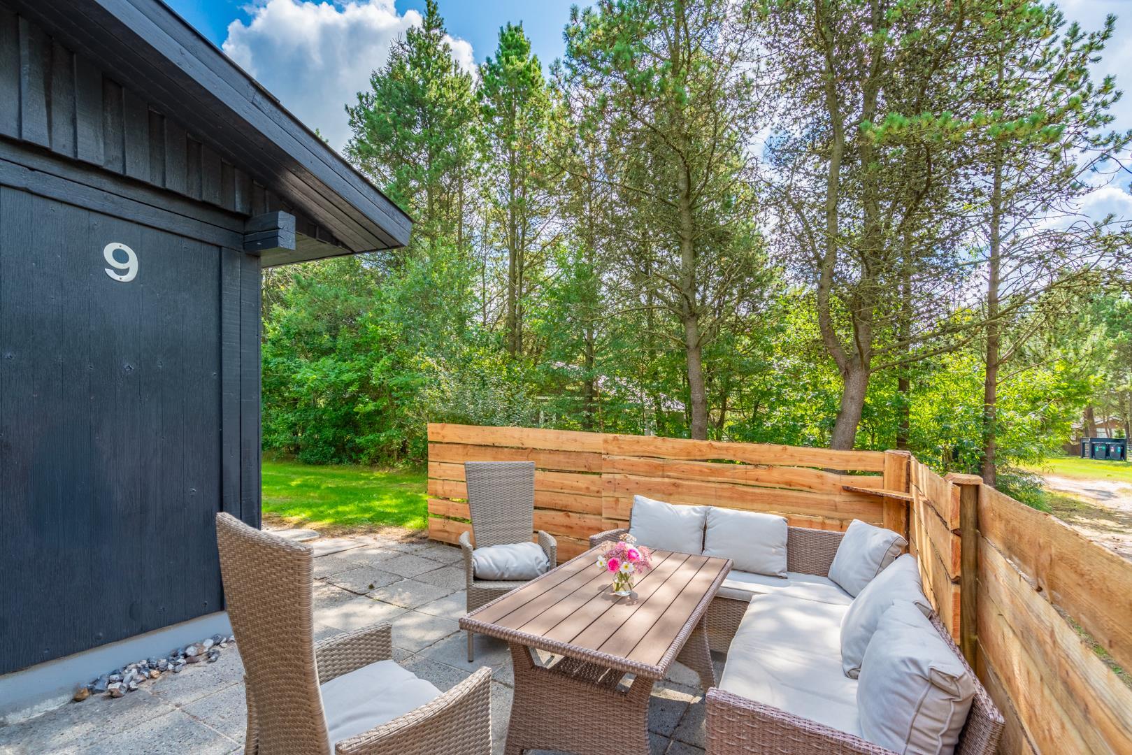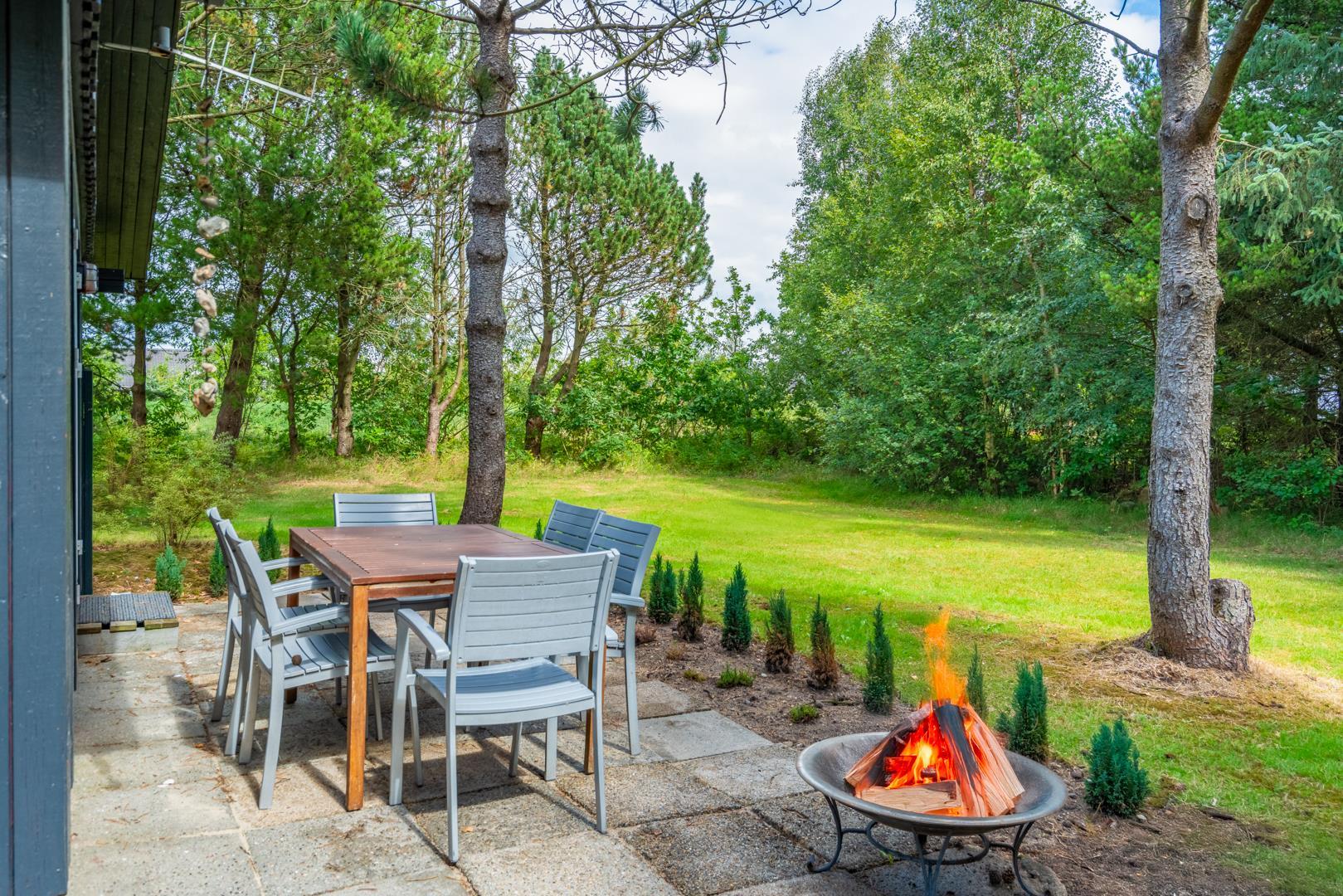 Udenfor finder I et dejligt, fredeligt naturgrund med høje træer og masser af plads omkring jer. Den store terrasse indbyder til morgenkaffe i solen, rolige stunder i liggestolen eller hyggelige aftener med udsigt til naturen.